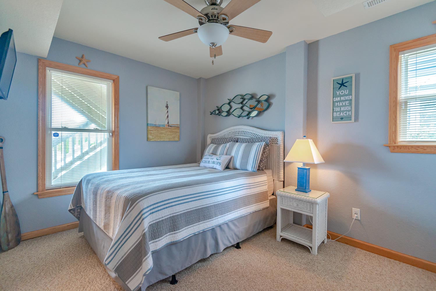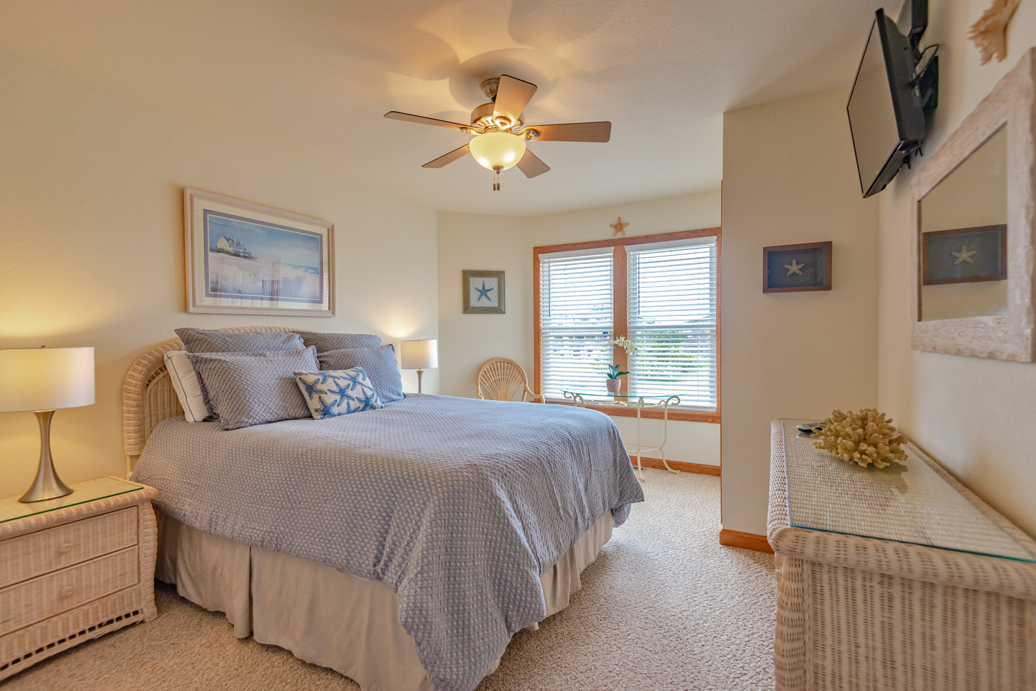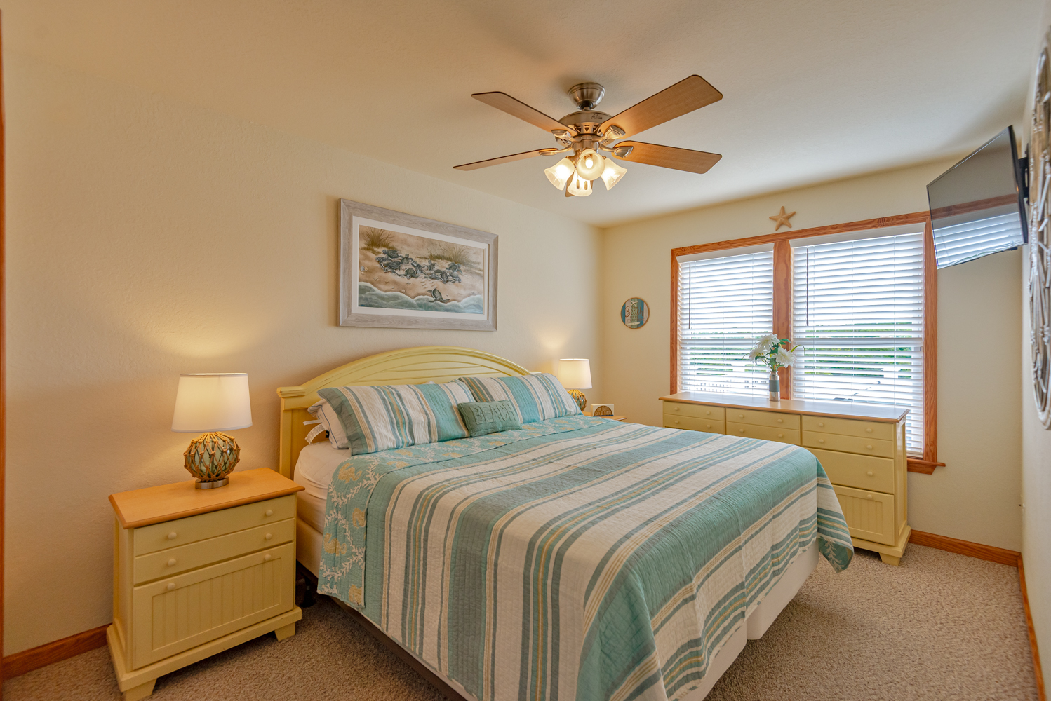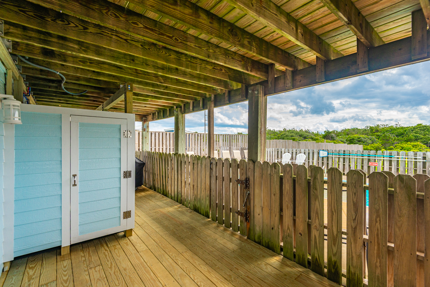 Mid Level: 3 Bedrooms (Private Suite w/King, TV, Full Bath w/Jacuzzi Tub; 1 w/Queen,& TV, 1 w/ Duo Bunk & TV), Shared Full Hall Bath w/Tub/Shower, Laundry Area, Living Area w/TV, Wet Bar, & Access to Front Covered Deck w/Ocean Views & Deck Furniture & Rear Sun Deck w/Hot Tub Overlooking Pool & Table & Chairs.