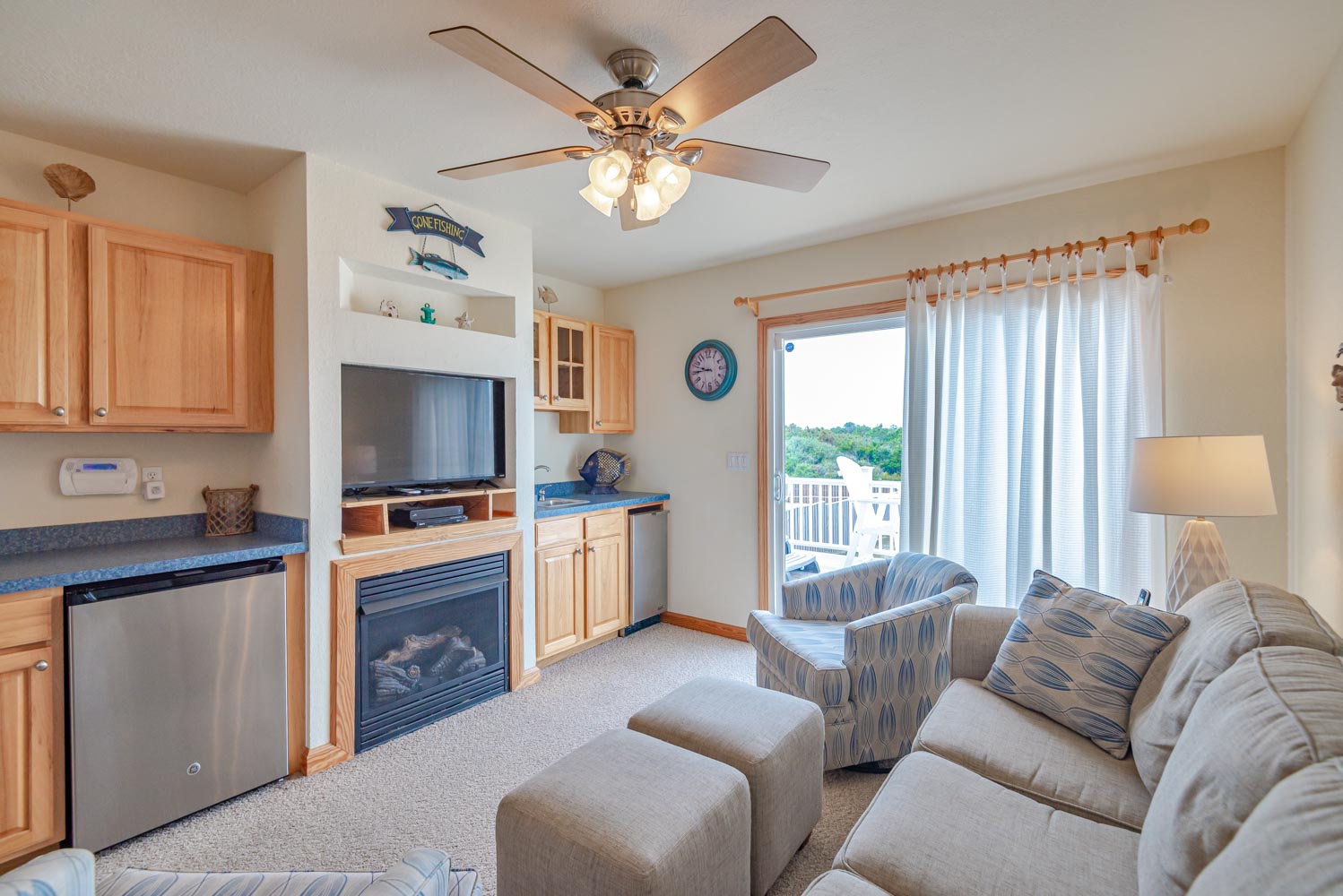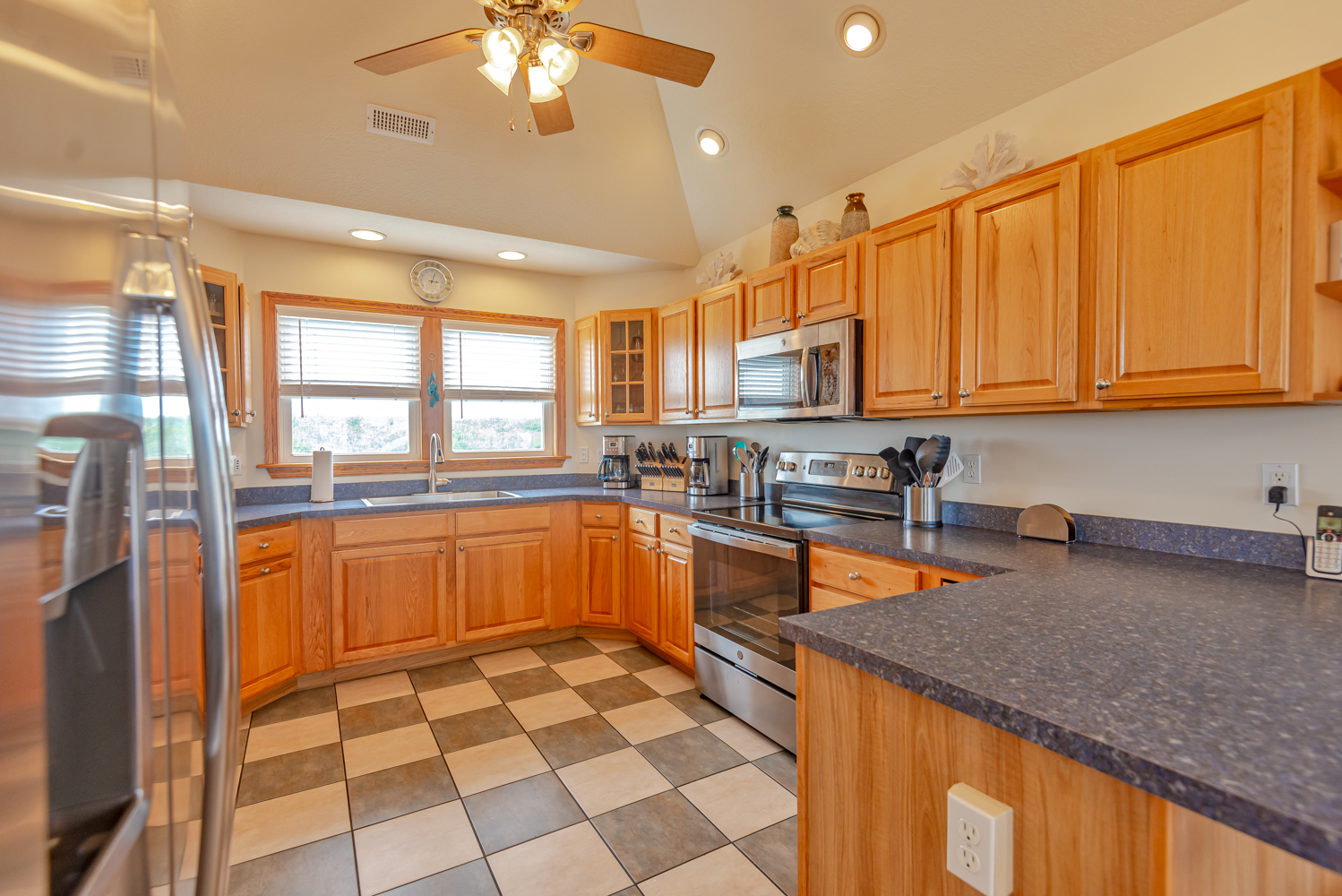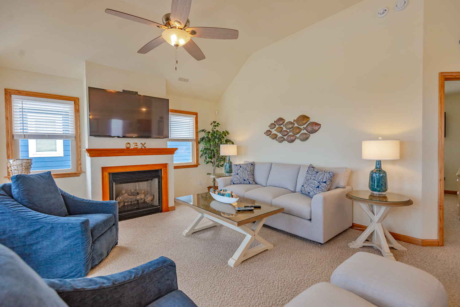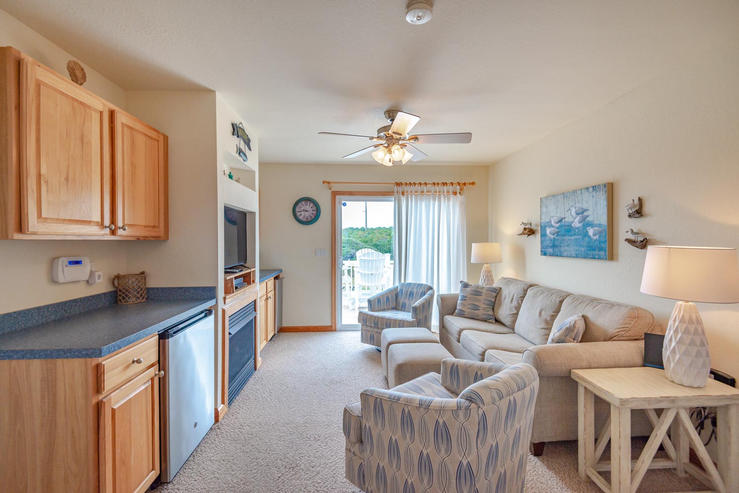 Top Level: Living Area w/TV, Kitchen Area w/Stainless Steel Appliances, Bar Seating for Two (2), Dining Area w/Seating for Ten (10), Private Suite w/King, TV, Full Bath w/Jacuzzi Tub; & Access to Sun Deck w/Ocean Views & Deck Furniture.
