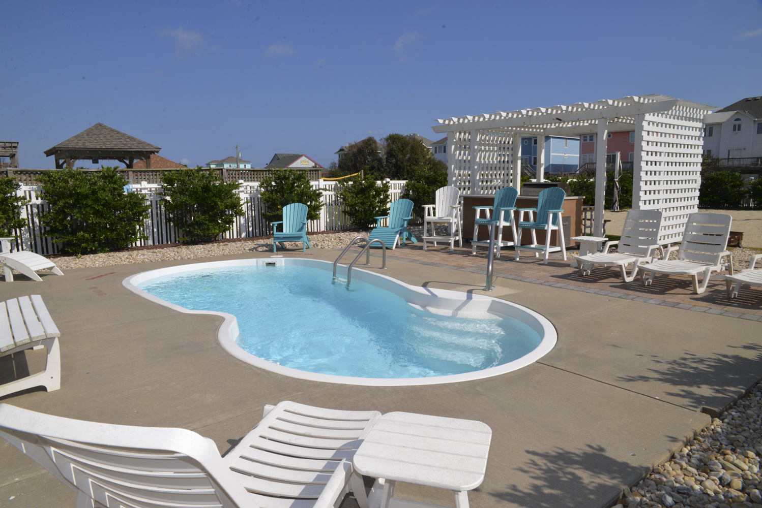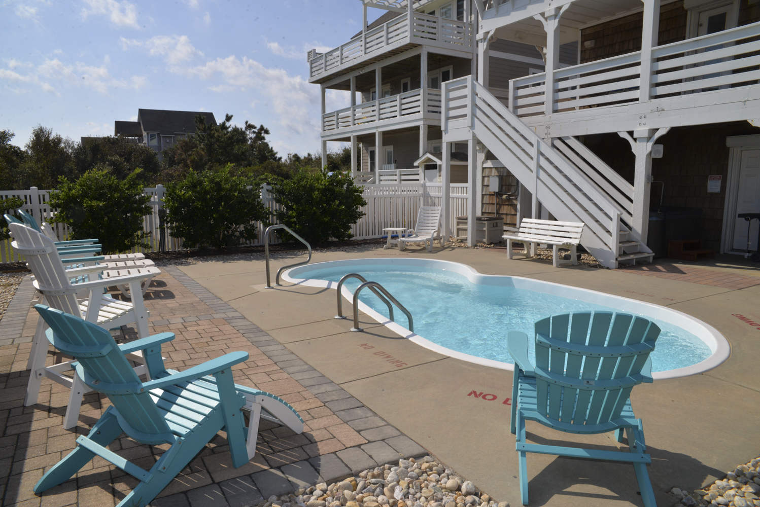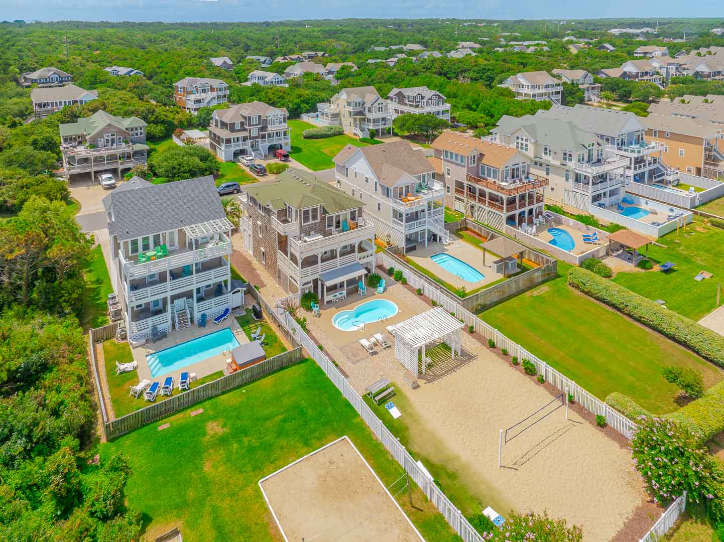 Situated between the Atlantic Ocean and Jockey's Ridge in Old Nags Head Place, this home has something to offer for all. There are 5 bedrooms, all TV equipped, ample decking, Elevator to All Floors, and beautifully landscaped exterior areas. Boasting lovely wood trim accents throughout along with hardwood floors, hand painted murals, granite counters, stainless steel appliances and tasteful furnishings throughout, your group is sure to be delighted. The thought and care that has gone into this home will be evident from the moment you enter and is sure to make your vacation experience complete. The rec. room offers a full size refrigerator and separate ice maker, ideal for keeping beverages cool for the pool area or for beach supplies. There is a basketball hoop and the streets are quiet with low traffic so you can ride your bikes or take a leisurely stroll through the neighborhood.