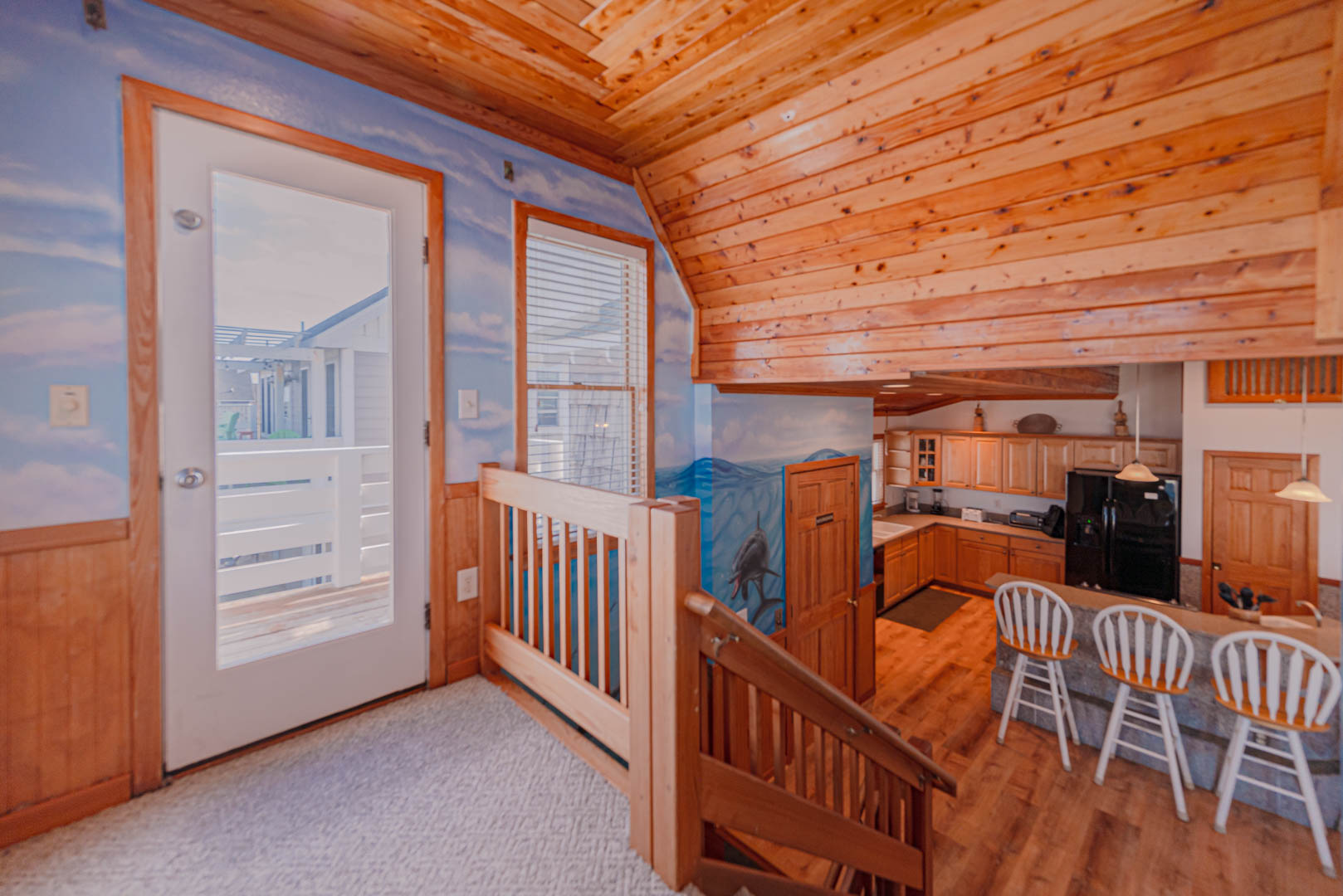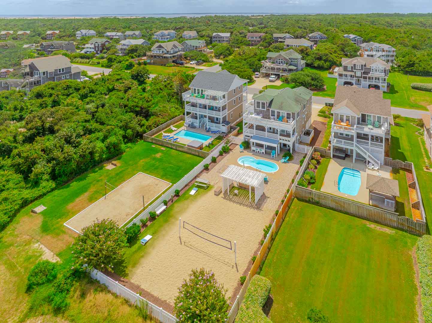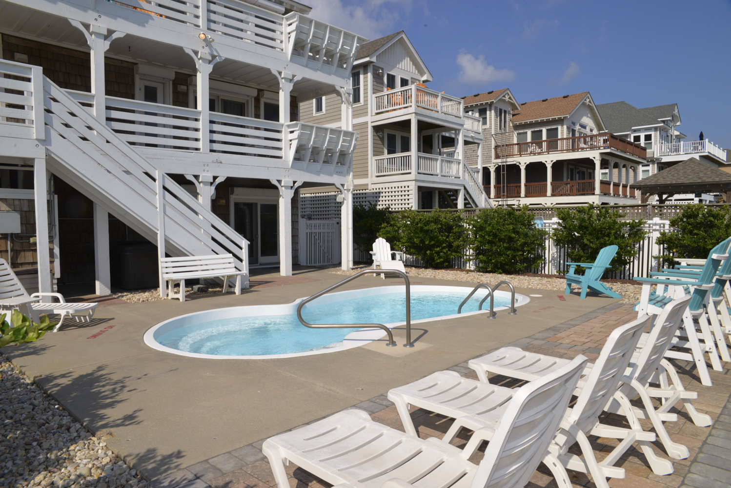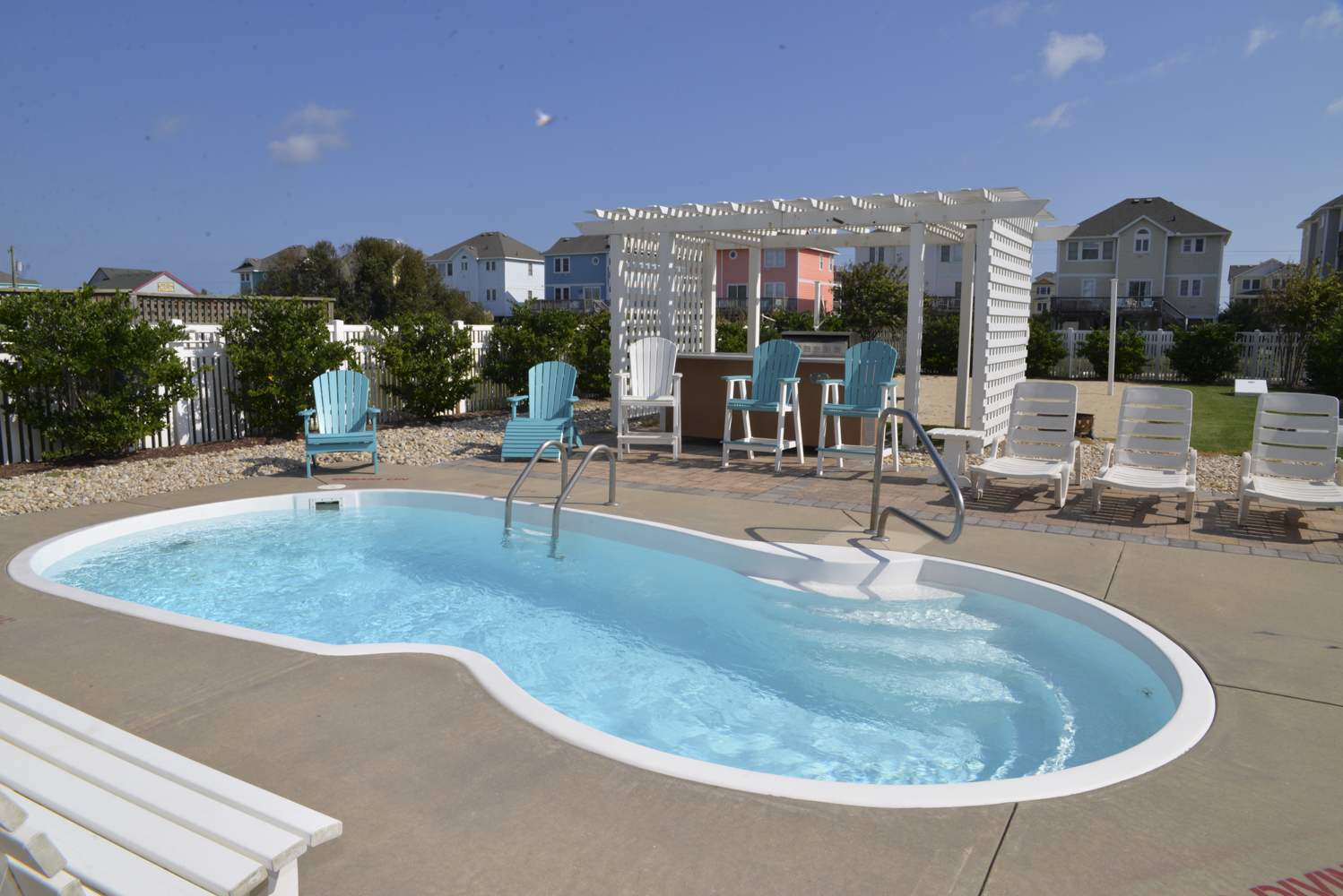 Situated between the Atlantic Ocean and Jockey's Ridge in Old Nags Head Place, this home has something to offer for all. There are 5 bedrooms, all TV equipped, ample decking, Elevator to All Floors, and beautifully landscaped exterior areas. Boasting lovely wood trim accents throughout along with hardwood floors, hand painted murals, granite counters, stainless steel appliances and tasteful furnishings throughout, your group is sure to be delighted. The thought and care that has gone into this home will be evident from the moment you enter and is sure to make your vacation experience complete. The rec. room offers a full size refrigerator and separate ice maker, ideal for keeping beverages cool for the pool area or for beach supplies. There is a basketball hoop and the streets are quiet with low traffic so you can ride your bikes or take a leisurely stroll through the neighborhood.
