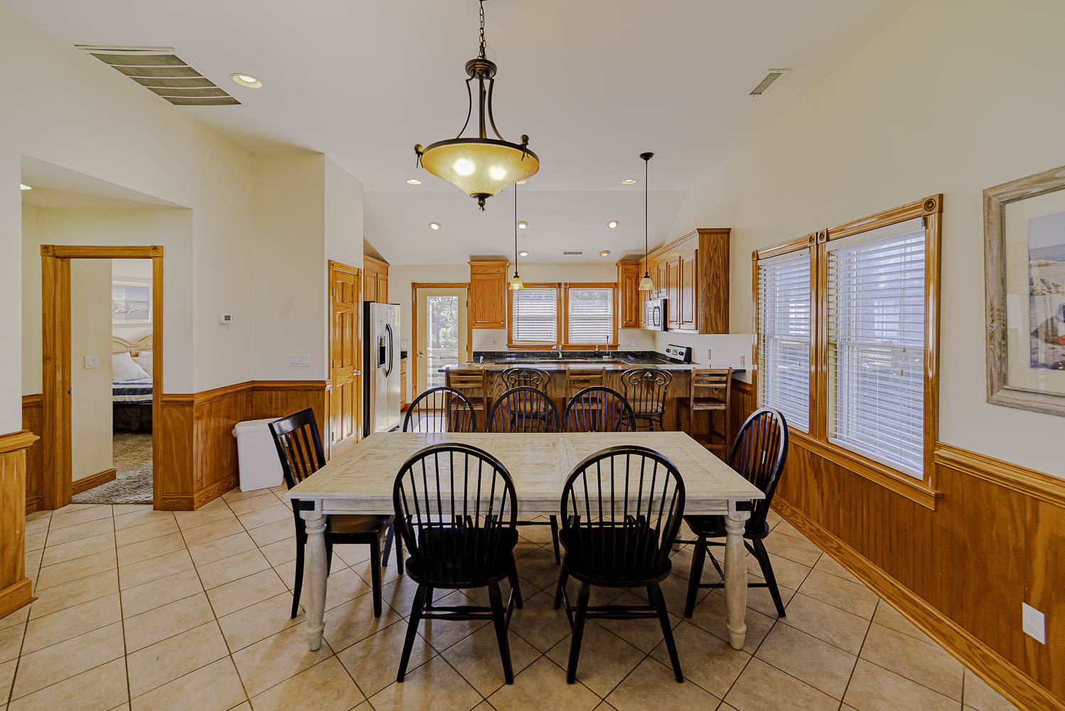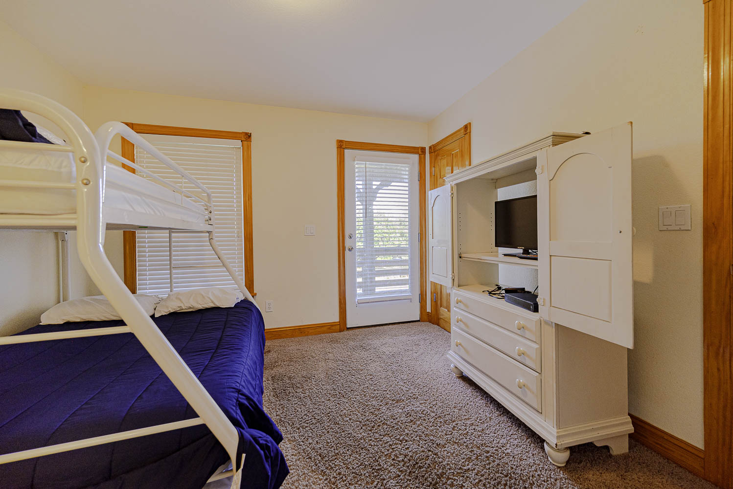 Mid Level: 3 Bedrooms (2 Private Suites w/Kings, Full Baths w/Garden Tubs; Private Suite w/Duo Bunk, Trundle, Full Bath), Laundry Area, & Covered Deck.