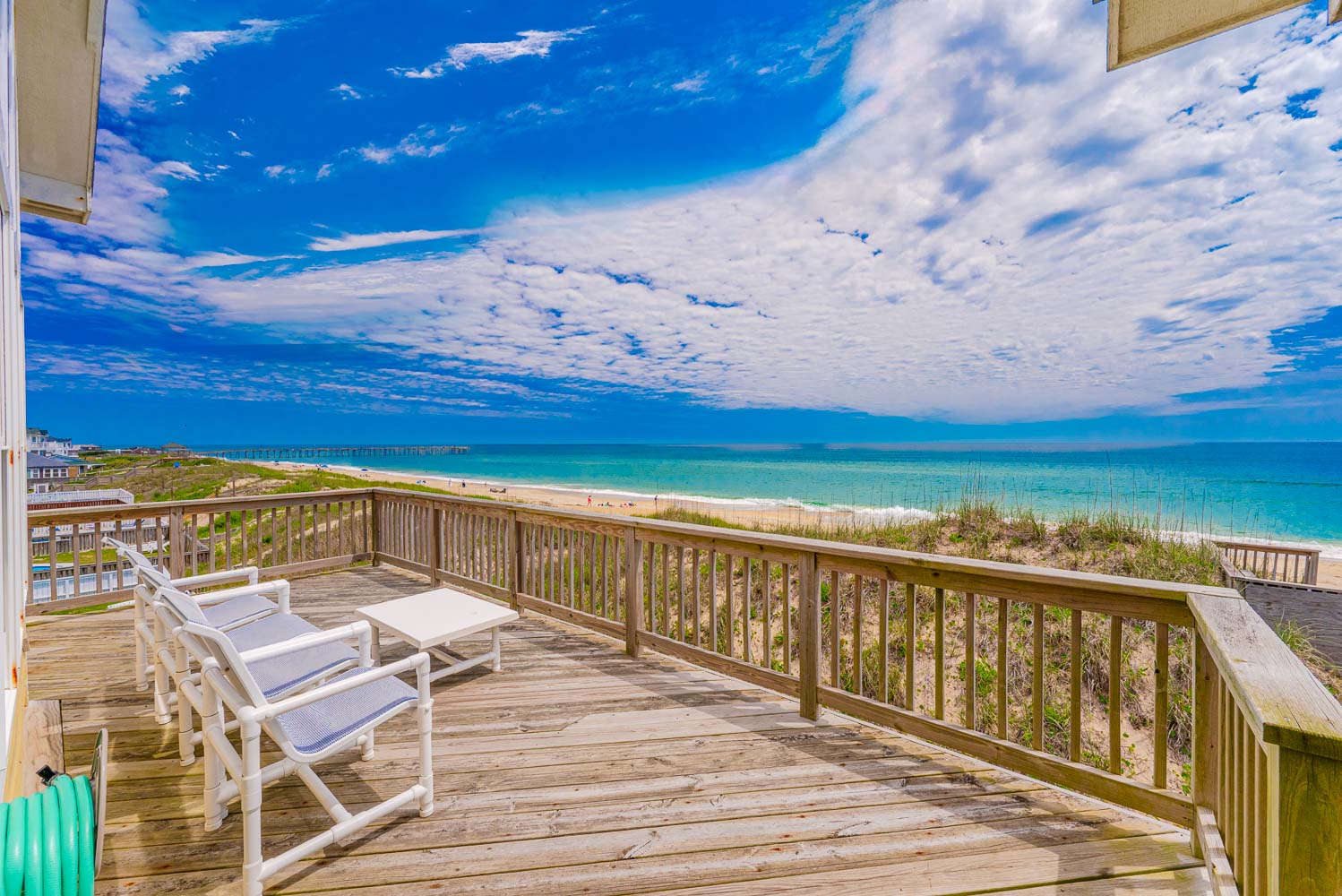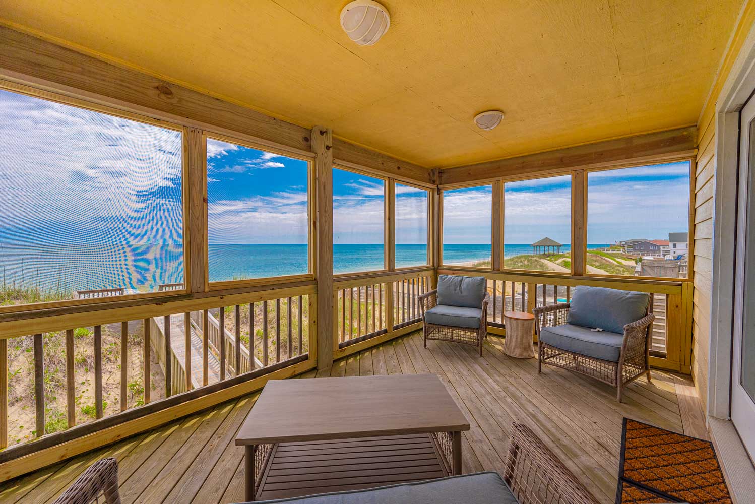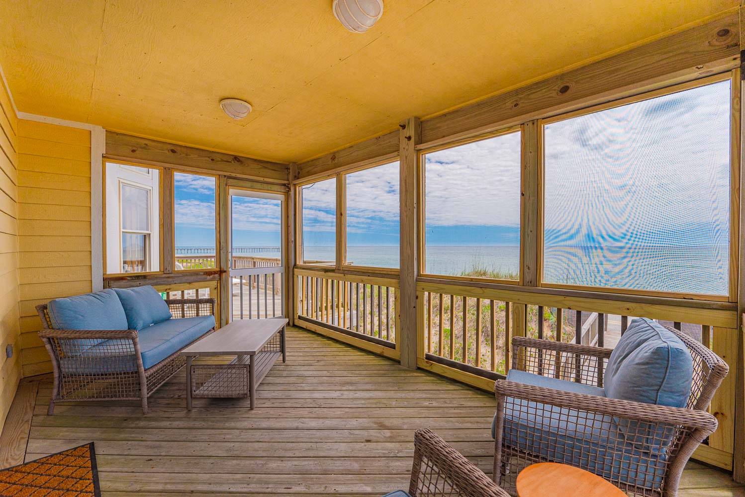 Top Level: Opulent Living/Kitchen Dining Area, TV, Half Bath, Private Suite w/King, TV, & Full Bath w/tub & separate shower, Sun Deck w/Furniture, Screened Porch w/Furniture & Beautiful Ocean Views.