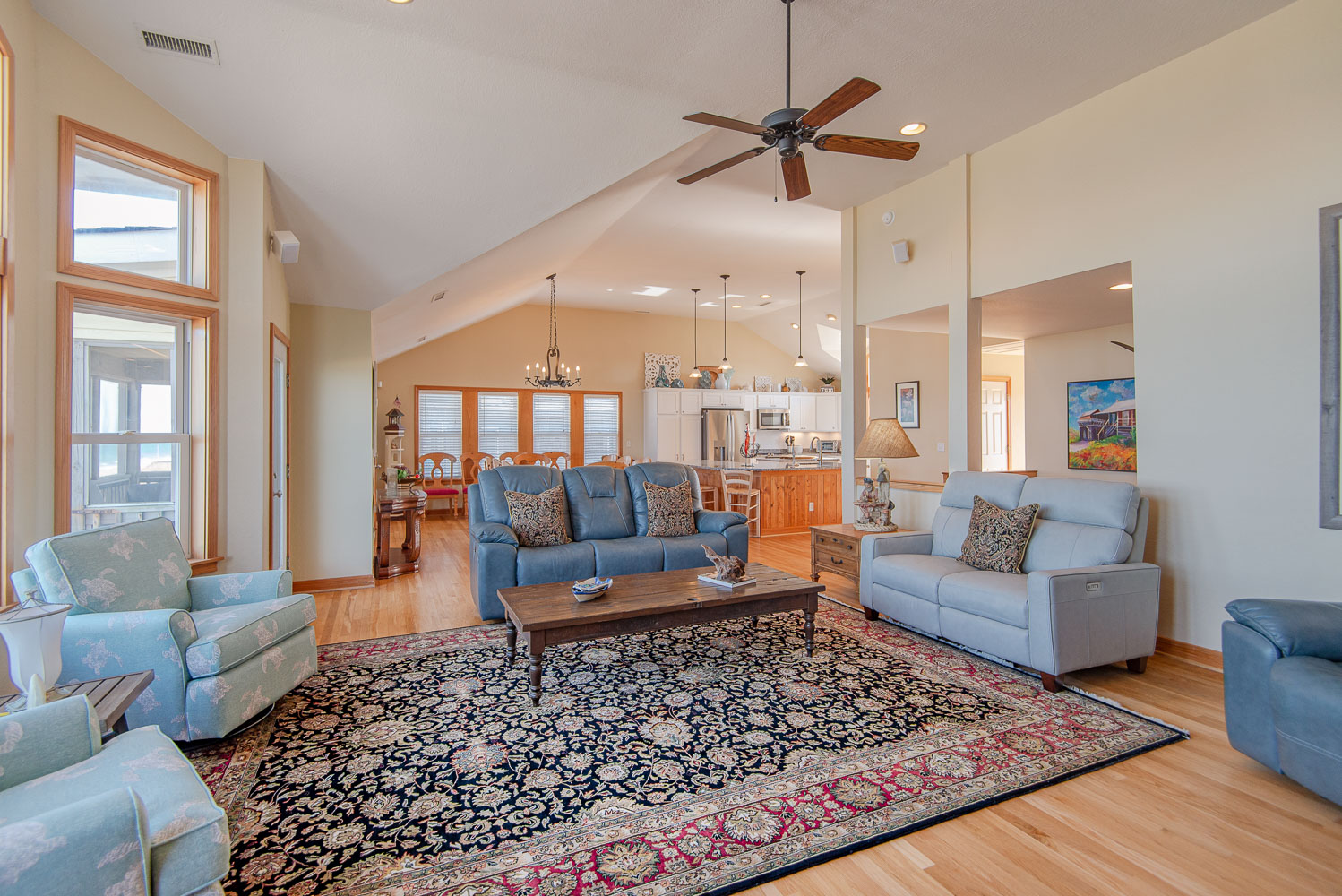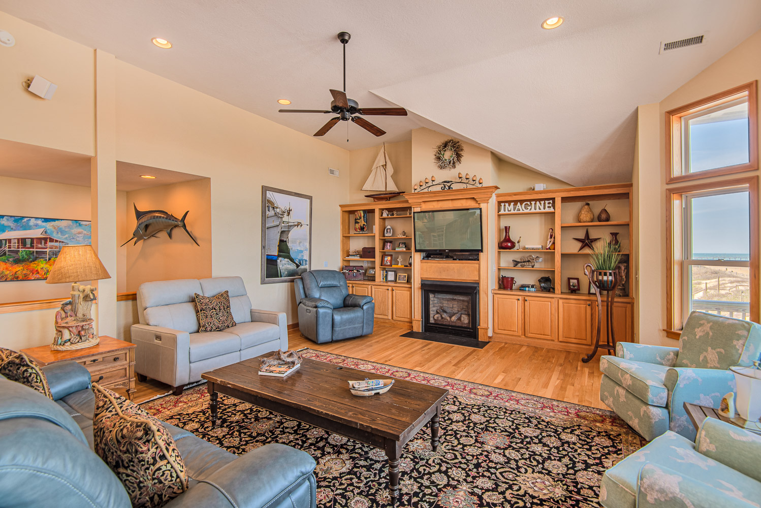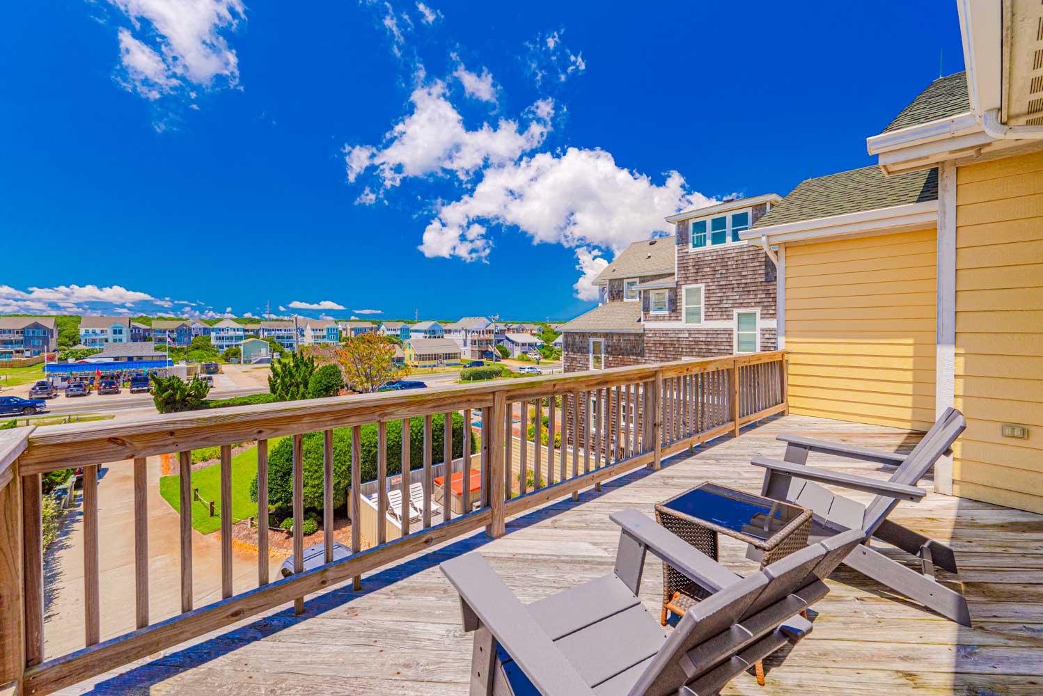 Top Level: Opulent Living/Kitchen Dining Area, TV, Half Bath, Private Suite w/King, TV, & Full Bath w/tub & separate shower, Sun Deck w/Furniture, Screened Porch w/Furniture & Beautiful Ocean Views.