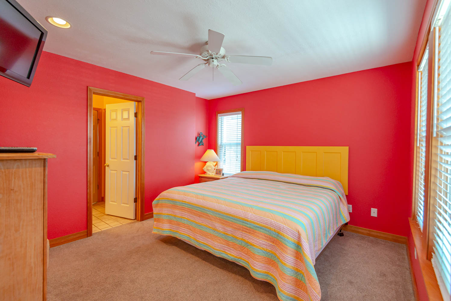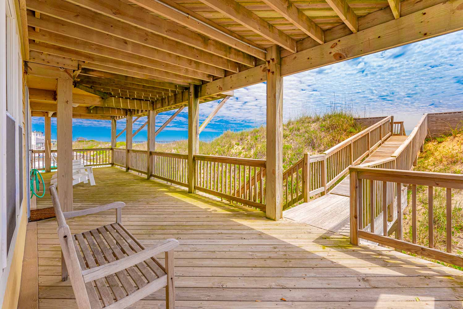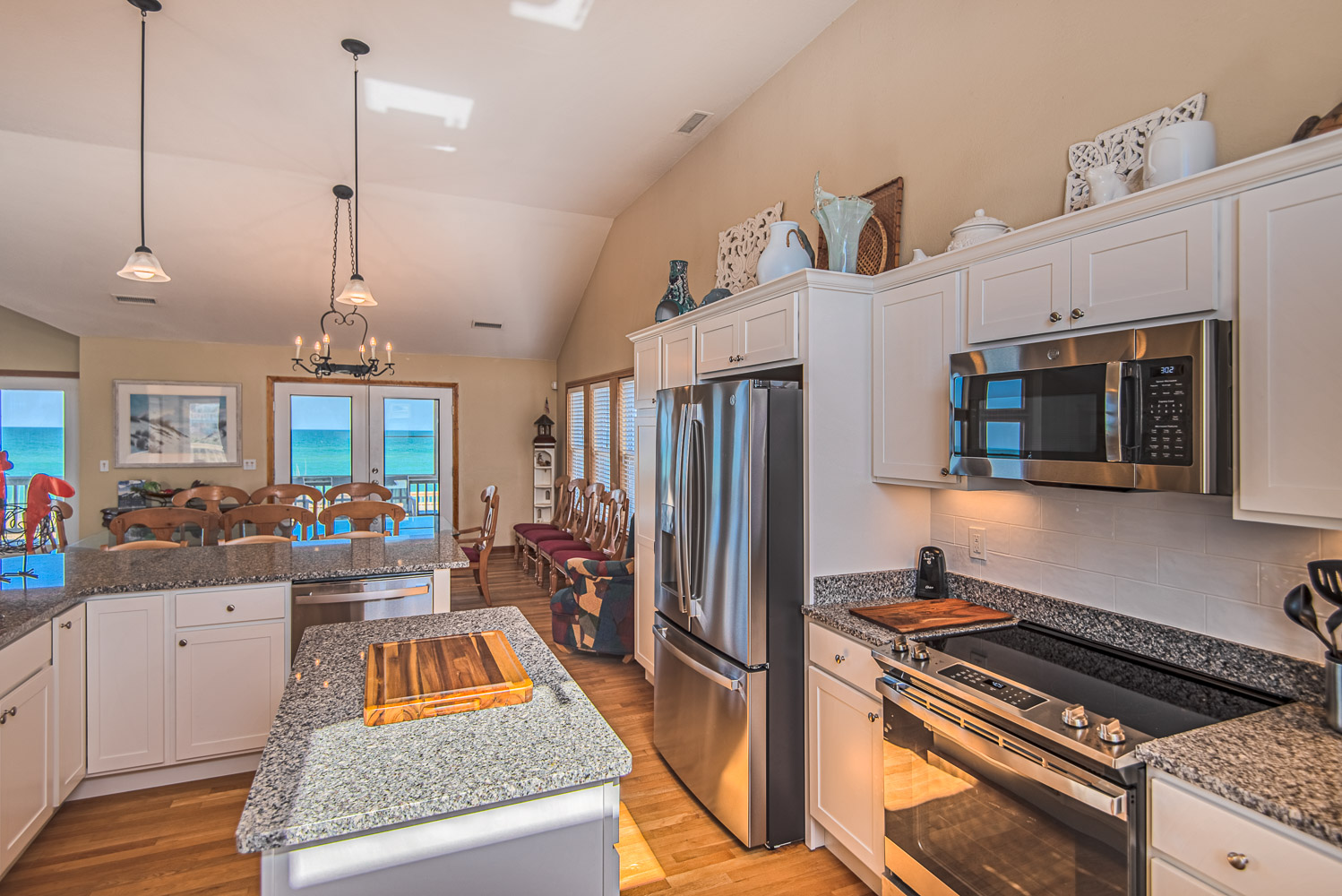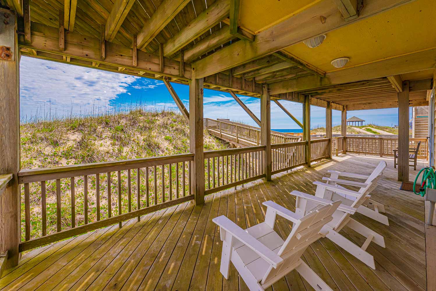 Mid Level: Four Tastefully Decorated Bedrooms (1 Private Suite w/King, TV, & Full Bath, 1 Private Suite w/2 Duo Bunks, TV, & Full Bath, & 2 w/Kings & TV's), Shared Full Bath, Covered Deck w/Steps to Pool, & Oceanfront Covered Porch.