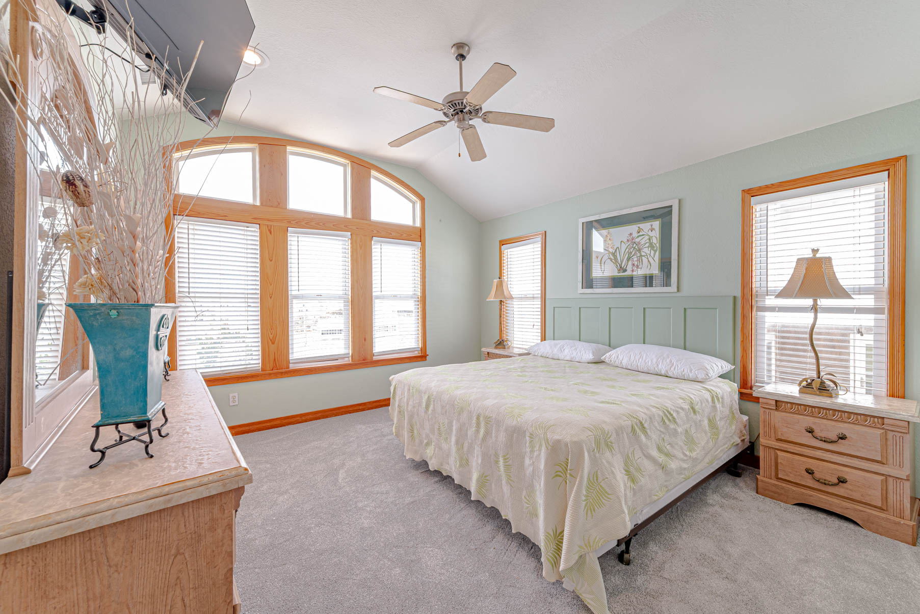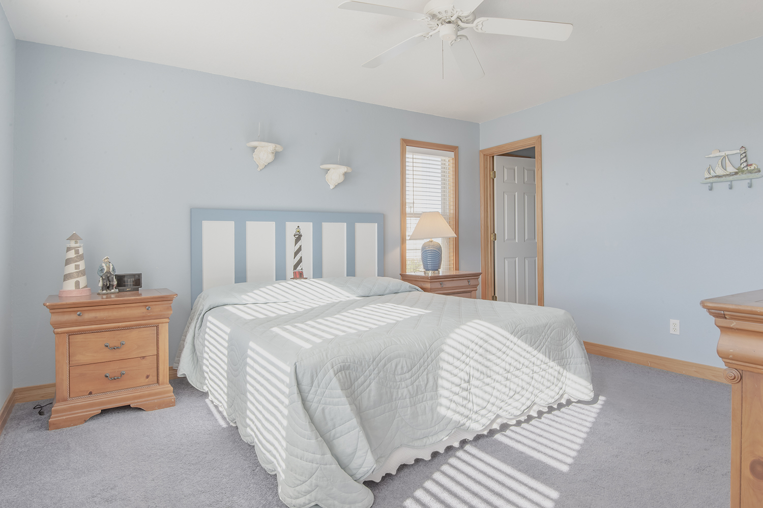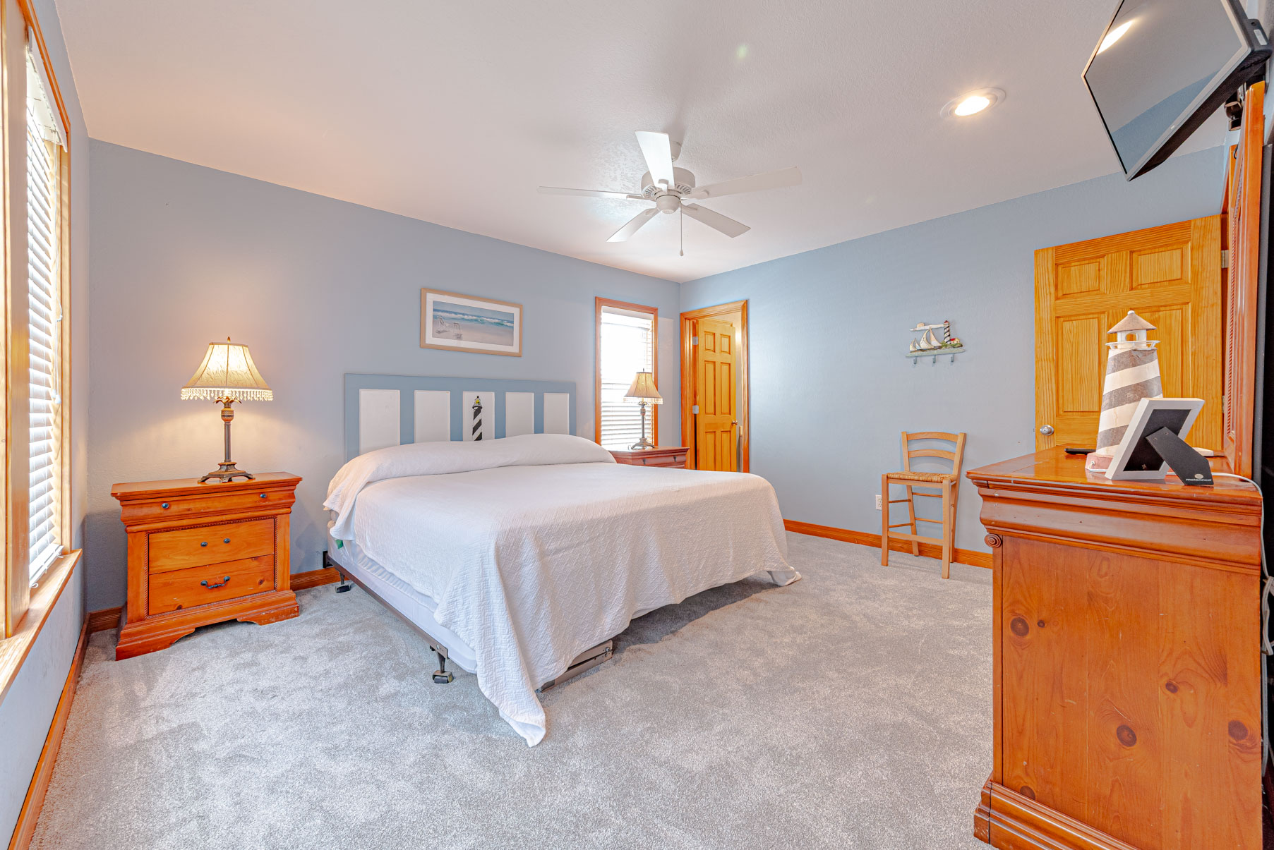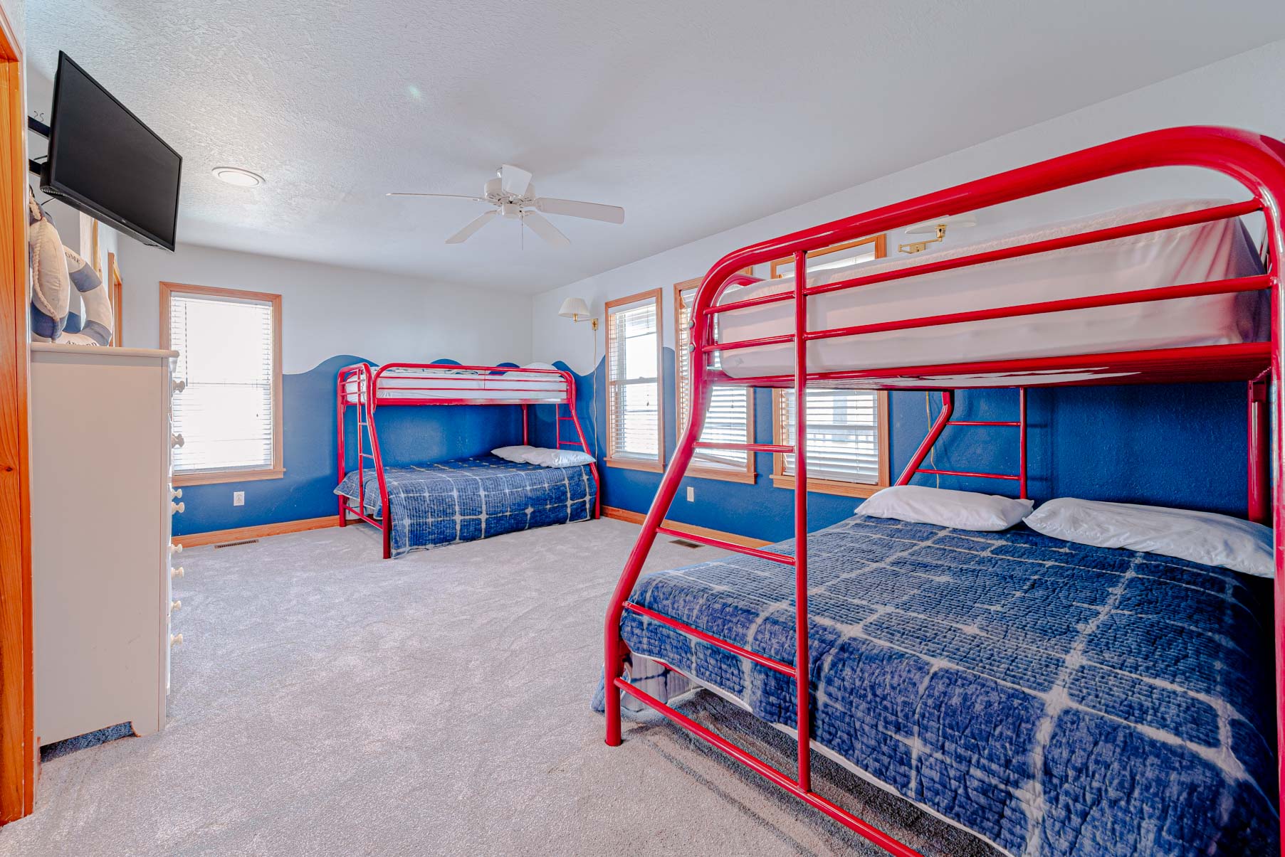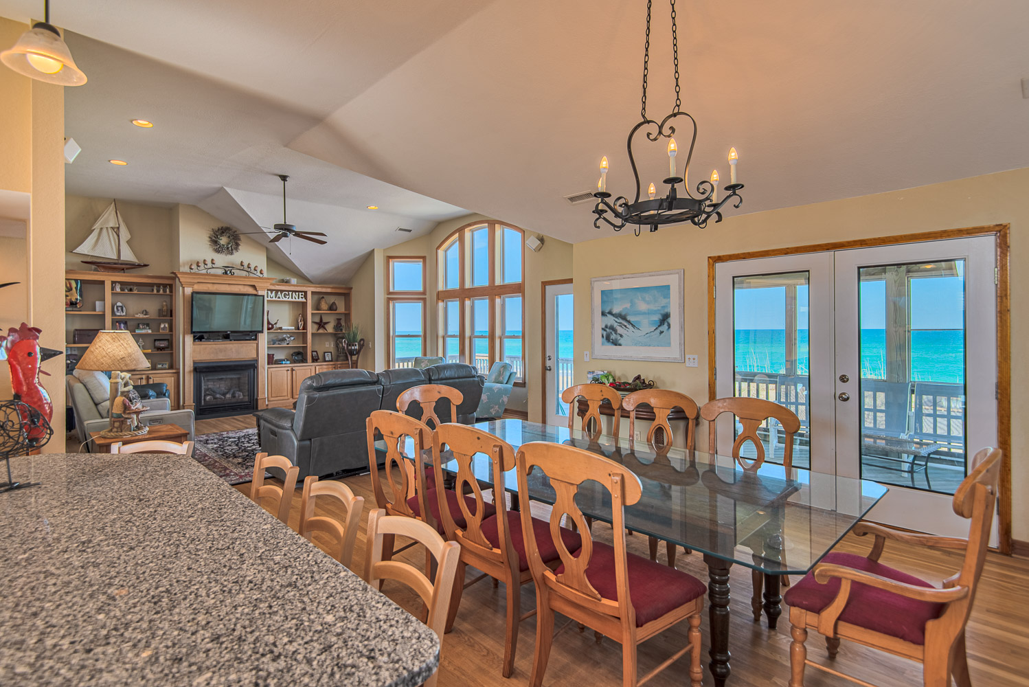 Mid Level: Four Tastefully Decorated Bedrooms (1 Private Suite w/King, TV, & Full Bath, 1 Private Suite w/2 Duo Bunks, TV, & Full Bath, & 2 w/Kings & TV's), Shared Full Bath, Covered Deck w/Steps to Pool, & Oceanfront Covered Porch.