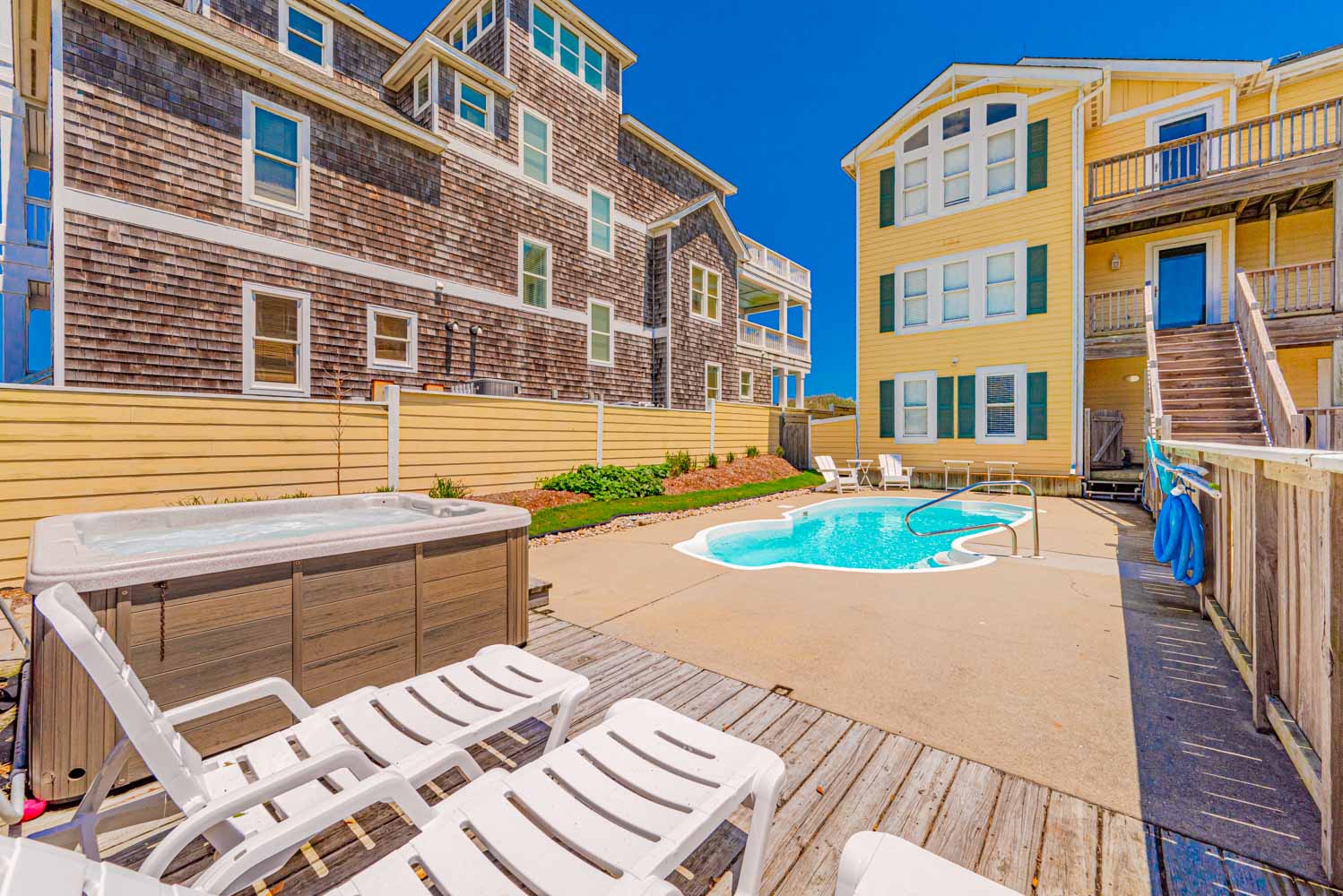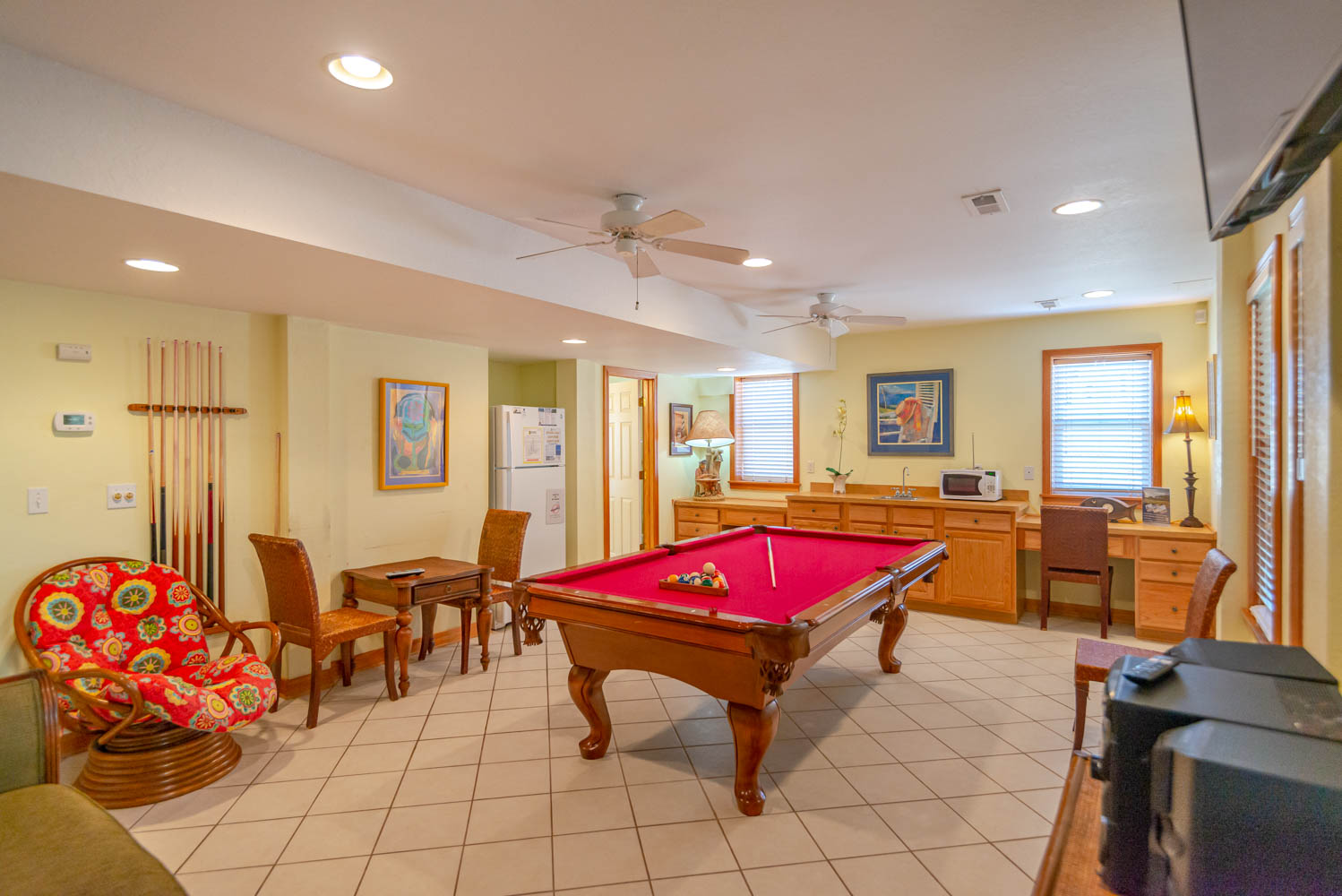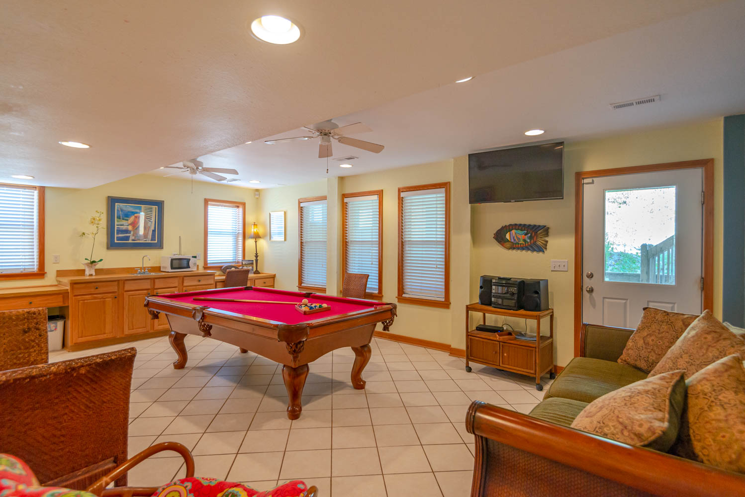 Ground Level: Parking for 5 Cars Including Garage, Covered Entry, Elevator, Rec. Room w/Pool Table, TV, Full Size Refrigerator, Microwave, Work Desk, Private Suite w/King, TV, & Full Bath, Storage Area, Access to Pool Patio Area, Private Swimming Pool - Open Seasonally, Hot Tub, Enclosed Outside Shower, & Walkway to Beach w/Dune Top Deck.