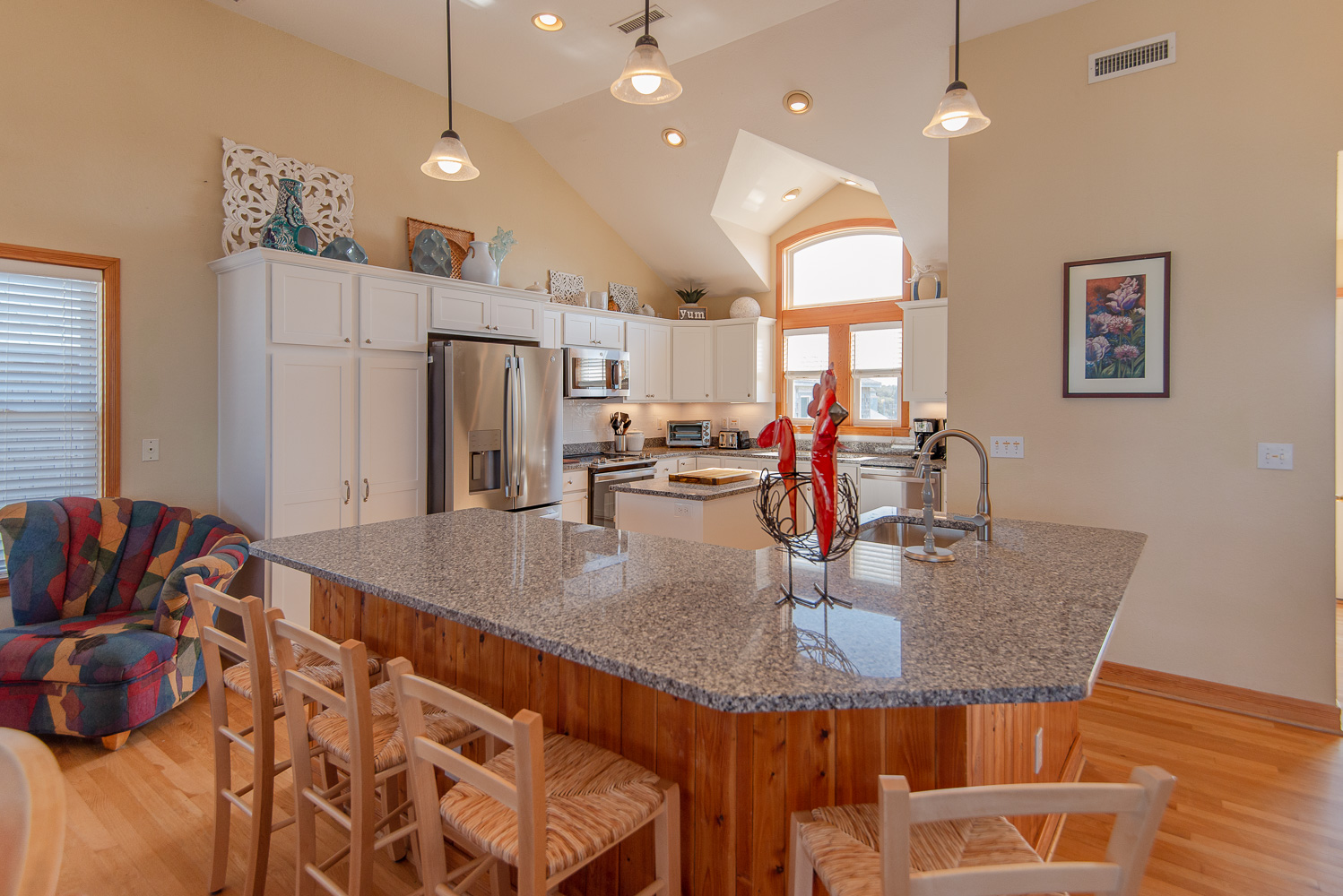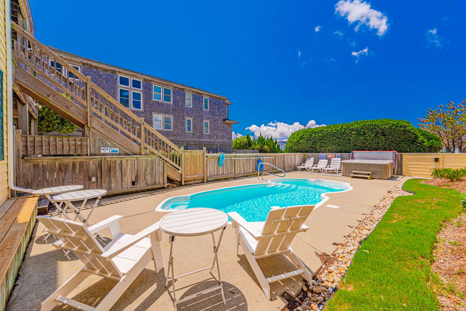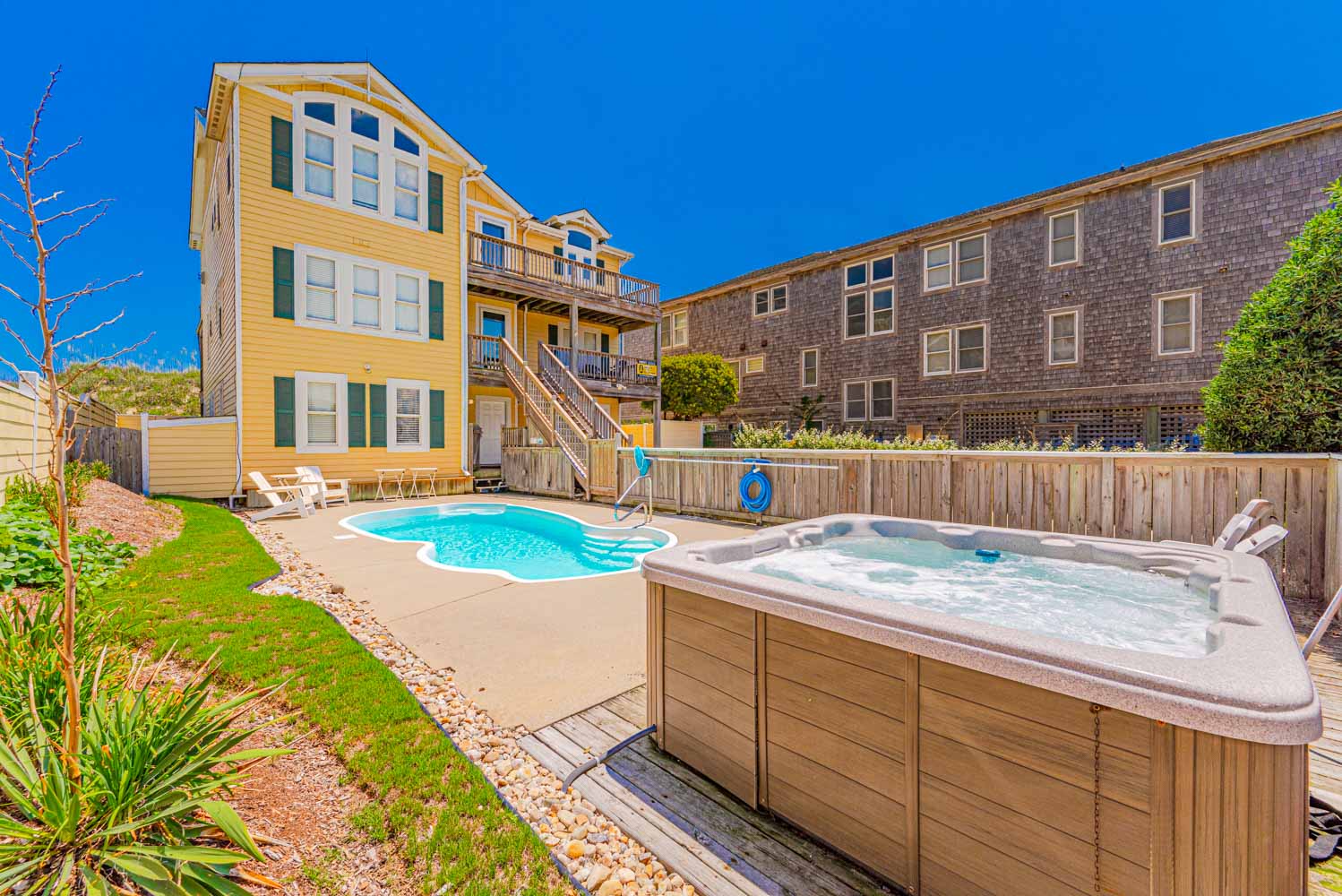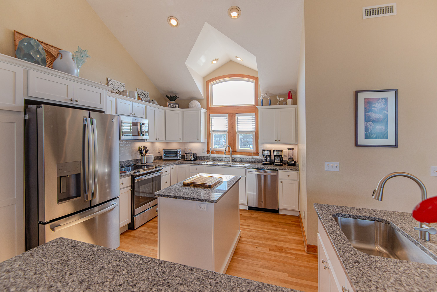 Ground Level: Parking for 5 Cars Including Garage, Covered Entry, Elevator, Rec. Room w/Pool Table, TV, Full Size Refrigerator, Microwave, Work Desk, Private Suite w/King, TV, & Full Bath, Storage Area, Access to Pool Patio Area, Private Swimming Pool - Open Seasonally, Hot Tub, Enclosed Outside Shower, & Walkway to Beach w/Dune Top Deck.