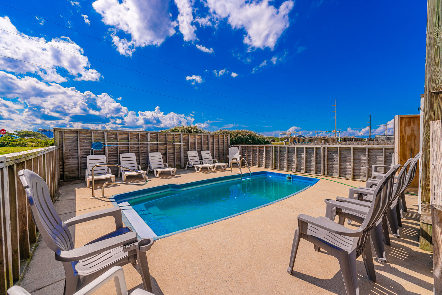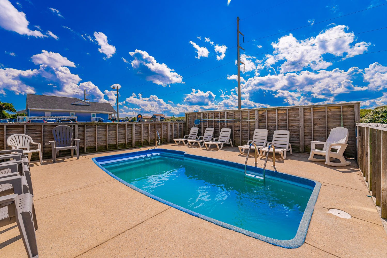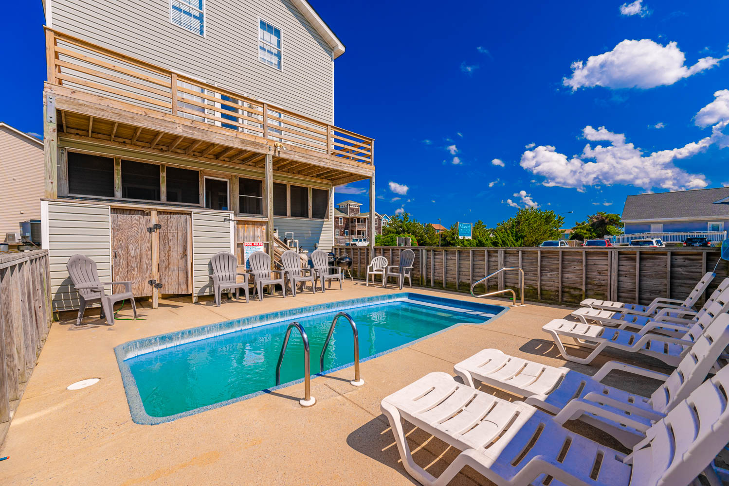 First Level: Rec. Room w/Foosball, Card Table, HDTV, Wet Bar, Full-Sized Refrigerator; Half Bath, Screen Porch, Porch Furniture, Hot Tub, and Steps to Private Swimming Pool.