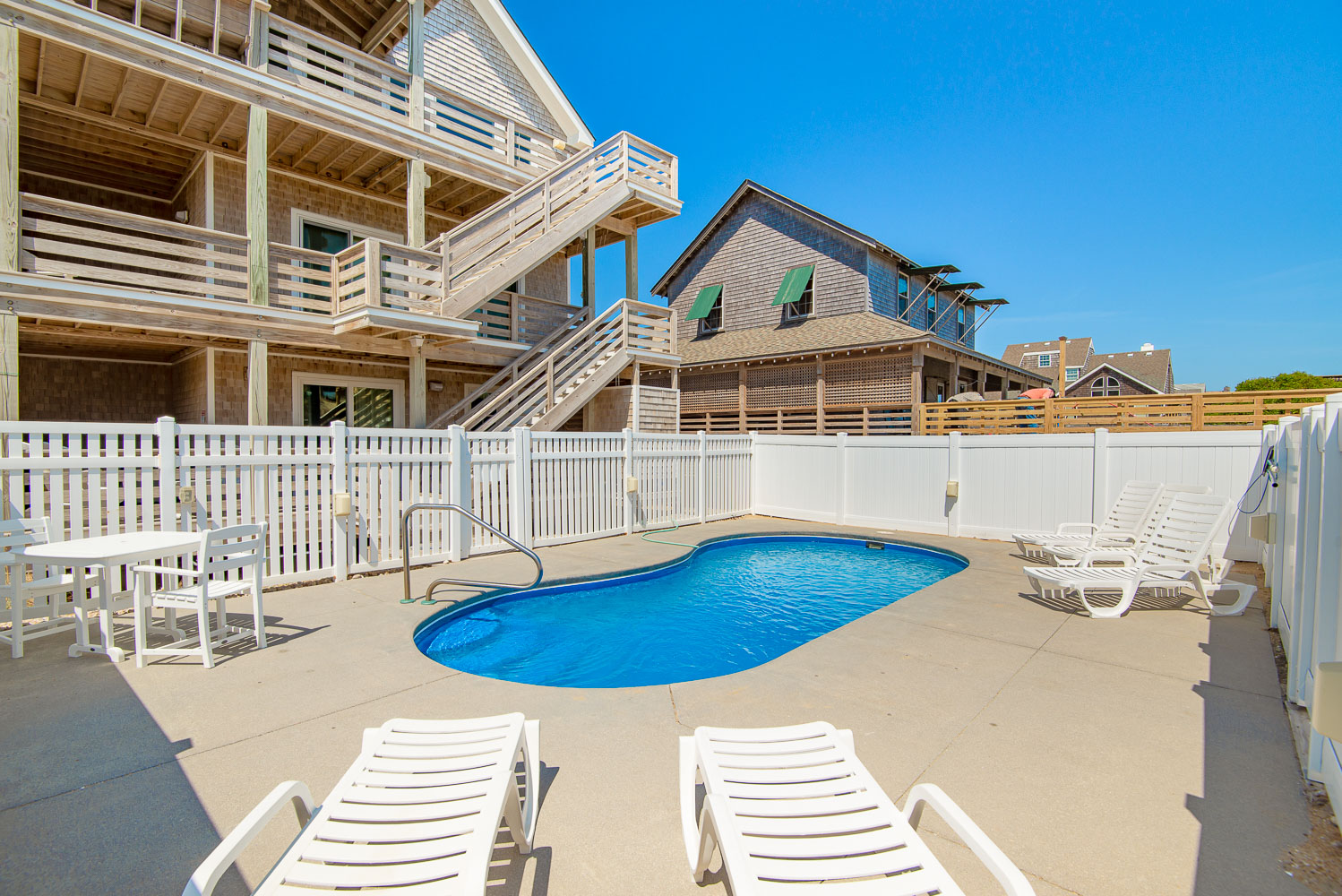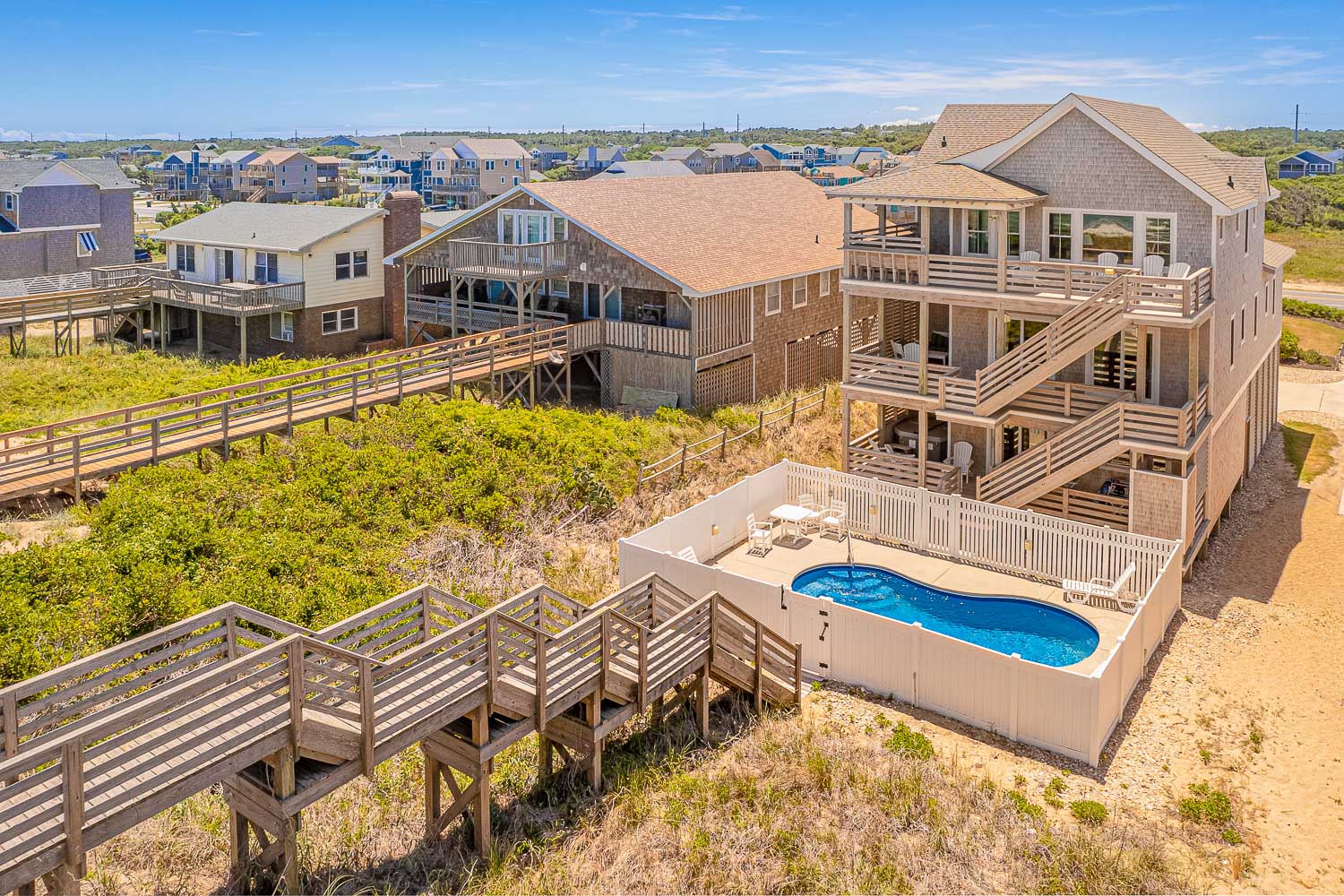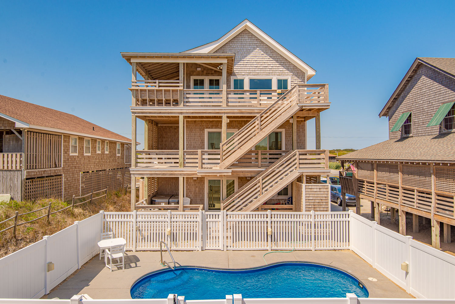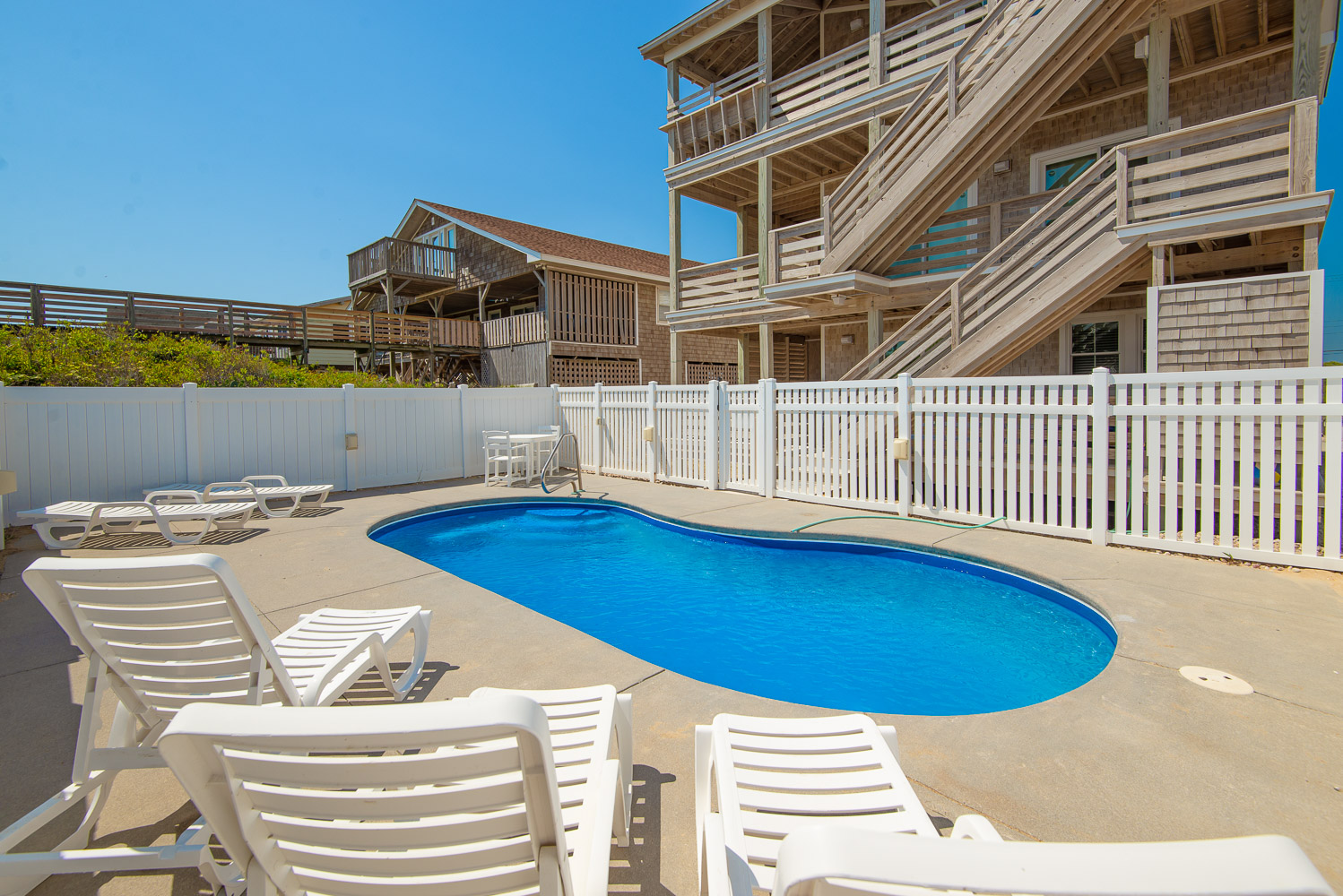 Ground Level: Parking for 5 Cars, Shared Driveway, 7 Steps to Covered Entry, Private Saltwater Swimming Pool - Open Seasonally, Pool Furniture, Enclosed Outside Showers, Gas Grill, and Walkway to Beach w/Dune Top Deck.