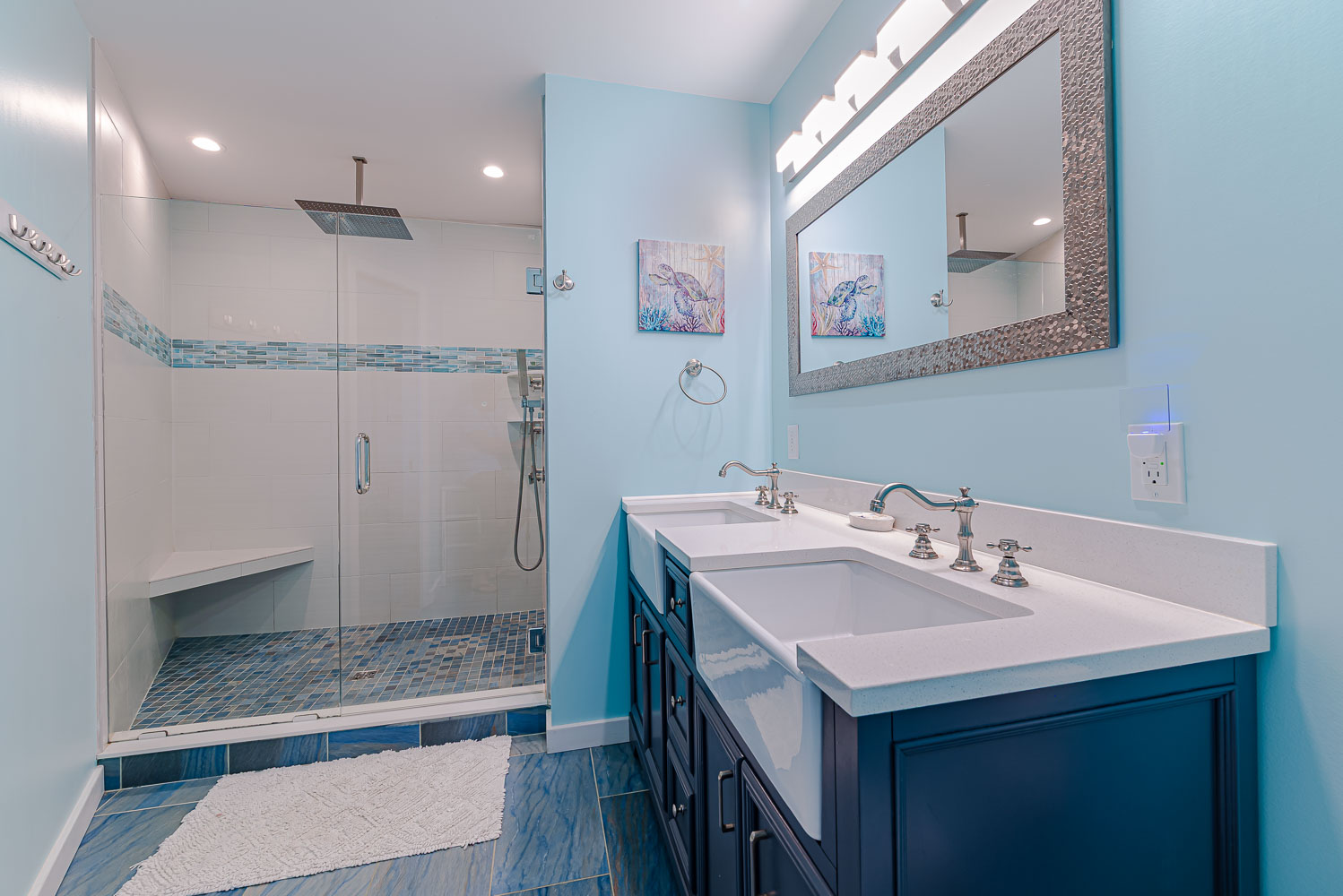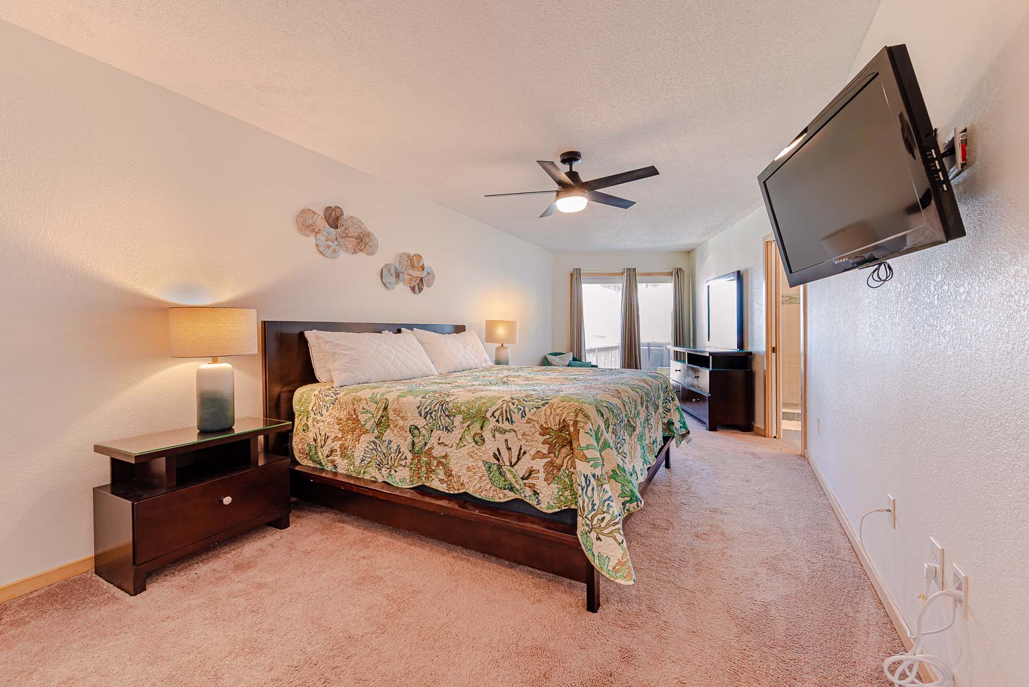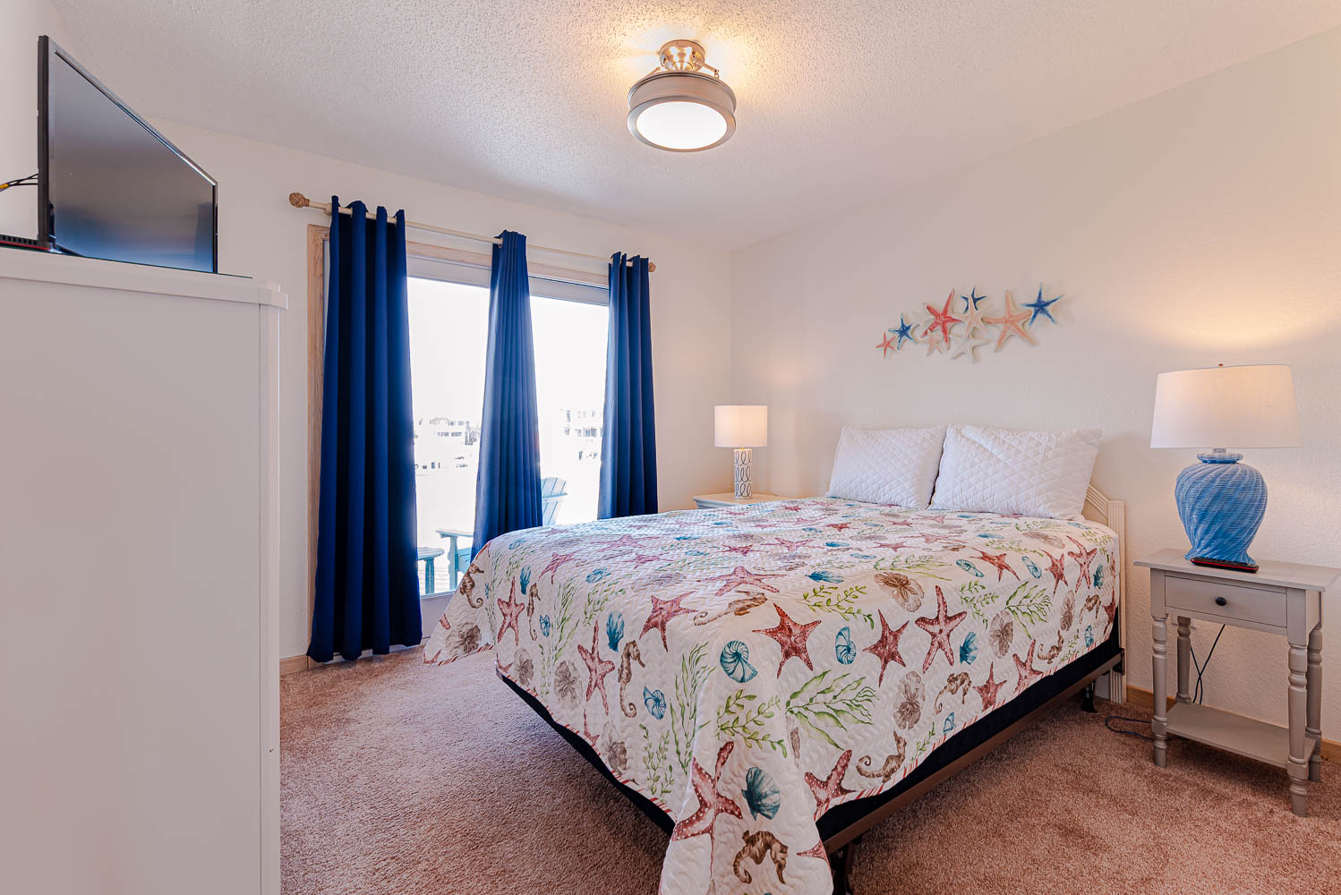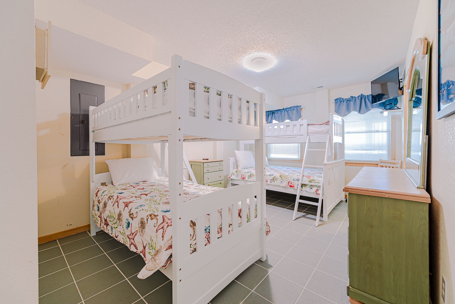 Mid Level: 4 Bedrooms (Private Suite w/King, TV, Full Bath w/Large Tiled Walk-In Shower; Private Suite w/King, TV, Full Bath w/Walk-In Shower; Access to Oceanfront Covered Deck, Hot Tub, Steps to Pool Area; 2 w/Queens, TV, Access to Front Covered Deck w/Deck Furniture; Full Hall Bath w/Tub/Shower; and Laundry Area.