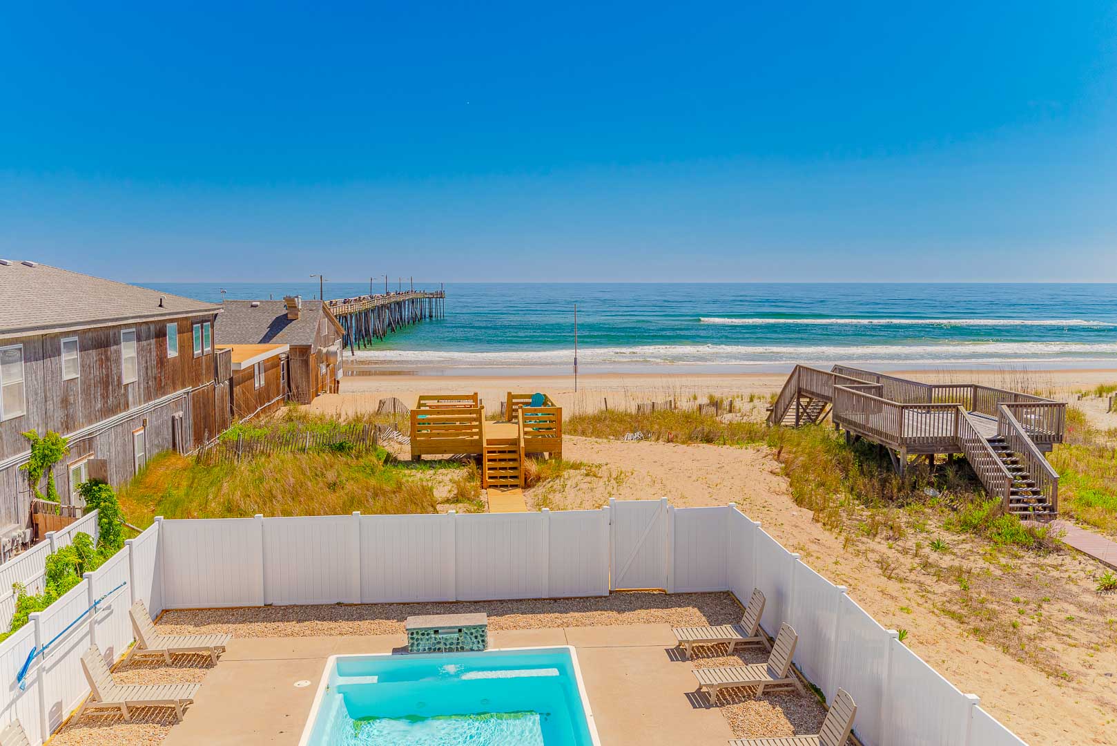 Wright By The Pier is an outstanding Oceanfront Home loaded with amenities designed to ensure your family will want to come back year after year. A memorable Outer Banks Vacation for your entire family. The ocean views are second to none. Located right next to the Nags Head Pier, where you can have breakfast, lunch, dinner, and for the fisherman in your family FISHING!