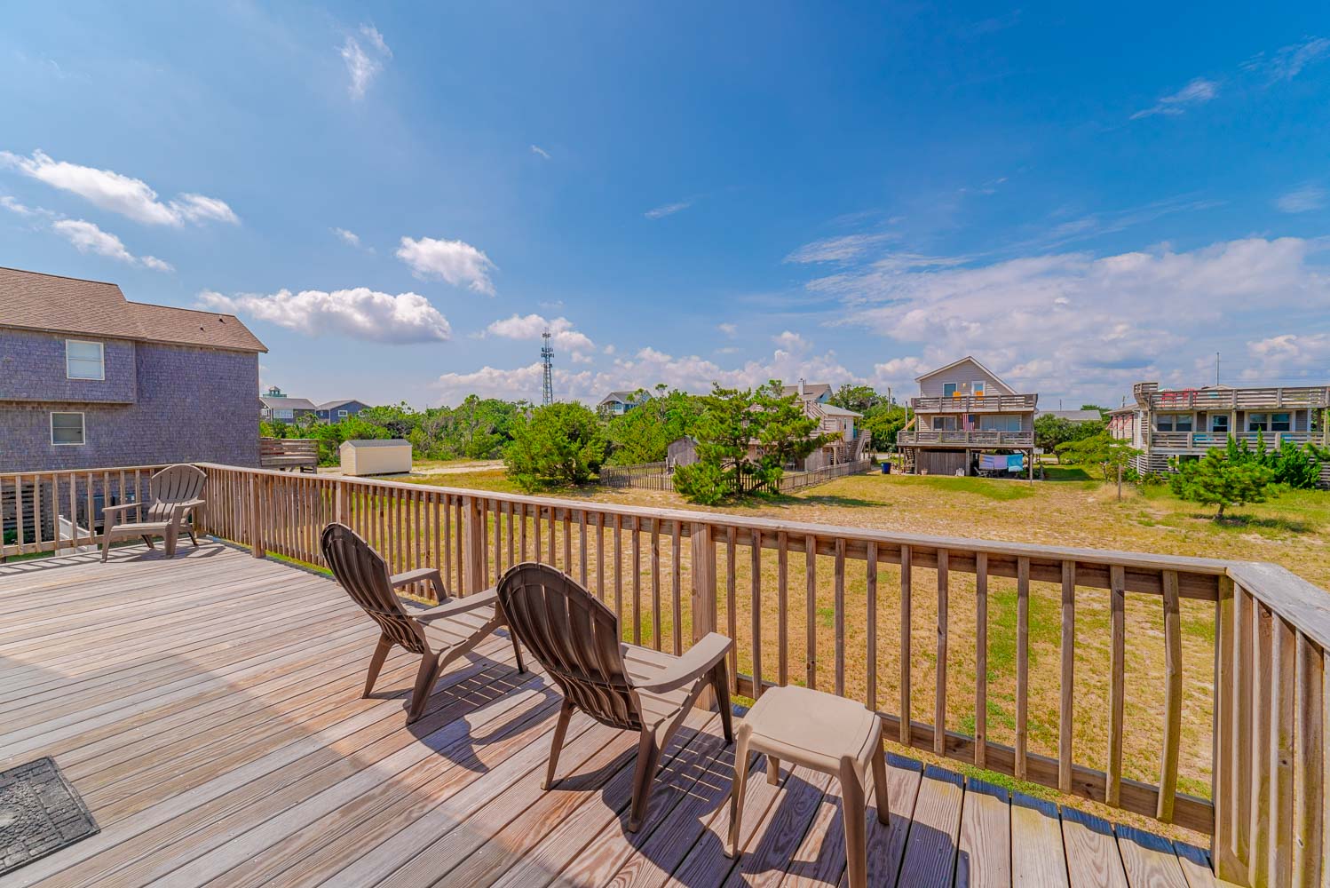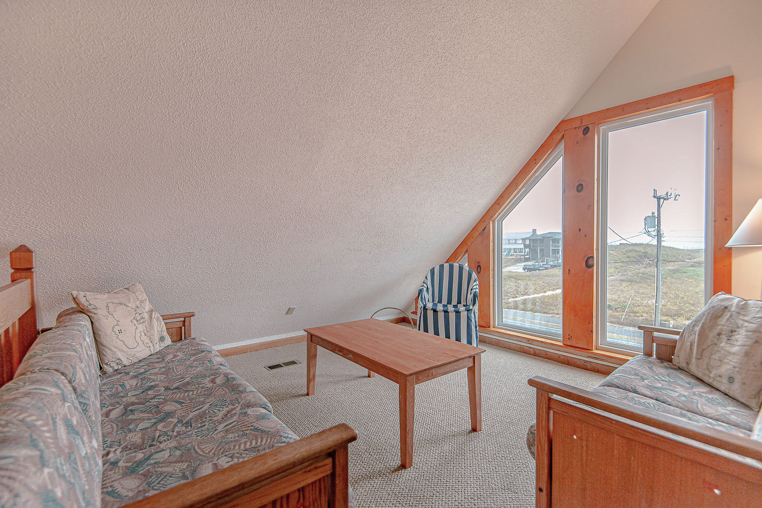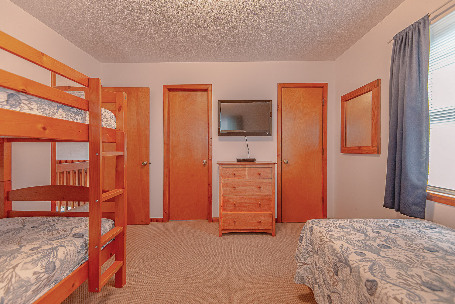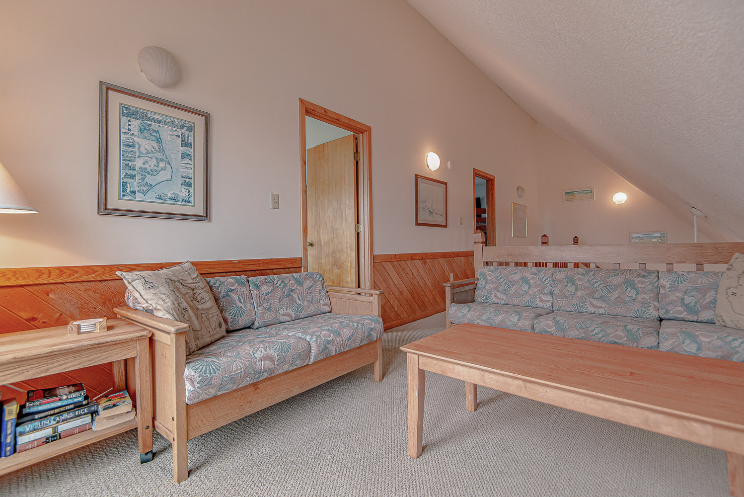 Top Level: 2 Bedrooms (1 w/Queen, TV; 1 w/Bunk Set, Single, TV), Full Bath, Loft w/Sitting Area, and Sun Deck w/Horizon Ocean Views.