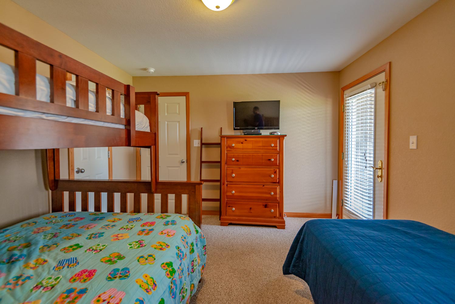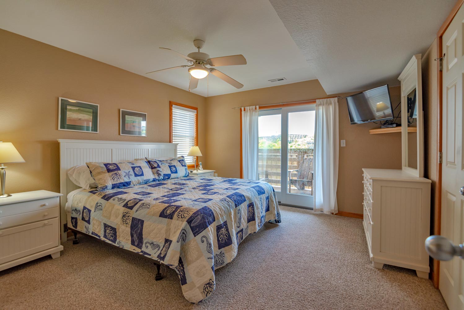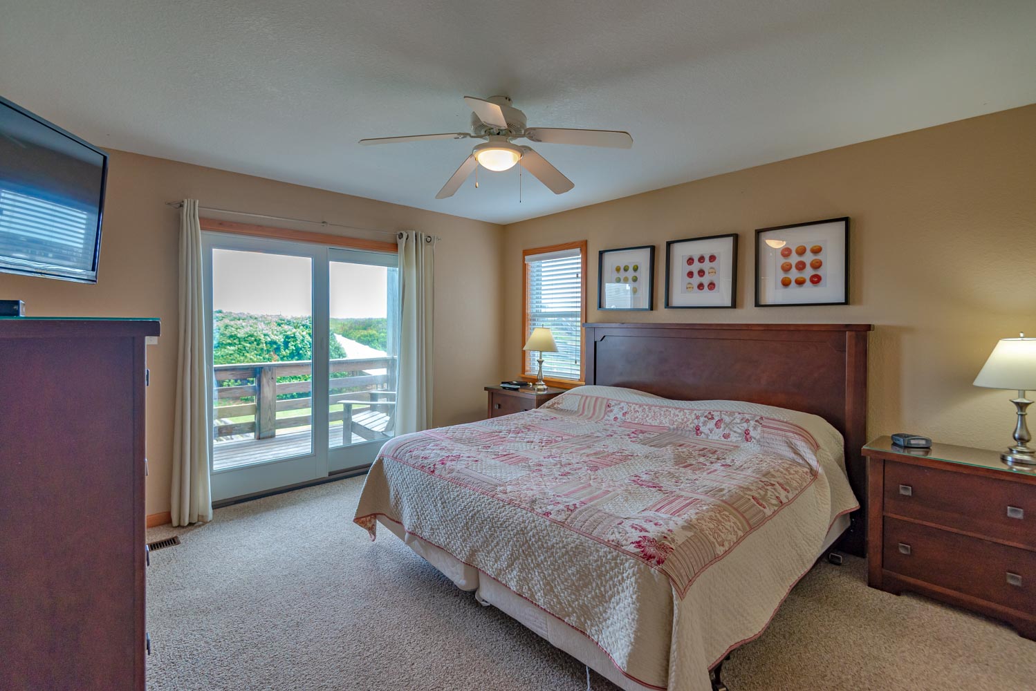 Mid Level: 4 Bedrooms (2 Oceanfront Private Suites w/Kings, Flat Screen TVs, Full Baths, & Deck Access, 1 w/Queen, Flat Screen TV, & Private Deck Access, & 1 w/Duo Bunk, Single, Flat Screen TV, & Private Deck Access), Full Hall Bath, & Covered Deck w/2 Swings.