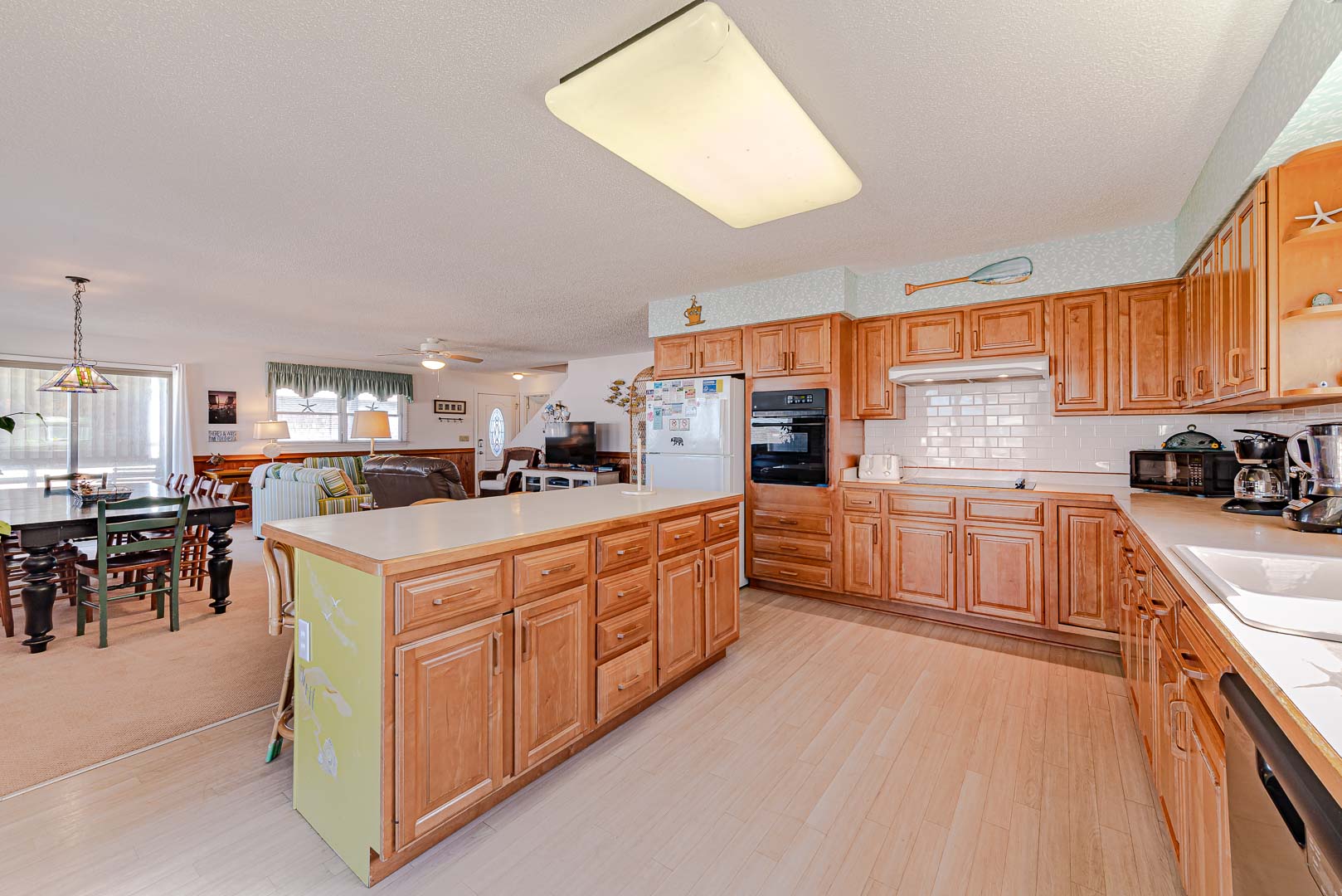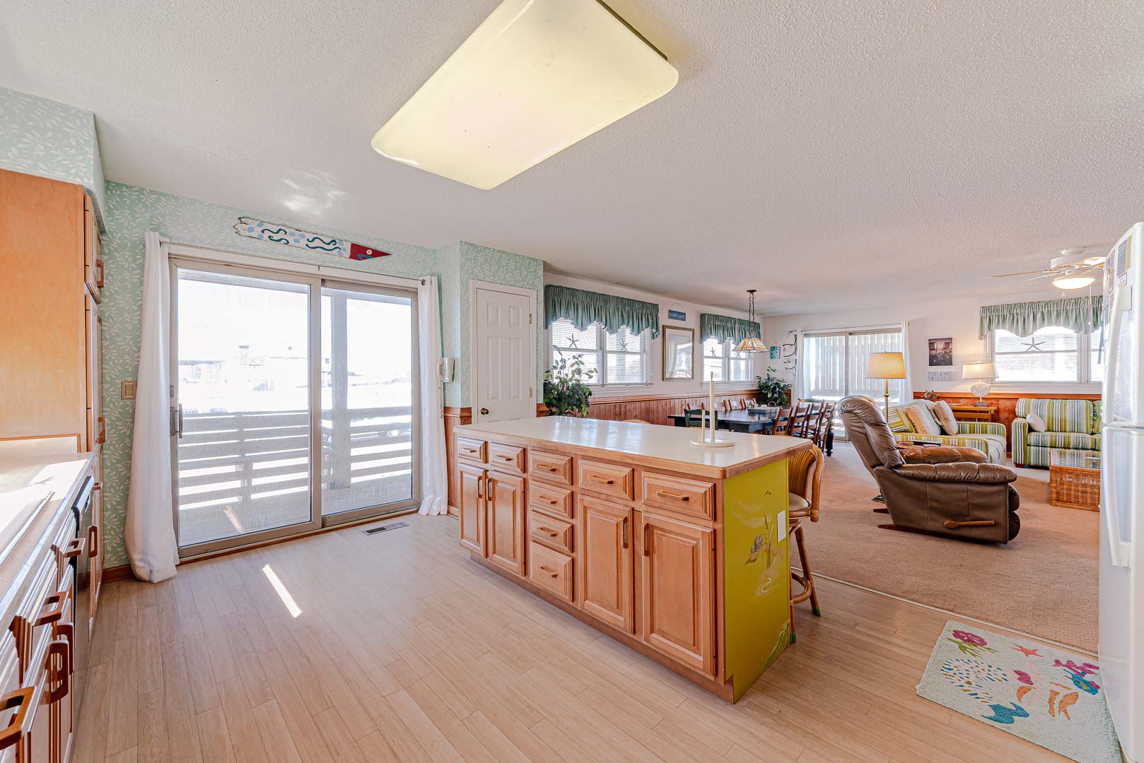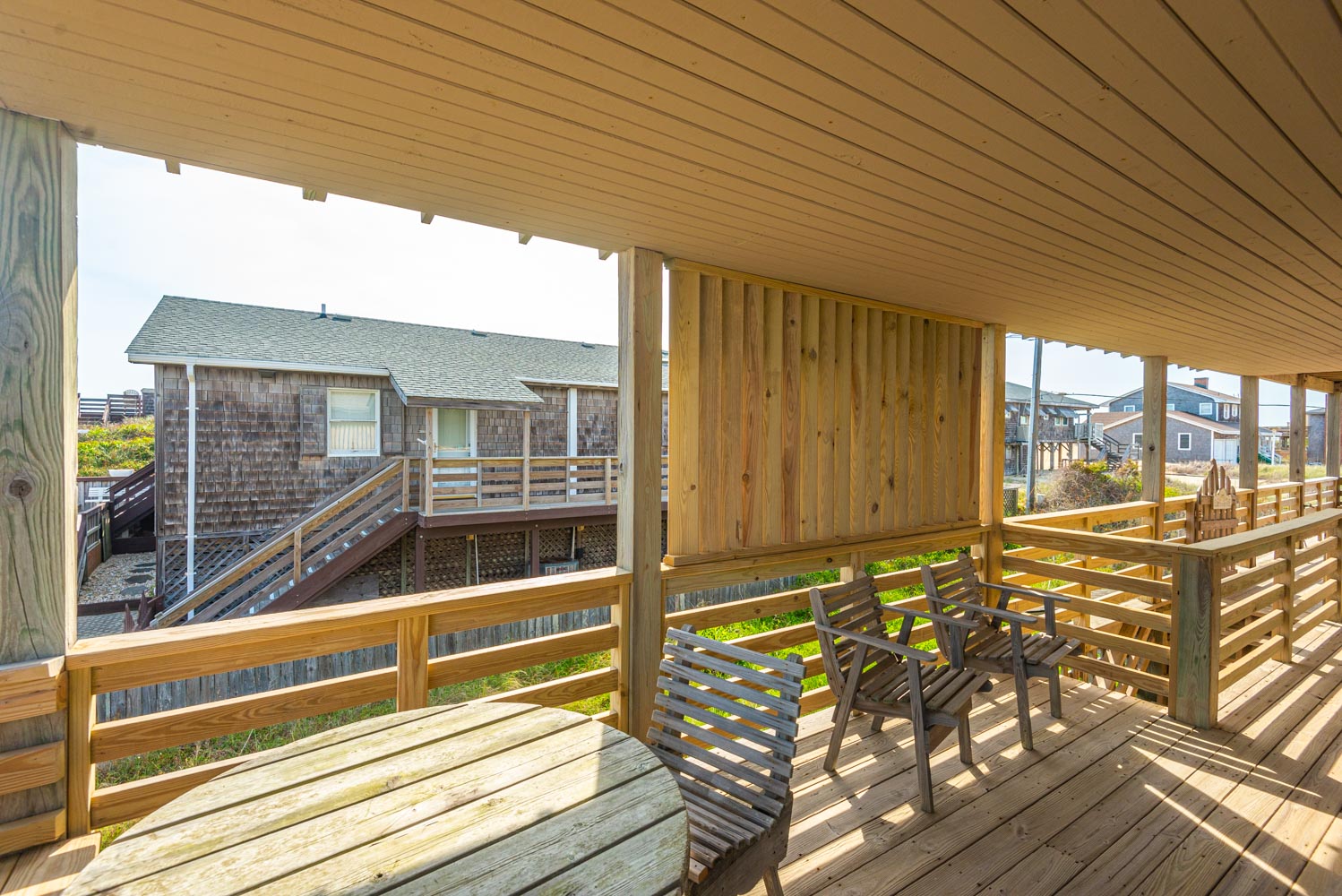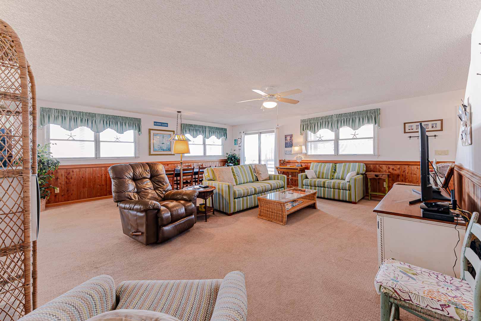 Top Level: 2 Bedrooms (1 w/Queen, Bunk Set, & TV & 1 w/Queen & TV), Rec. Room w/Large Flat Panel TV/DVD, Foosball Table, Card Table, 1 Full Bath, & Sun Deck w/Built-In Seating & Beautiful Ocean Views.