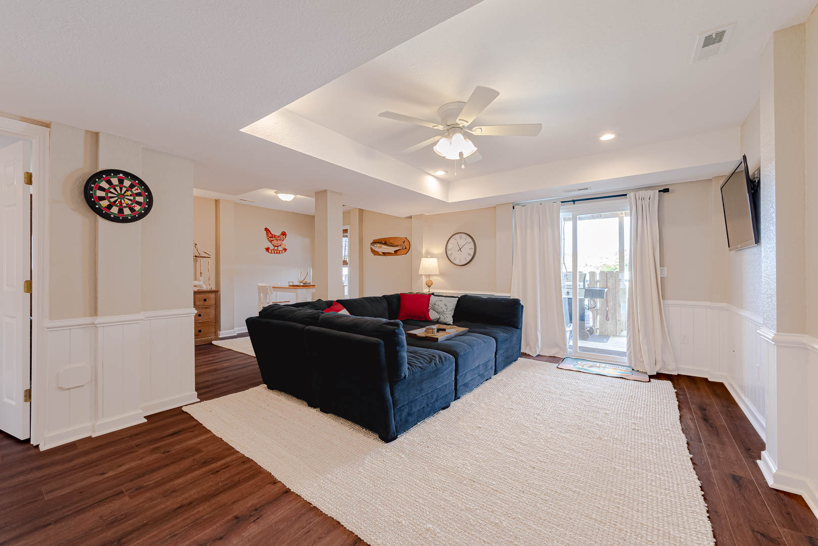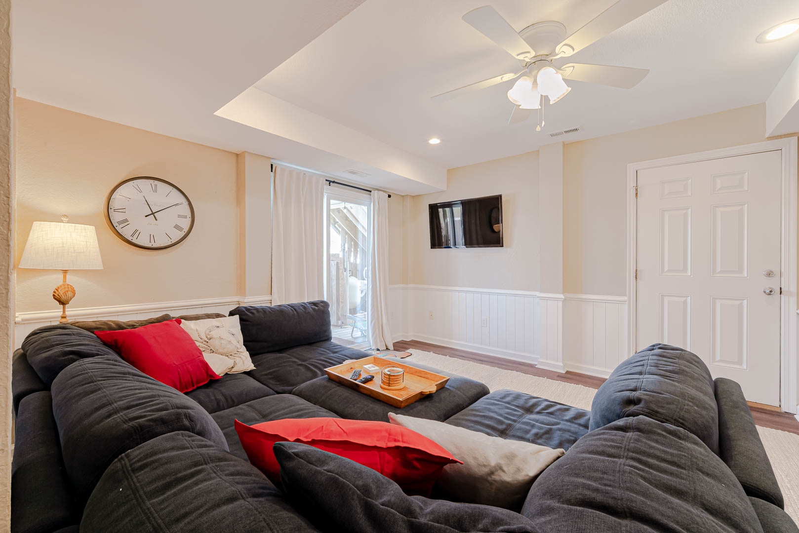 Ground Level: Parking for 4 Vehicles, Stairs to Mid Level Covered Entry, Rec. Room/Den, TV, Sitting Area; Bedroom w/Queen, TV, Full Bath w/Tub/Shower; Access to Covered Area, Enclosed Outside Shower, Large Fenced Yard, Gas Grill, Private Swimming Pool w/Pool Furniture, and Hot Tub.