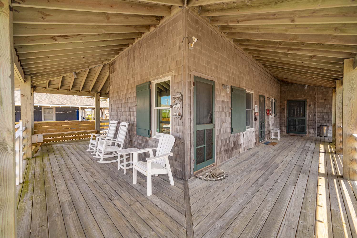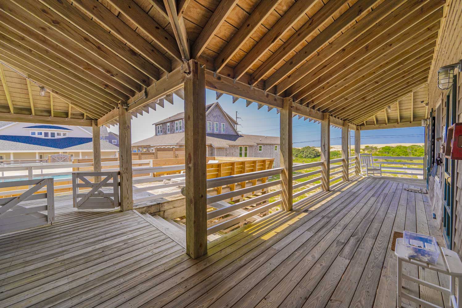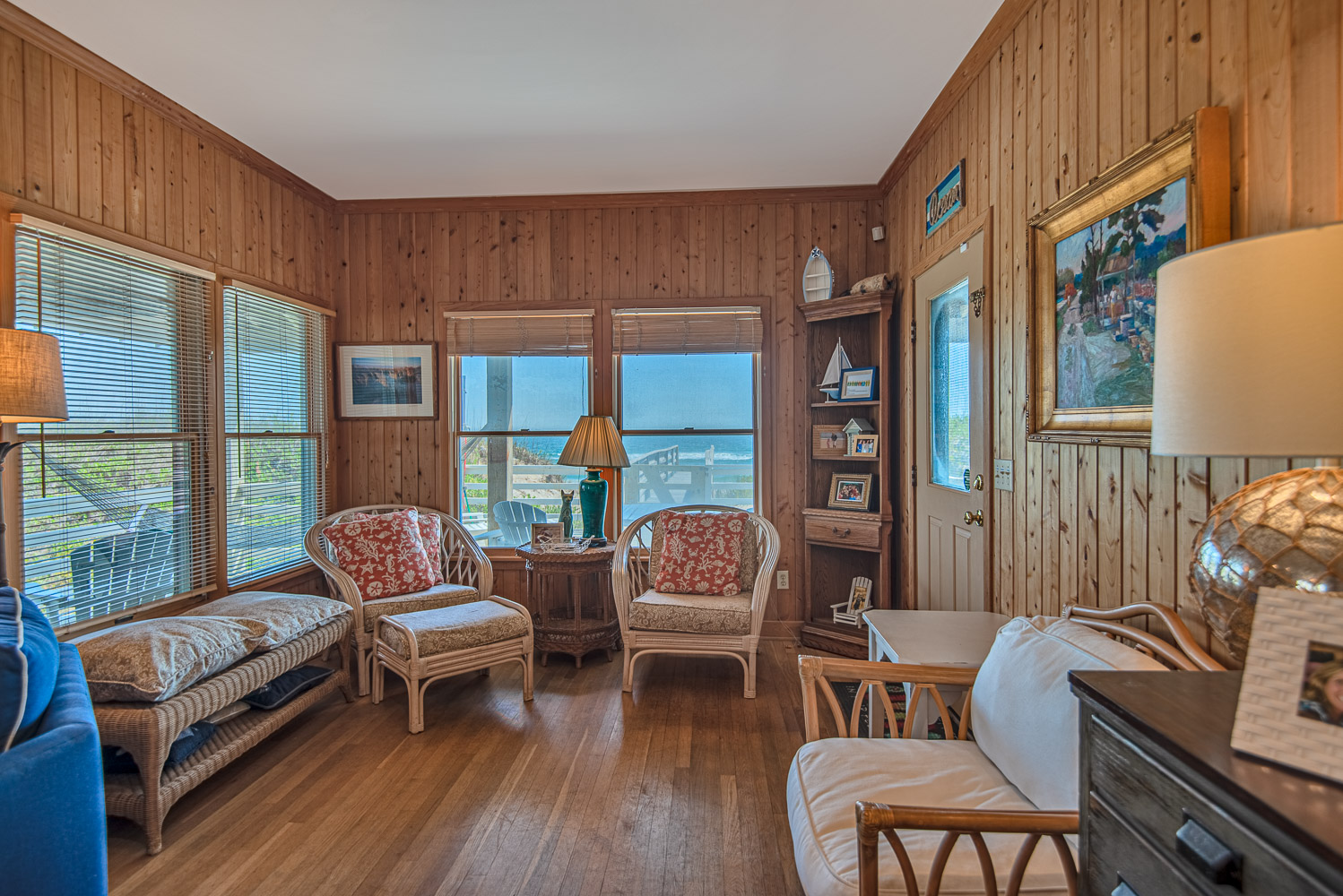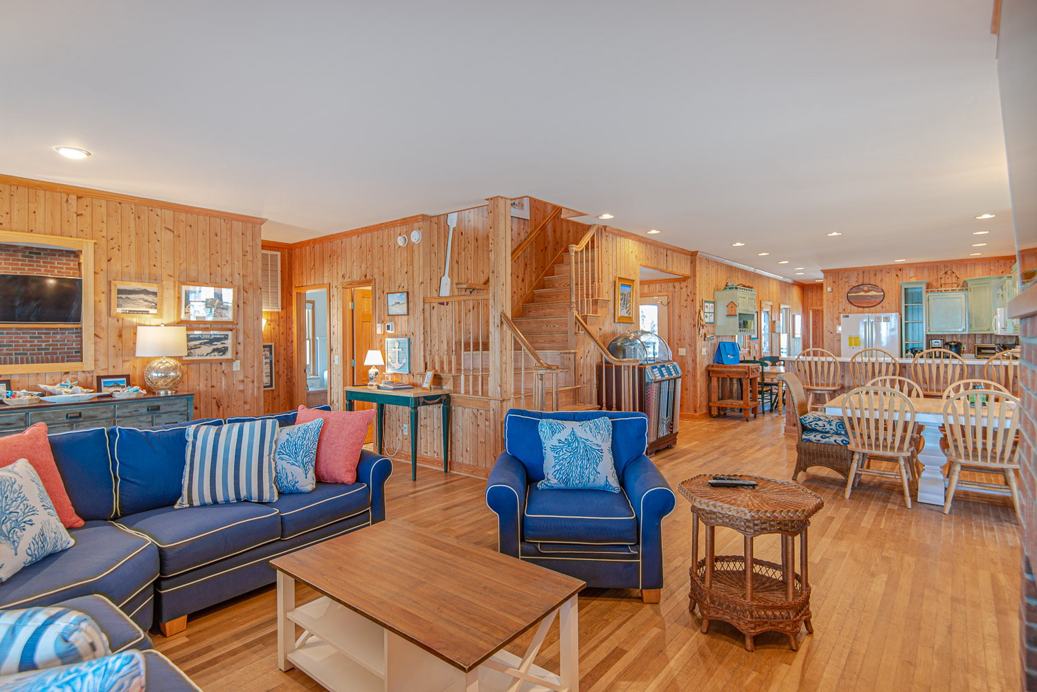 Mid Level: Living/Dining/Kitchen Area, TV, 2 Bedrooms (1 w/King, TV; 1 w/Queen, TV), Half Bath, Full Hall Bath w/Tub/Shower, Covered Deck w/Hot Tub, Sun Deck, and Walkway to Beach.
