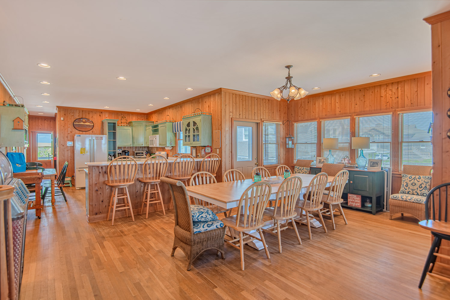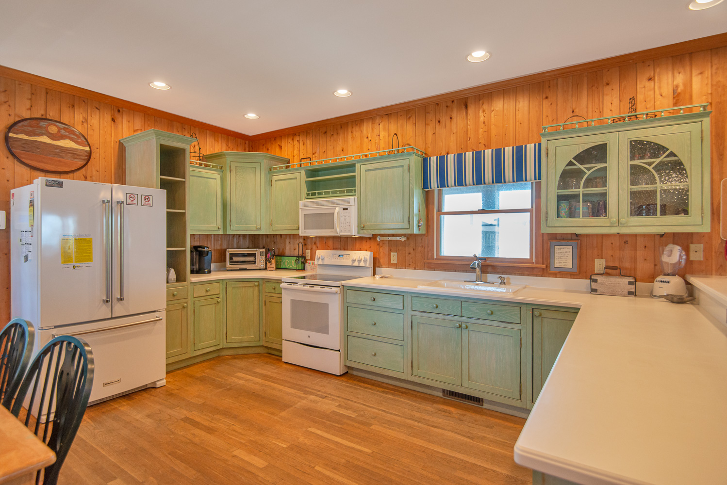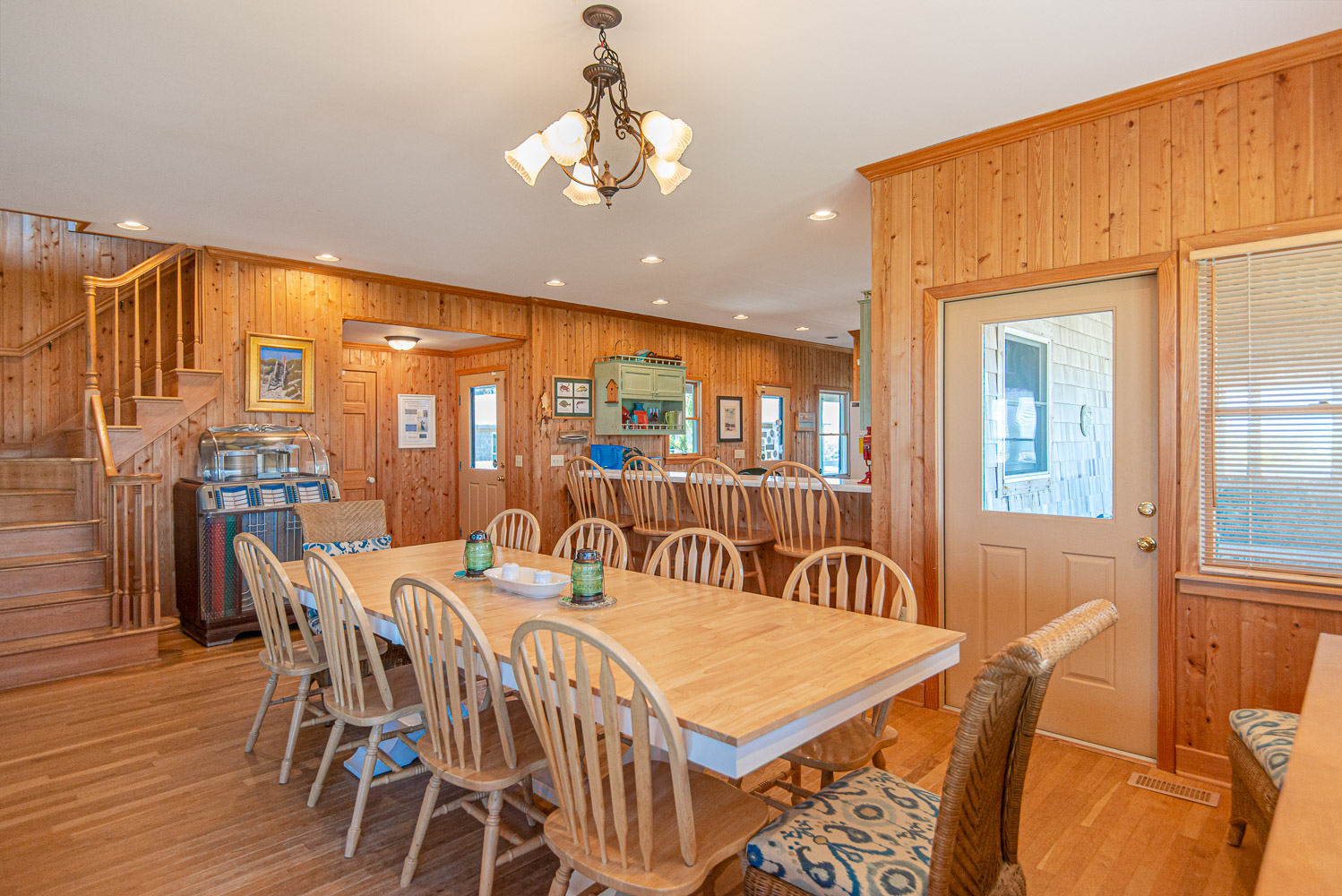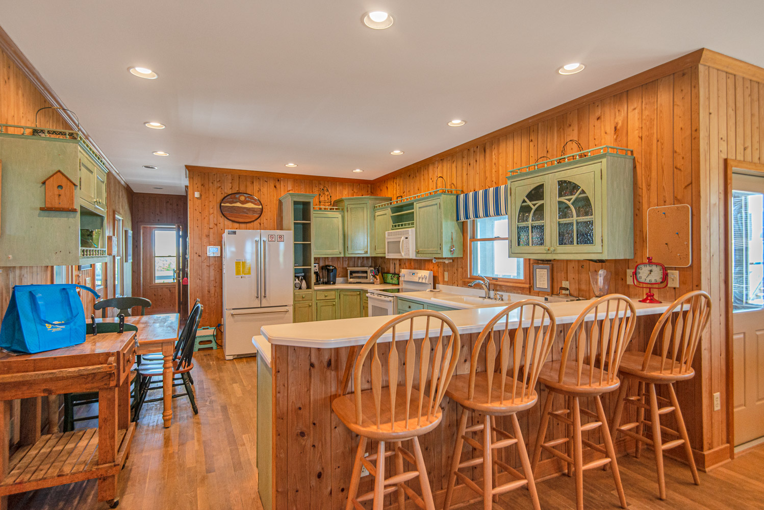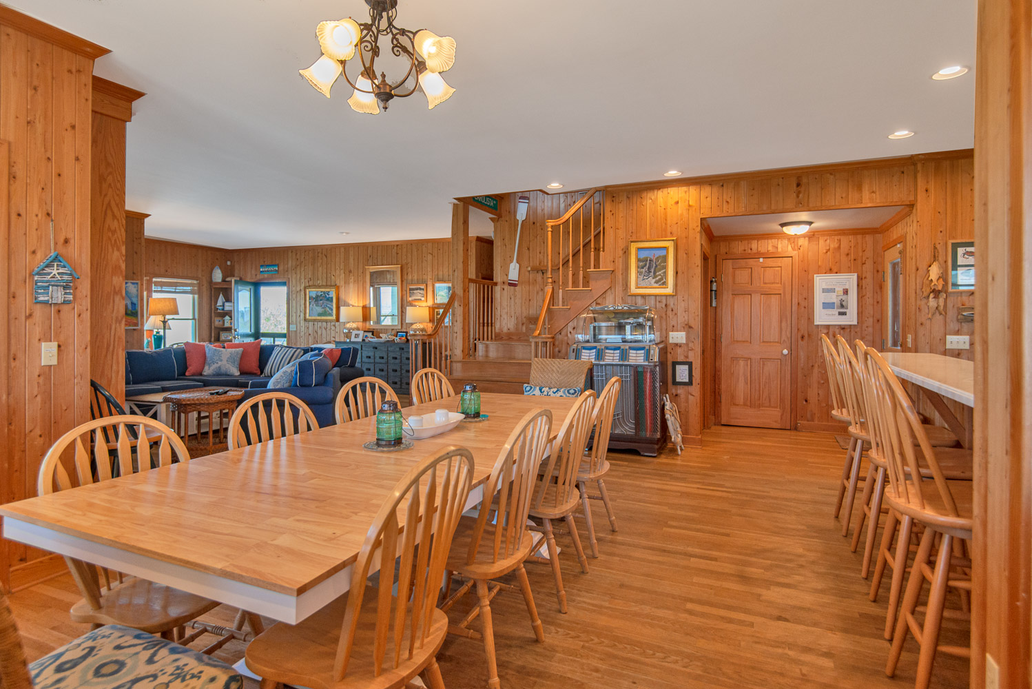 Mid Level: Living/Dining/Kitchen Area, TV, 2 Bedrooms (1 w/King, TV; 1 w/Queen, TV), Half Bath, Full Hall Bath w/Tub/Shower, Covered Deck w/Hot Tub, Sun Deck, and Walkway to Beach.