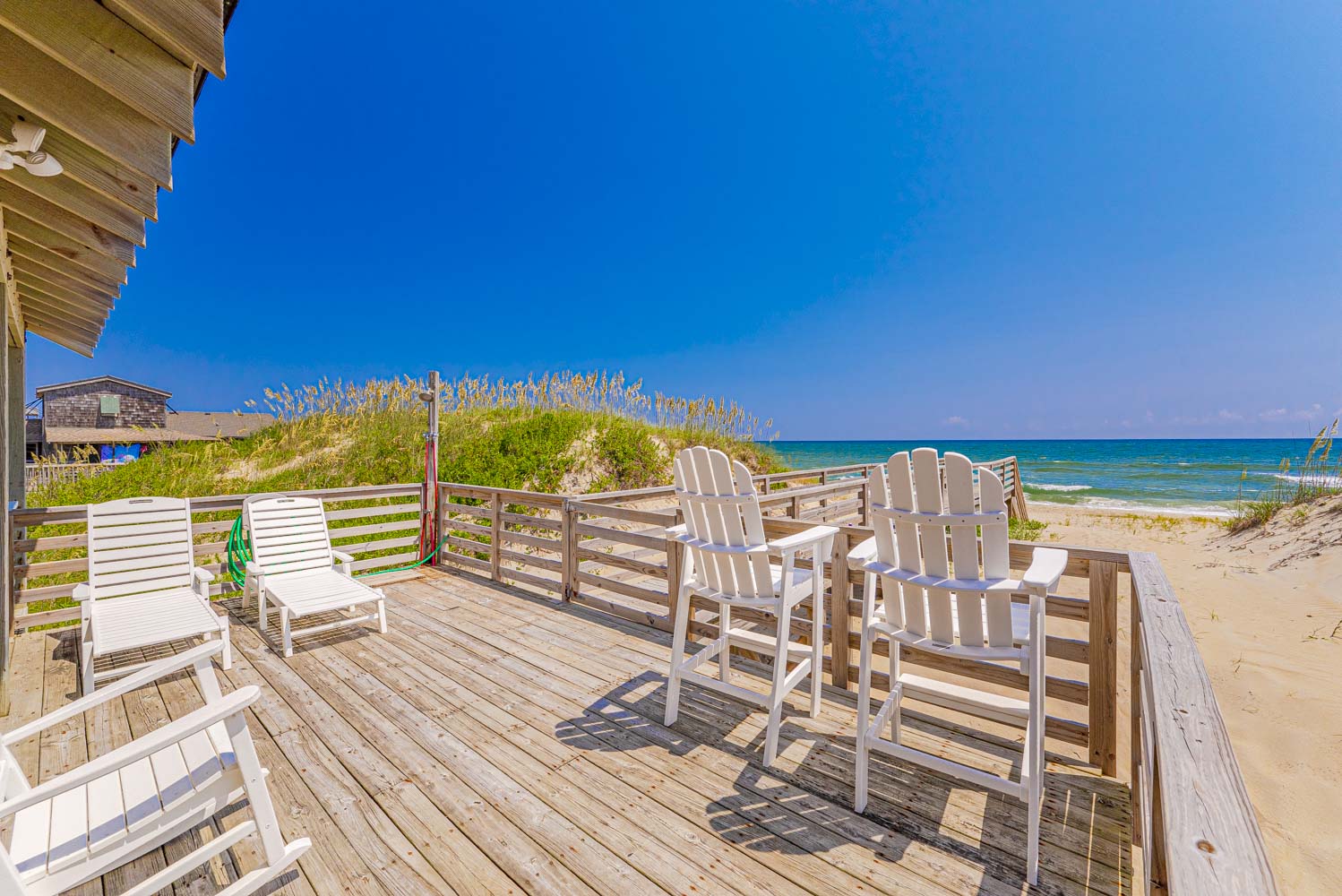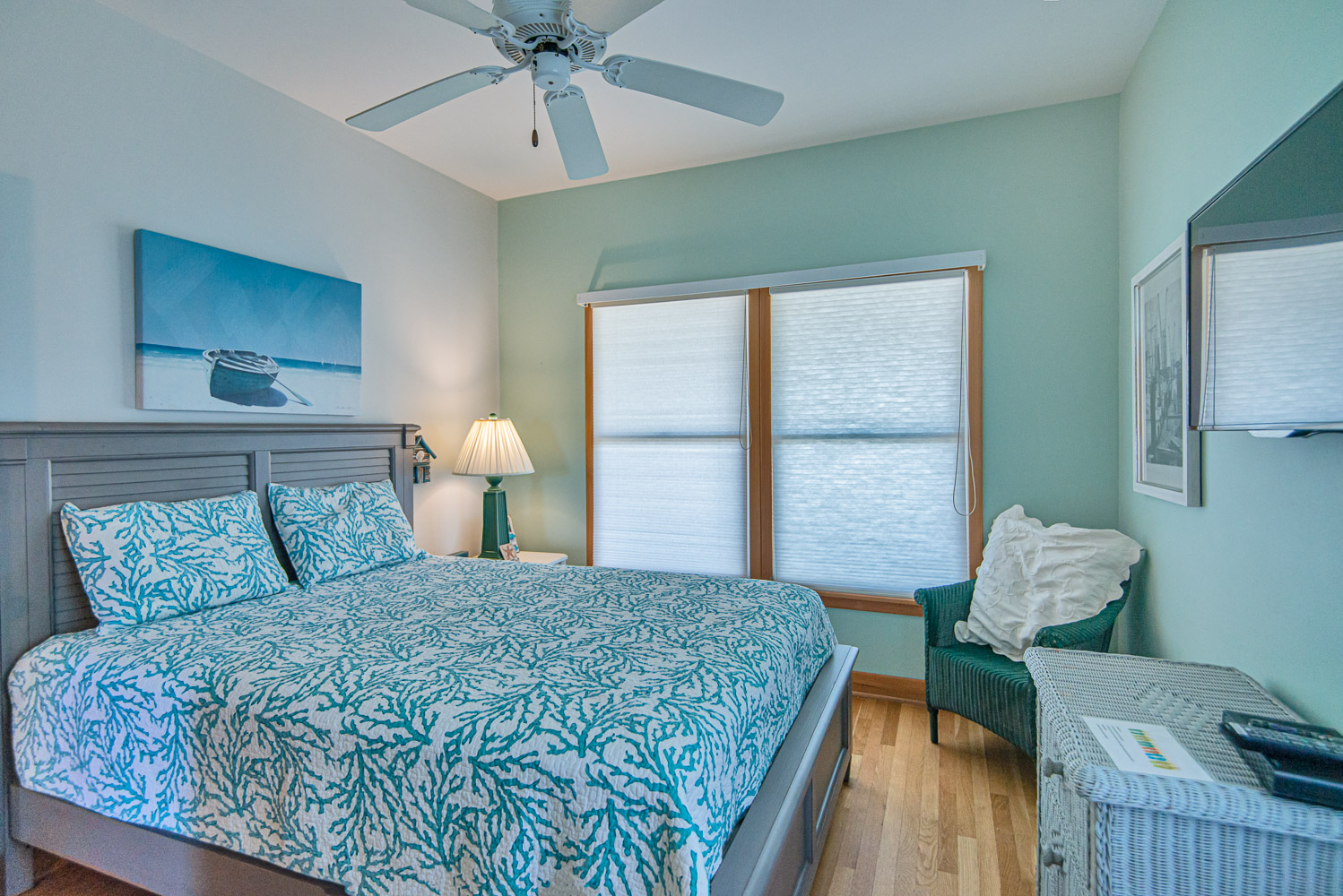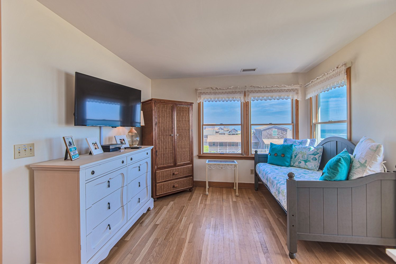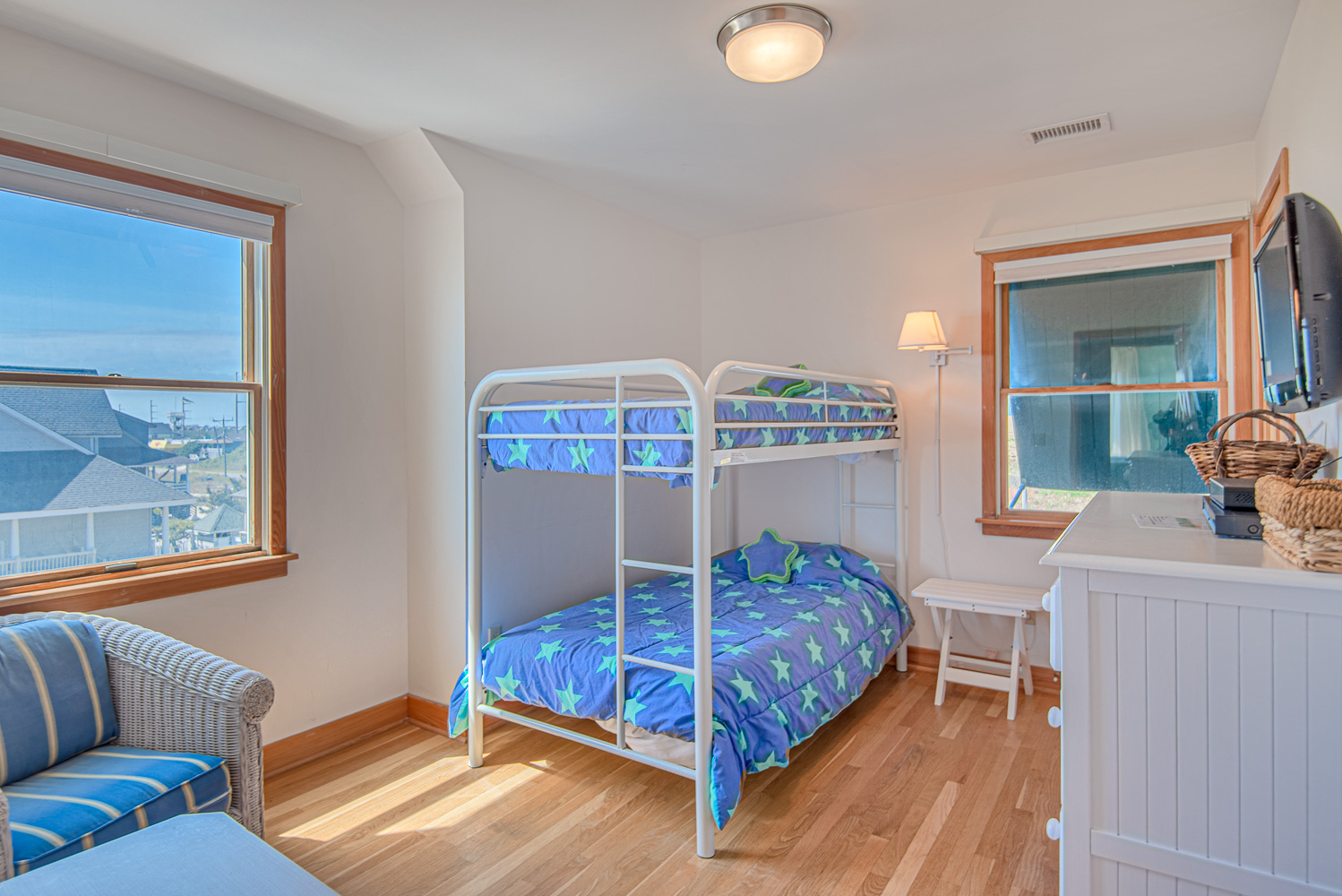 Top Level: 5 Bedrooms (Private Oceanfront Suite w/King, Daybed, TV Sitting Area, Full Bath w/Tub, Shower Stall, Private Oceanfront Deck w/Ocean Views; Oceanfront Private Suite w/King, TV, Full Bath w/Walk-In Shower, Semi-Private Deck, Ocean Views; 1 w/Queen, TV, Semi-Oceanfront Private Deck; 1 w/Duo Bunk Set, TV; Private Suite w/King, TV, Refrigerator, Microwave, Full Bath w/Tub/Shower) and Full Hall Bath w/Tub/Shower;.