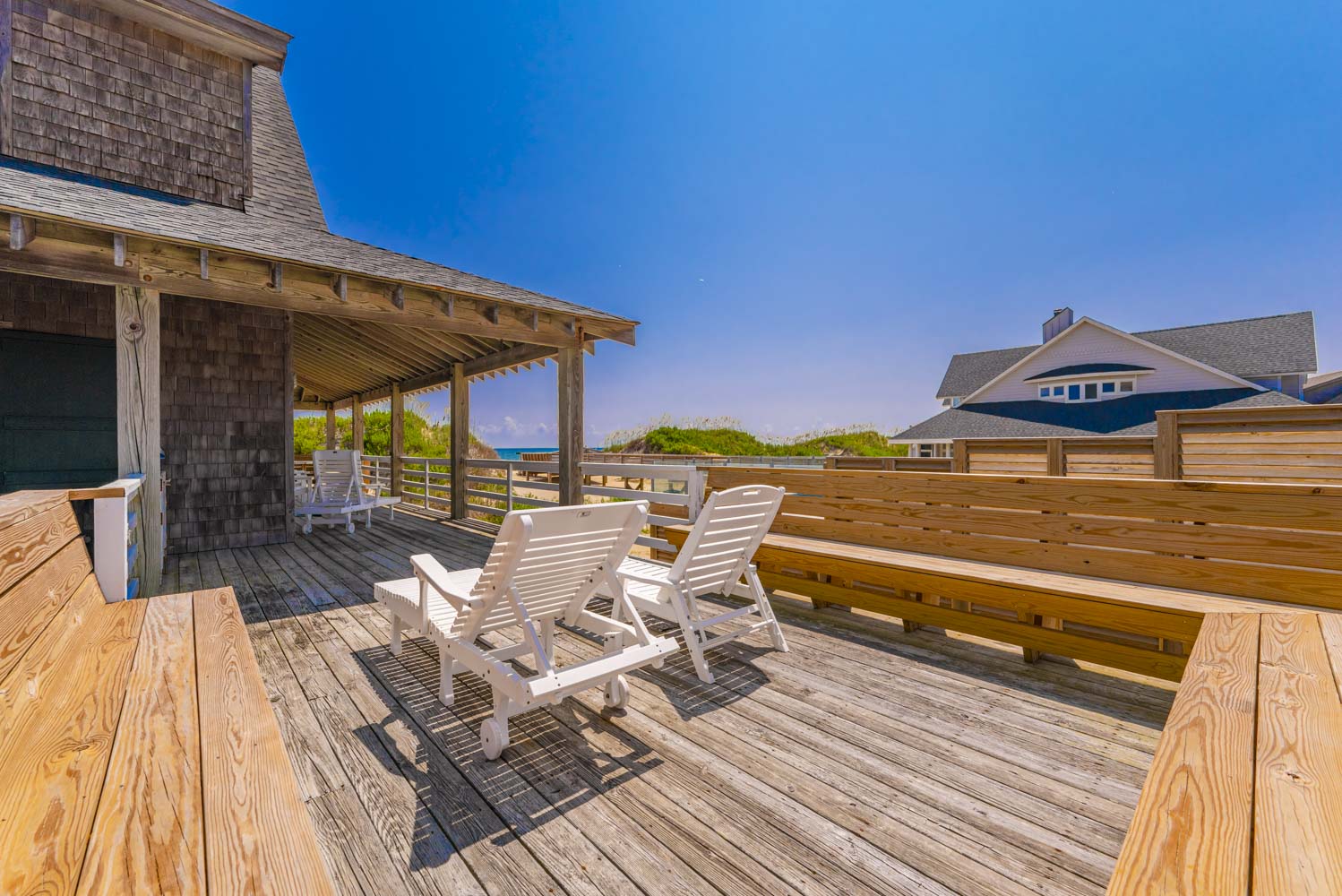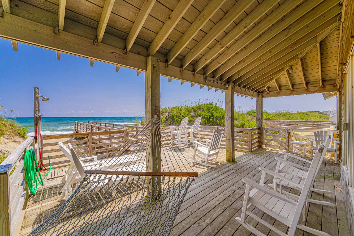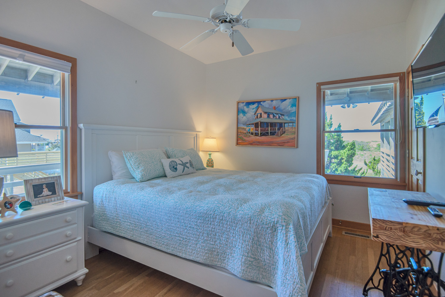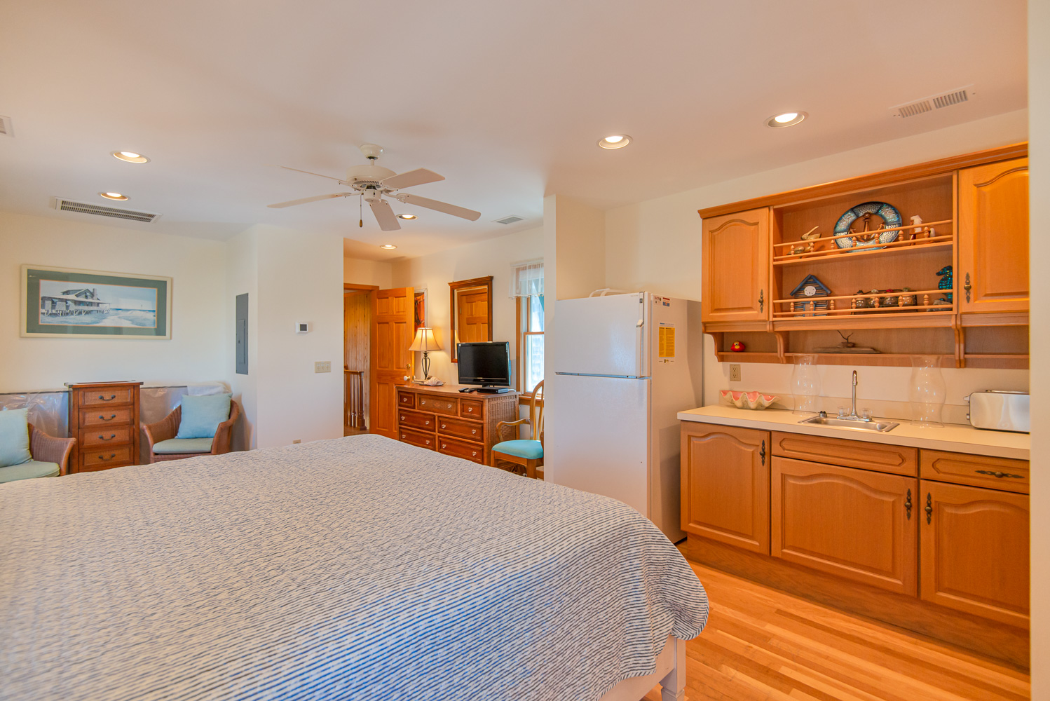 Top Level: 5 Bedrooms (Private Oceanfront Suite w/King, Daybed, TV Sitting Area, Full Bath w/Tub, Shower Stall, Private Oceanfront Deck w/Ocean Views; Oceanfront Private Suite w/King, TV, Full Bath w/Walk-In Shower, Semi-Private Deck, Ocean Views; 1 w/Queen, TV, Semi-Oceanfront Private Deck; 1 w/Duo Bunk Set, TV; Private Suite w/King, TV, Refrigerator, Microwave, Full Bath w/Tub/Shower) and Full Hall Bath w/Tub/Shower;.