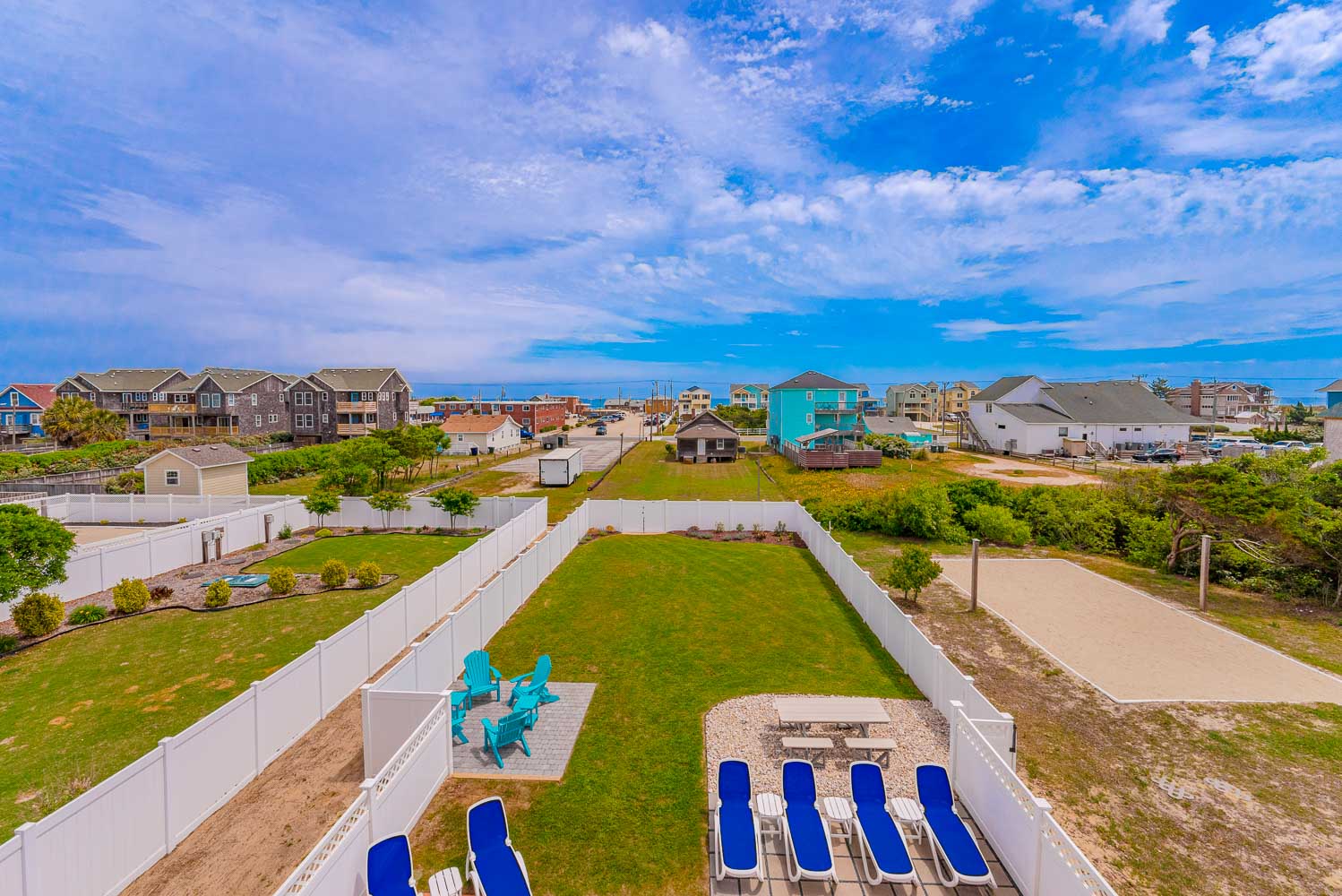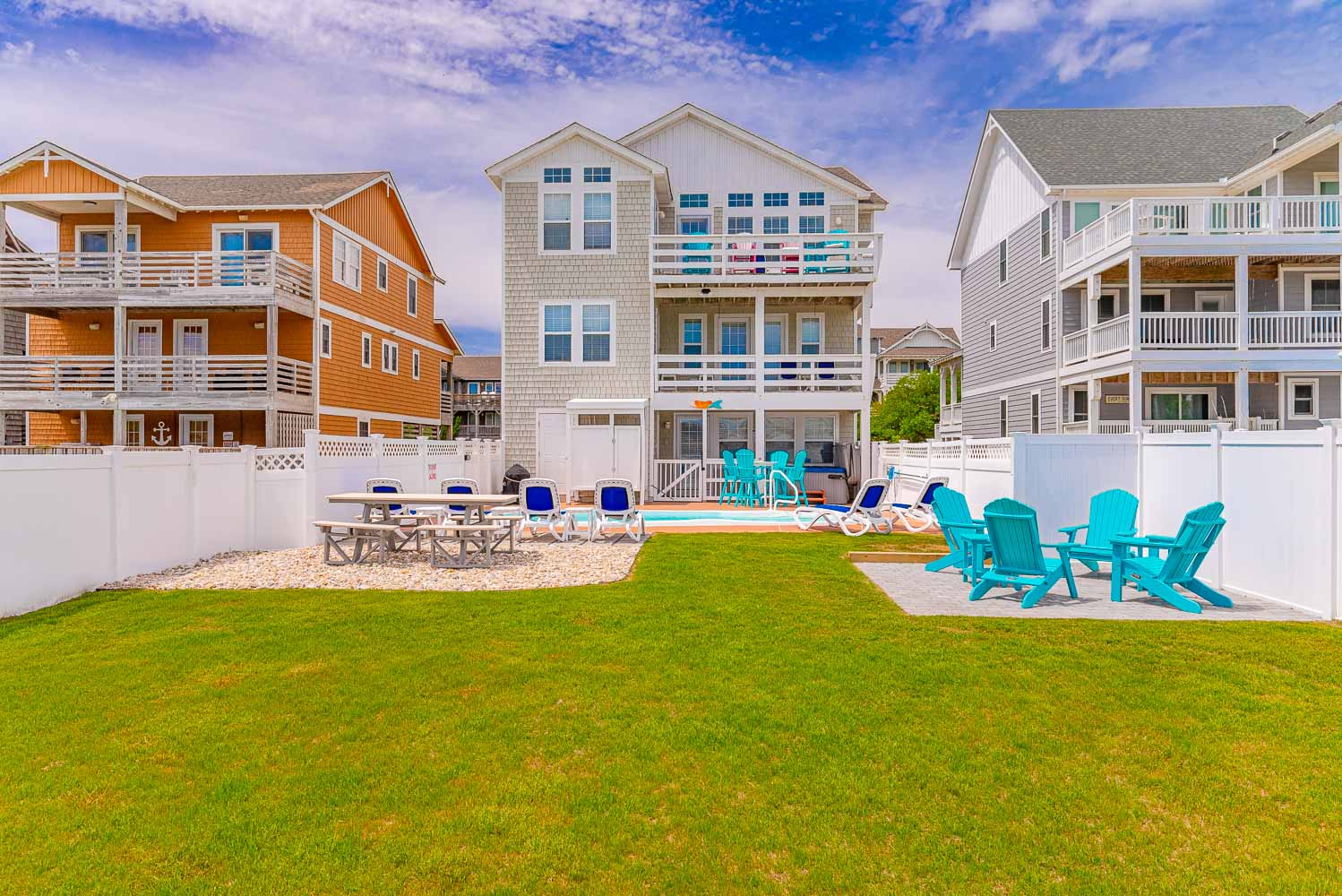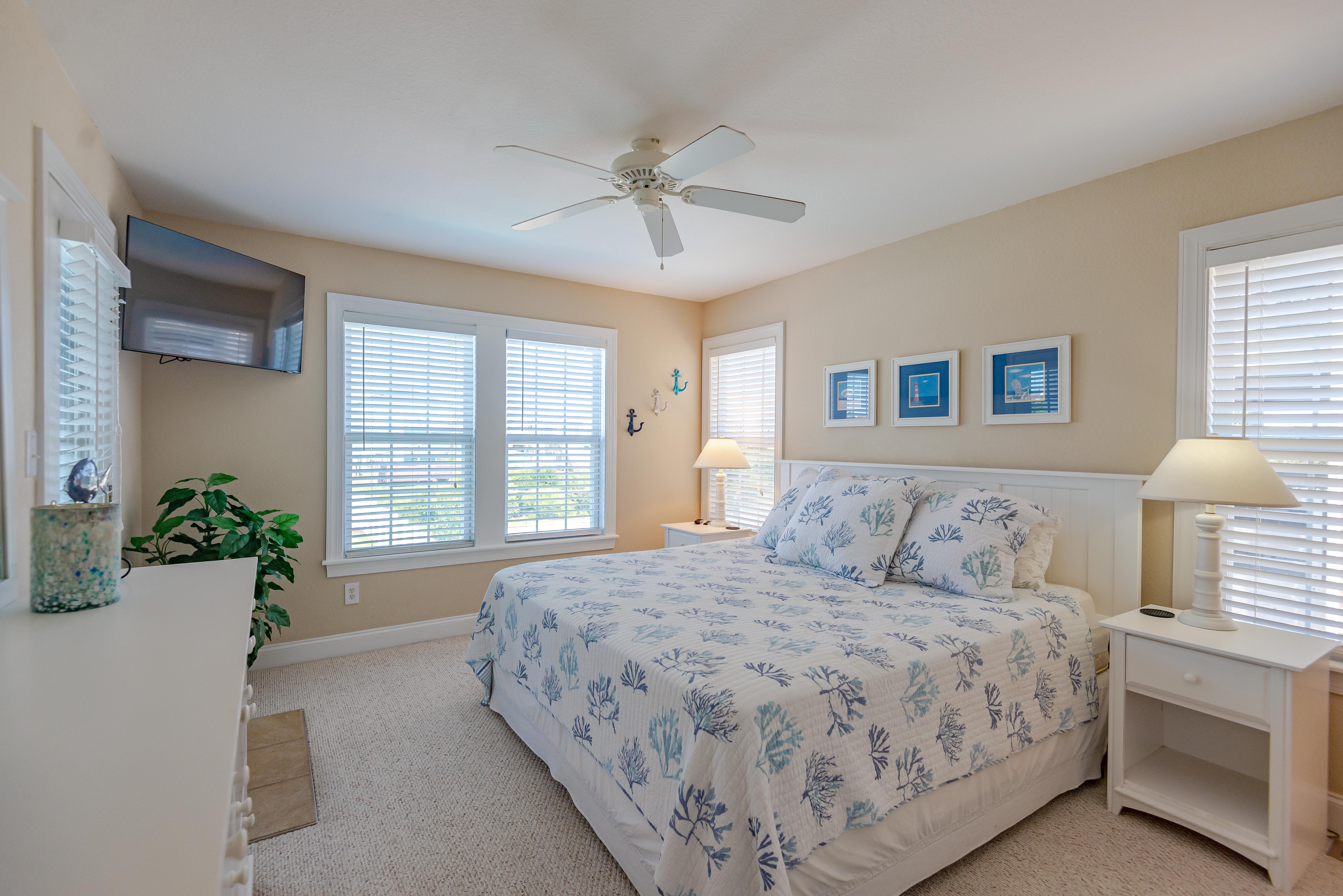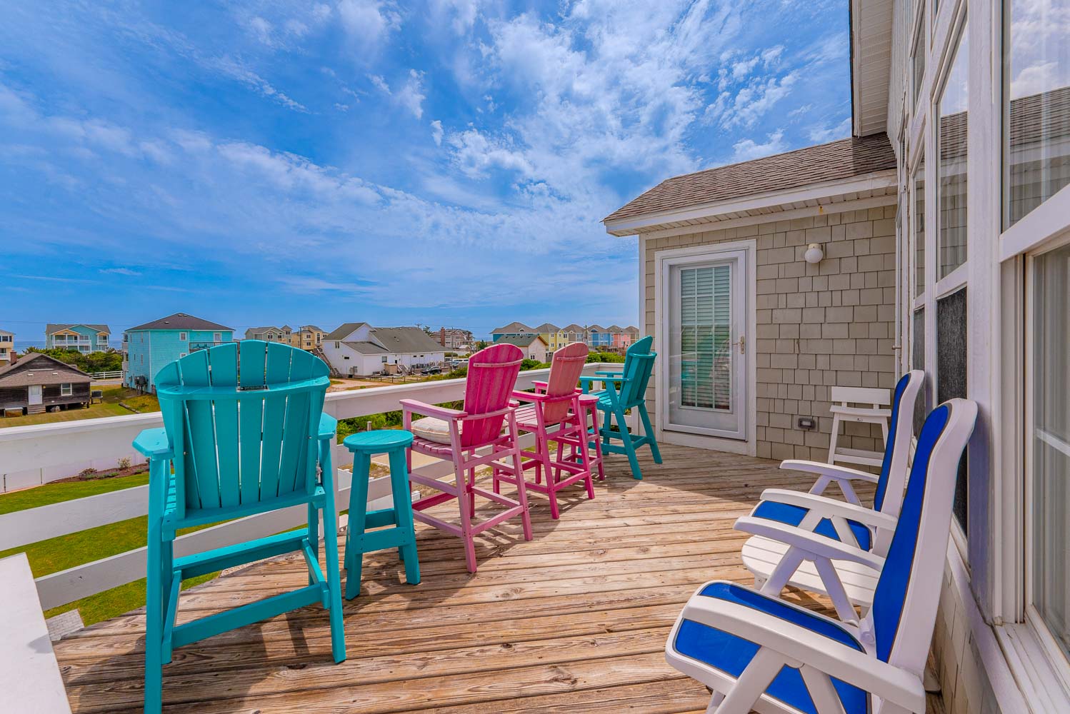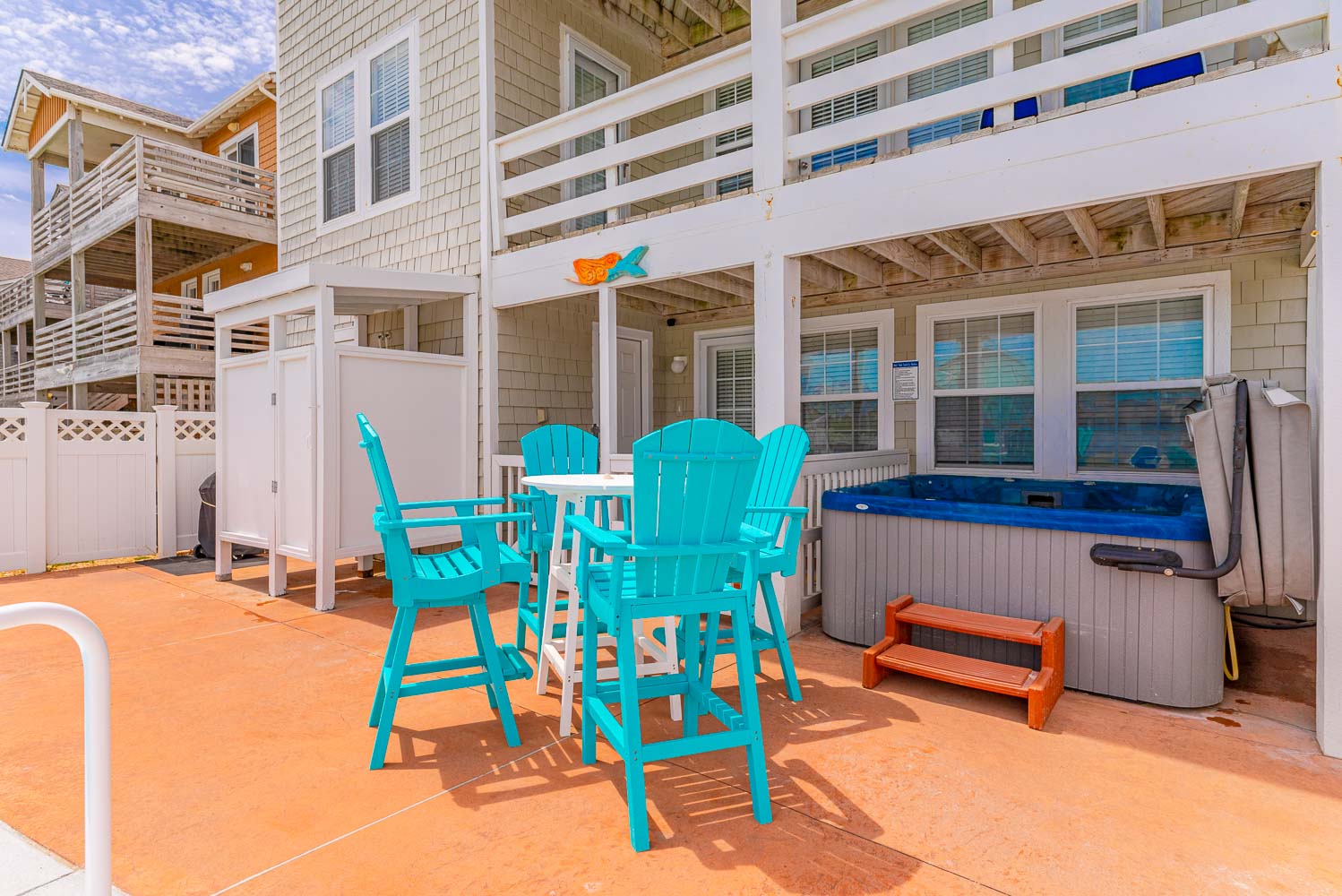 Top Level: Living/Dining/Kitchen, Unique Bar Surrounding Kitchen, TV, DVD, Gas Fireplace, Half Bath, Ocean Views, Grand Private Suite w/King, TV, Full Bath w/Jacuzzi, and Access to Sun Deck w/Furniture Overlooking Back Yard & Pool Area.