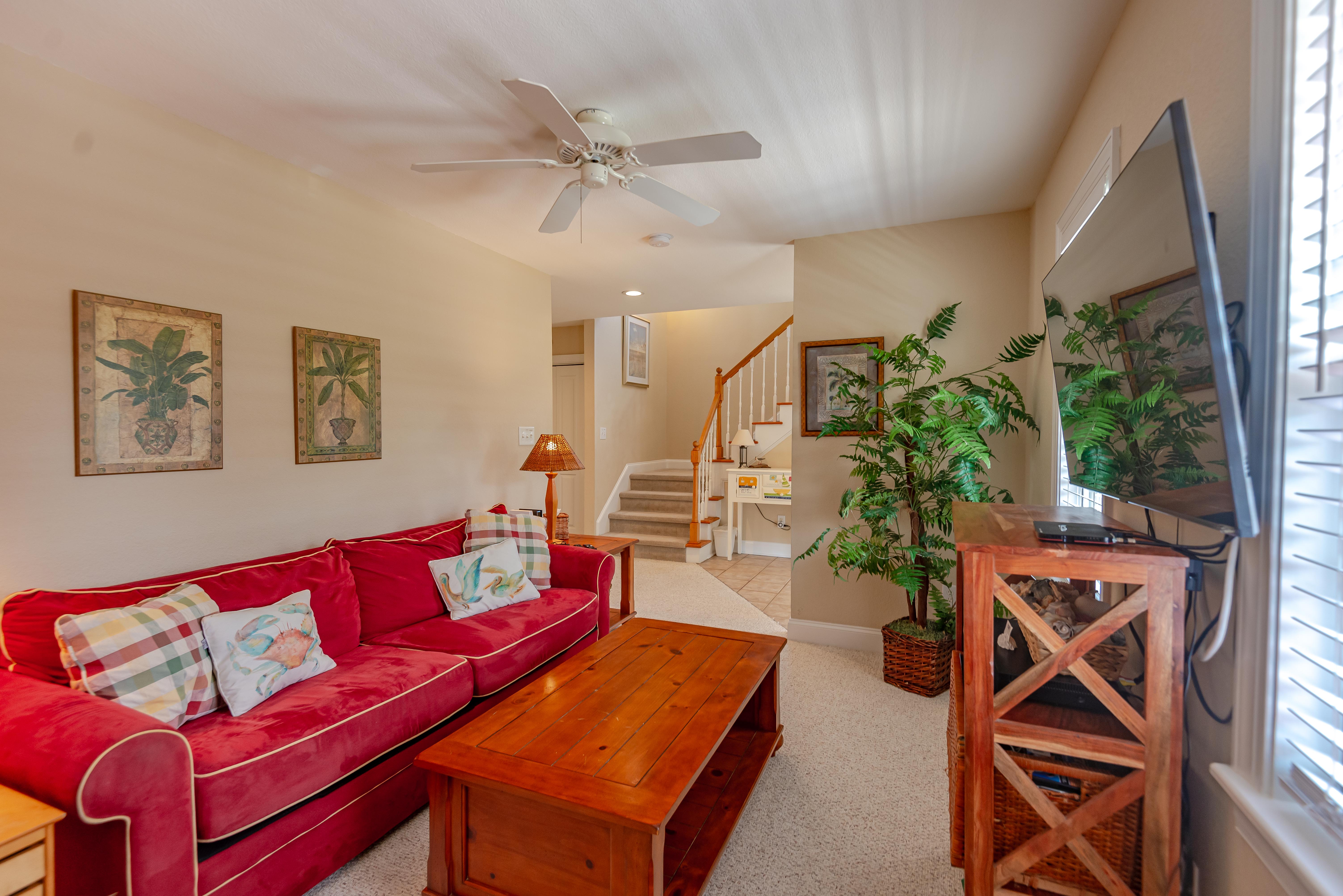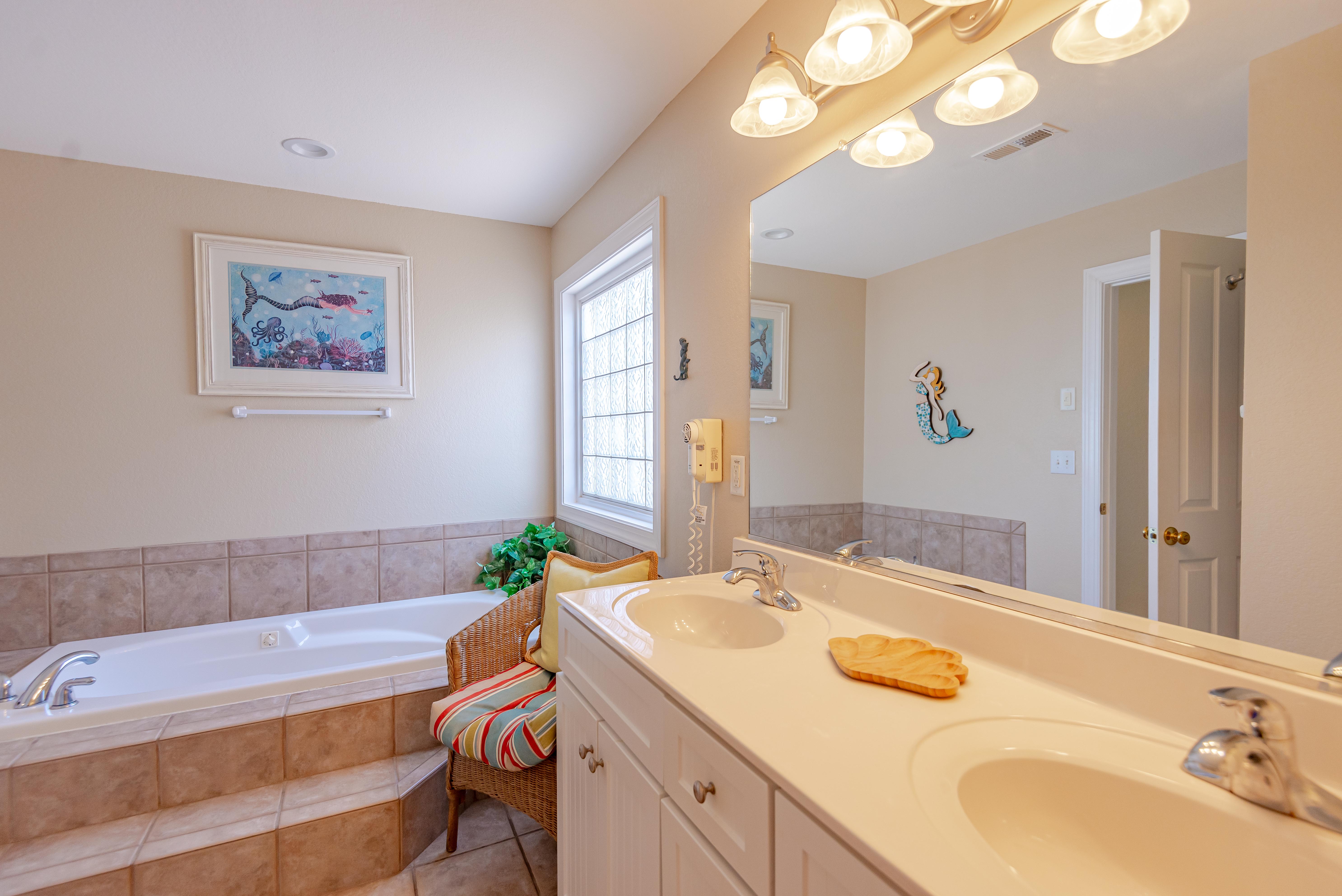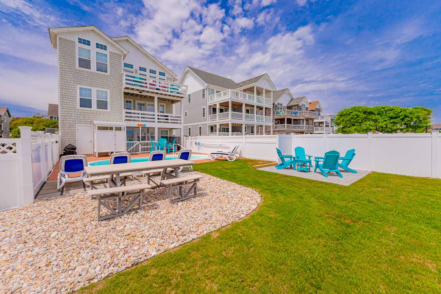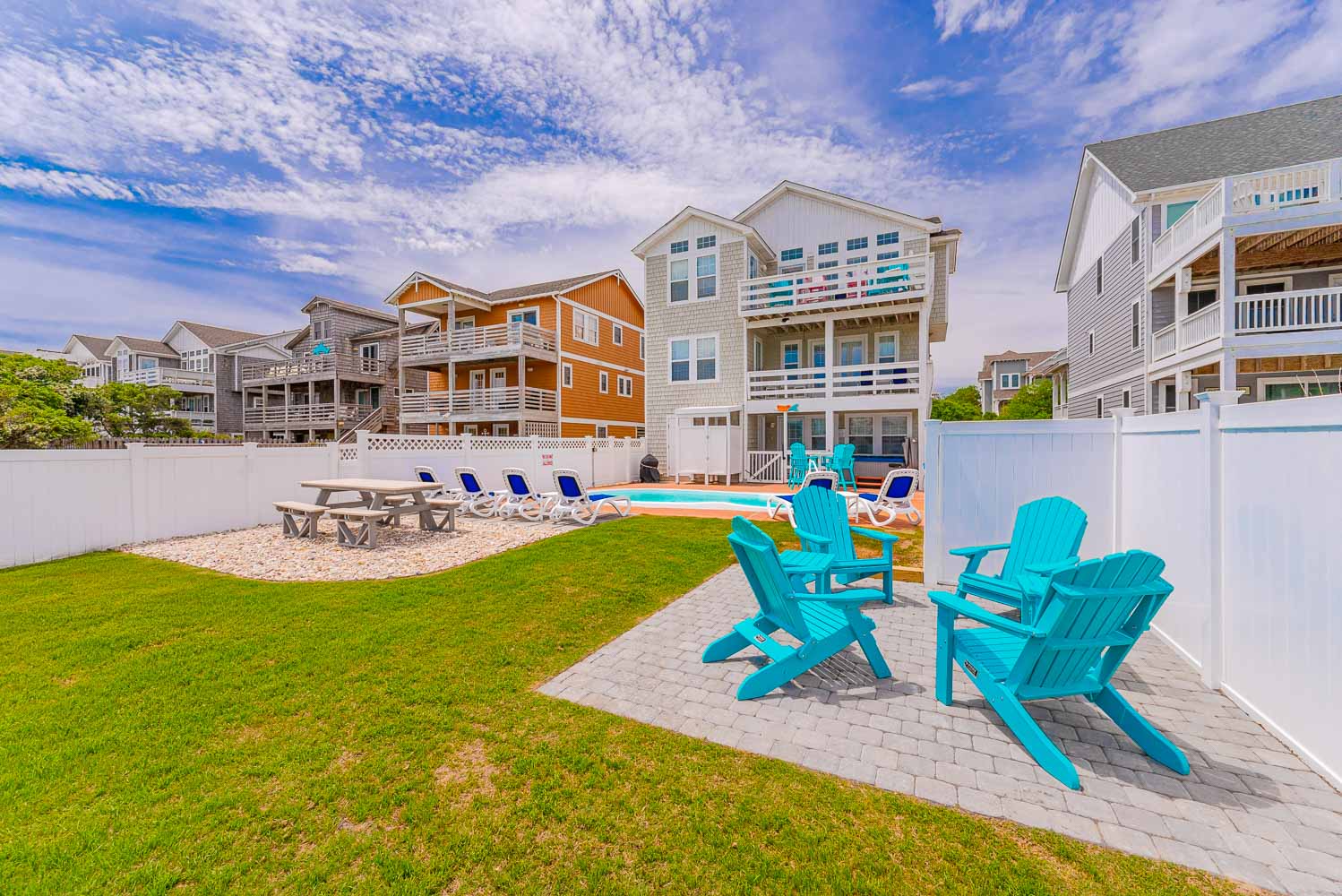 Top Level: Living/Dining/Kitchen, Unique Bar Surrounding Kitchen, TV, DVD, Gas Fireplace, Half Bath, Ocean Views, Grand Private Suite w/King, TV, Full Bath w/Jacuzzi, and Access to Sun Deck w/Furniture Overlooking Back Yard & Pool Area.