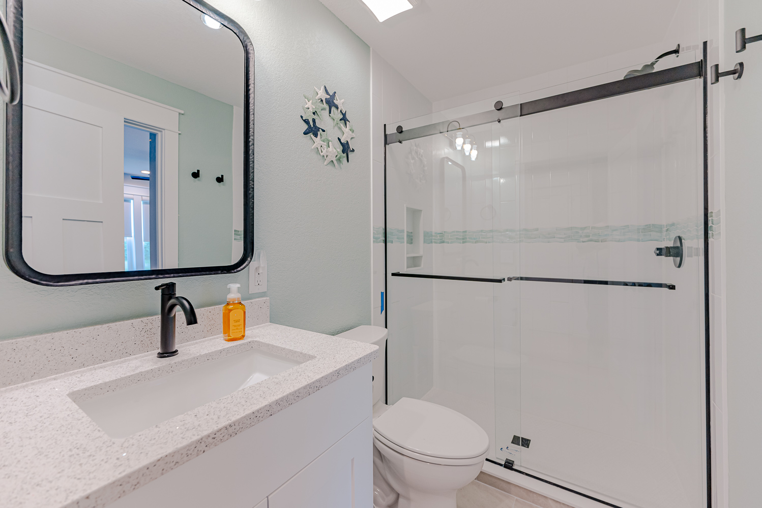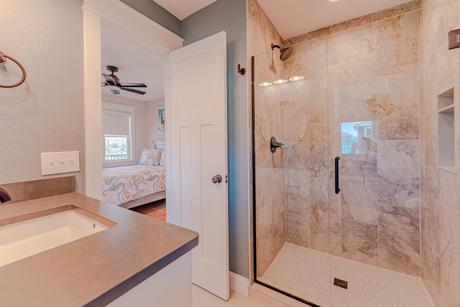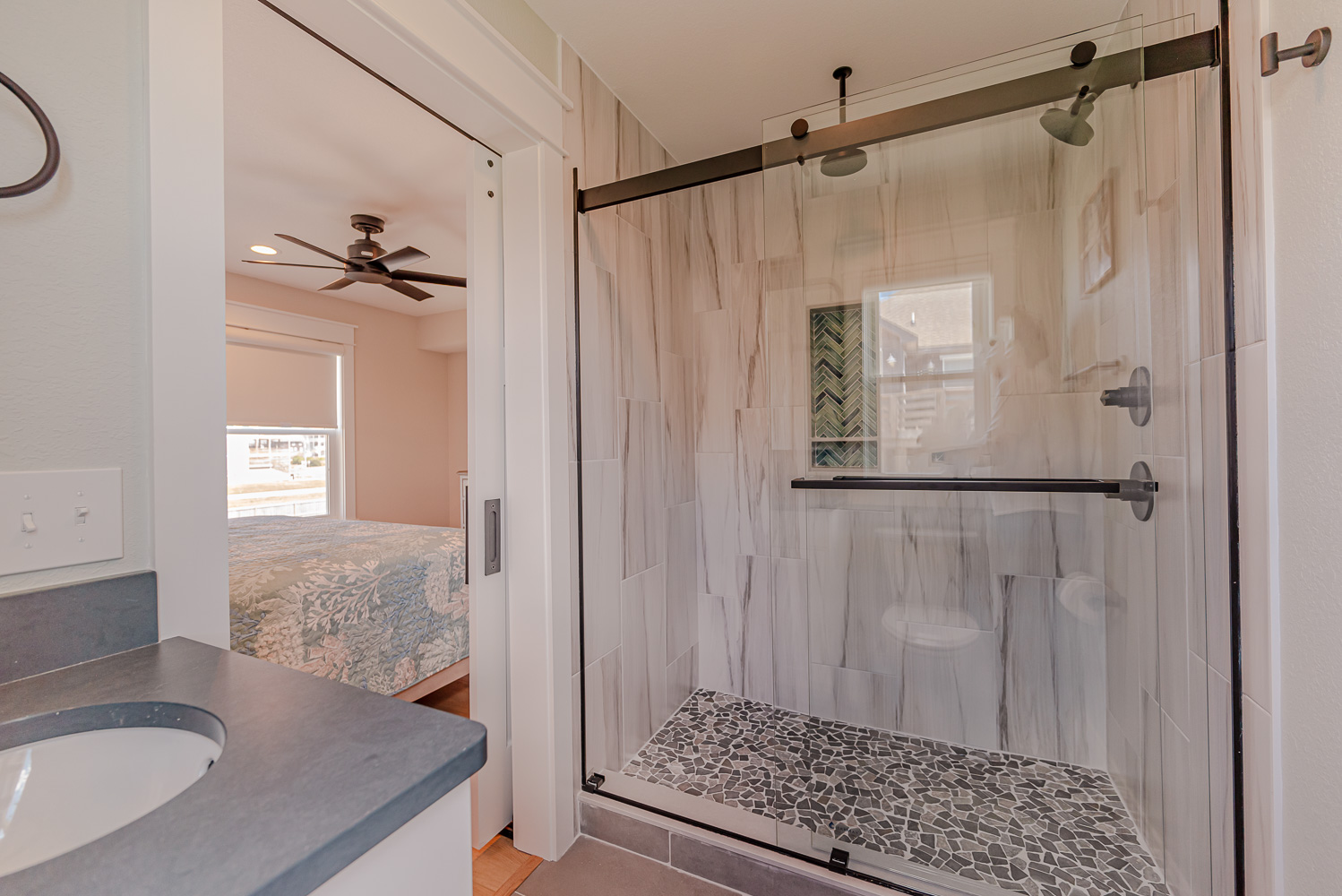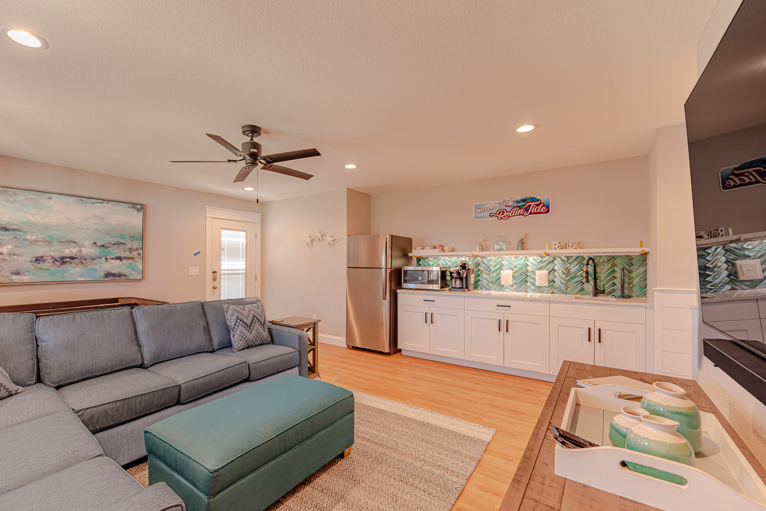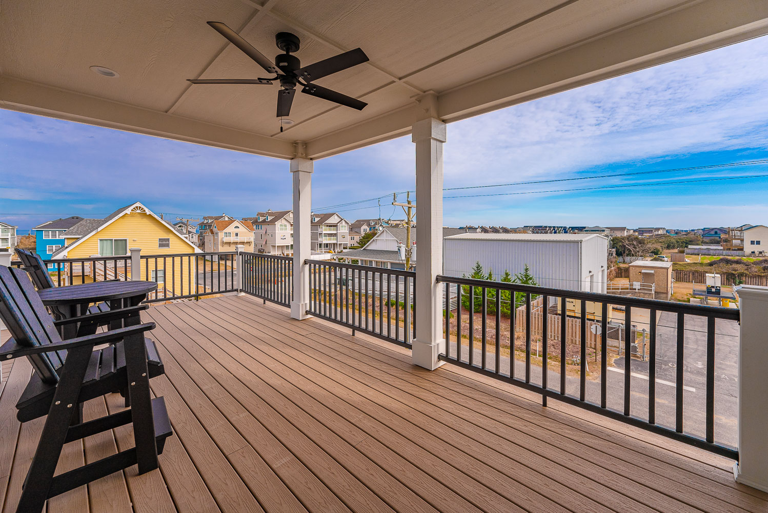 Top Level: Spacious Living Area w/TV, Access to Large Sun Deck, Well Equipped Kitchen, 2 Dishwashers, Island Bar Seating for Five (5), Dining Area, Seating for Ten (10), Horizon Ocean Views, Half Bath, Covered Deck w/Deck Furniture, Sun Deck w/Deck Furniture, Private Suite w/King, TV, and Full Bath w/ Walk-In Shower.