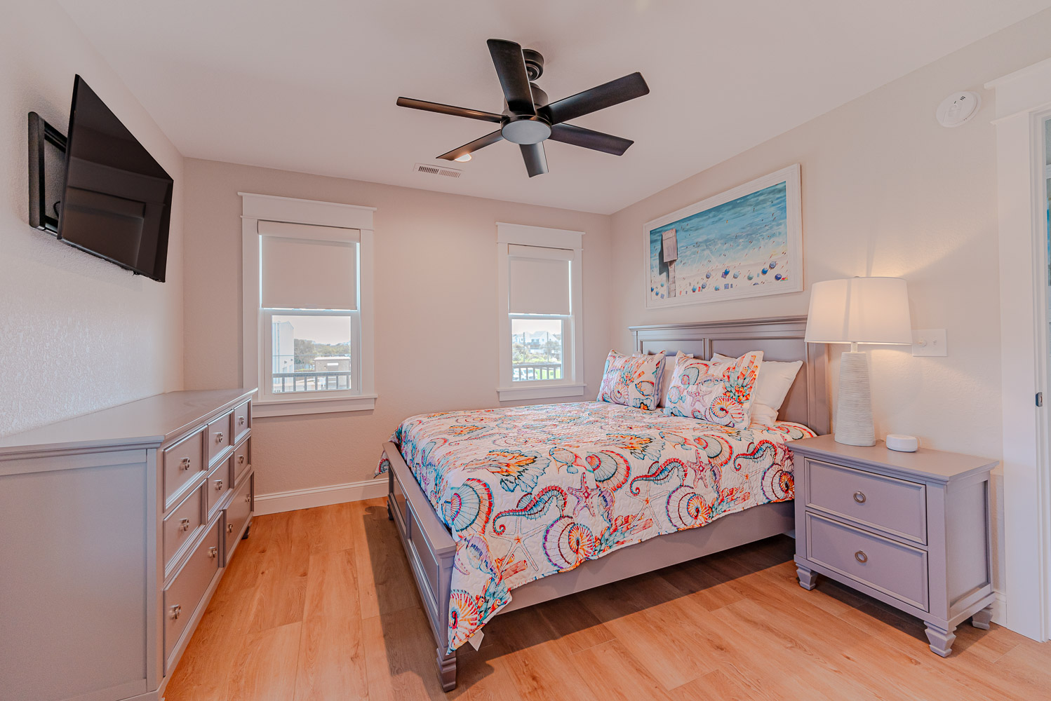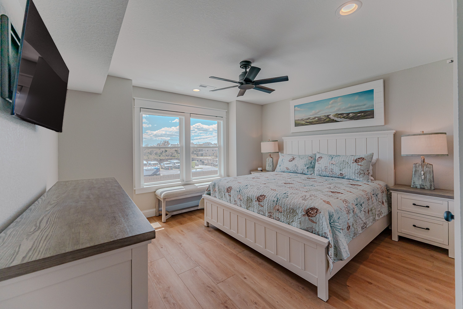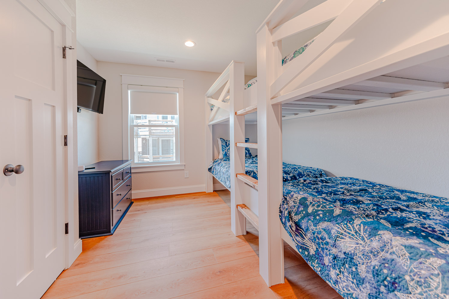 Mid Level: 4 Bedrooms (Private Suite w/King, TV, Full Bath w/ Walk-In Shower; Private Suite w/Queen, TV, Walk-In Shower, Access to Covered Deck; Private Suite w/King, TV, Full Bath, Private Suite w/2 Bunk Sets, TV, Full Bath), and Access to Covered Deck.