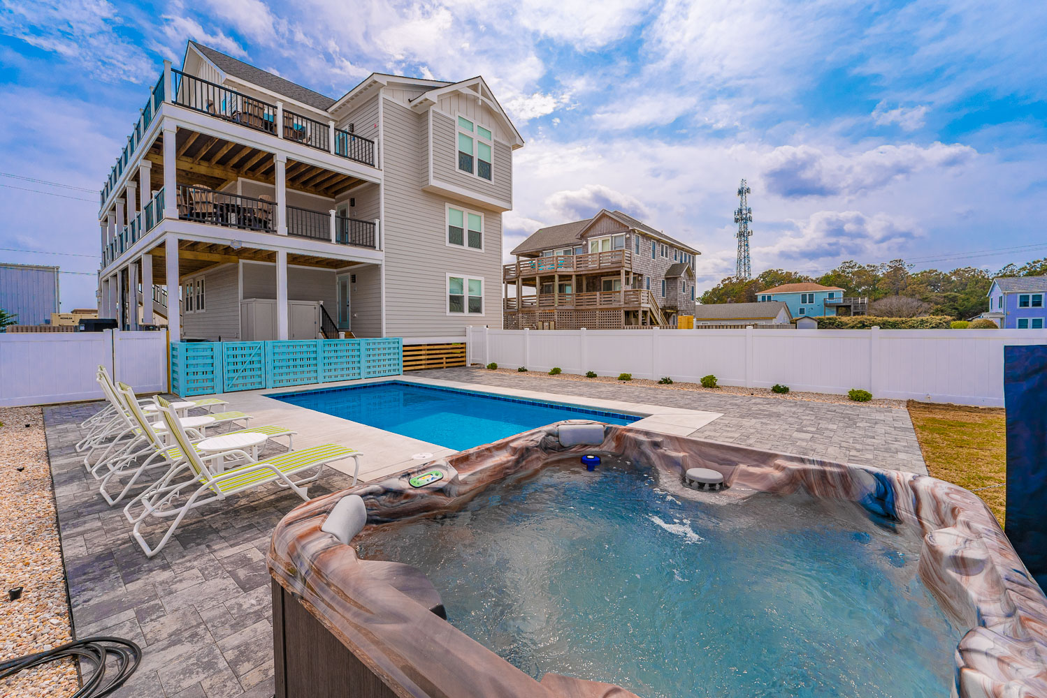 Spend your days splashing in the private pool, relaxing in the hot tub, or building sandcastles on the beach. The fully fenced backyard gives kids space to play, and the mix of covered and open decks offers plenty of room for everyone to unwind.
