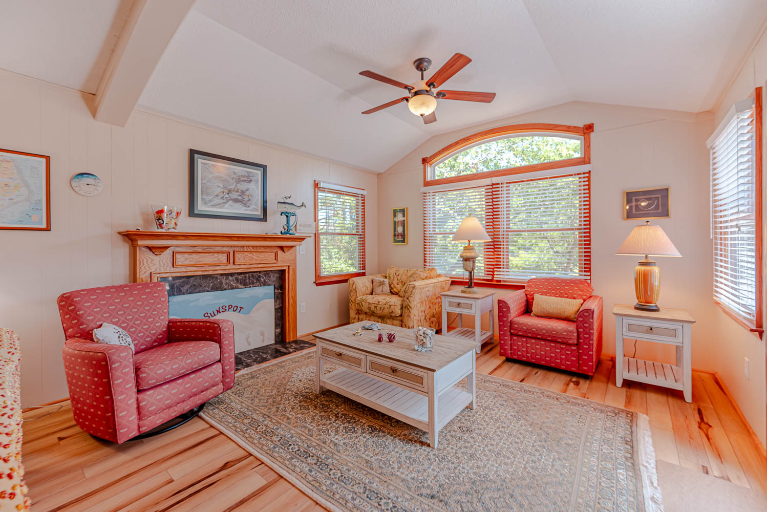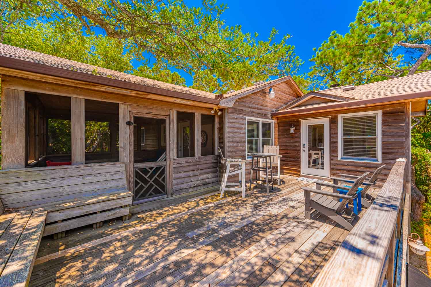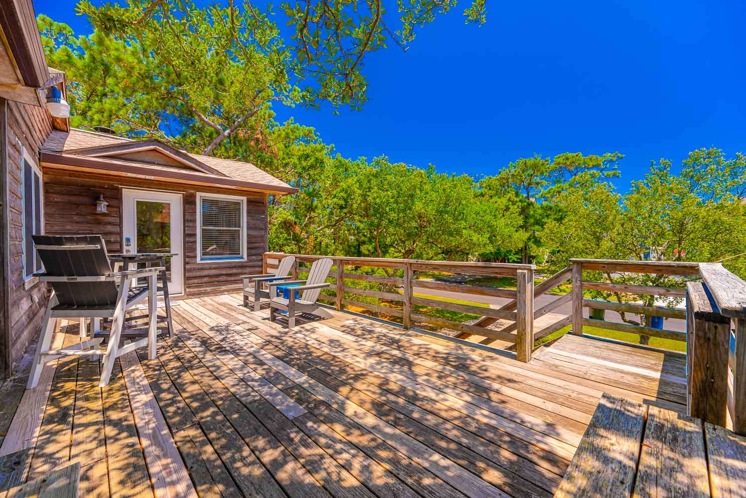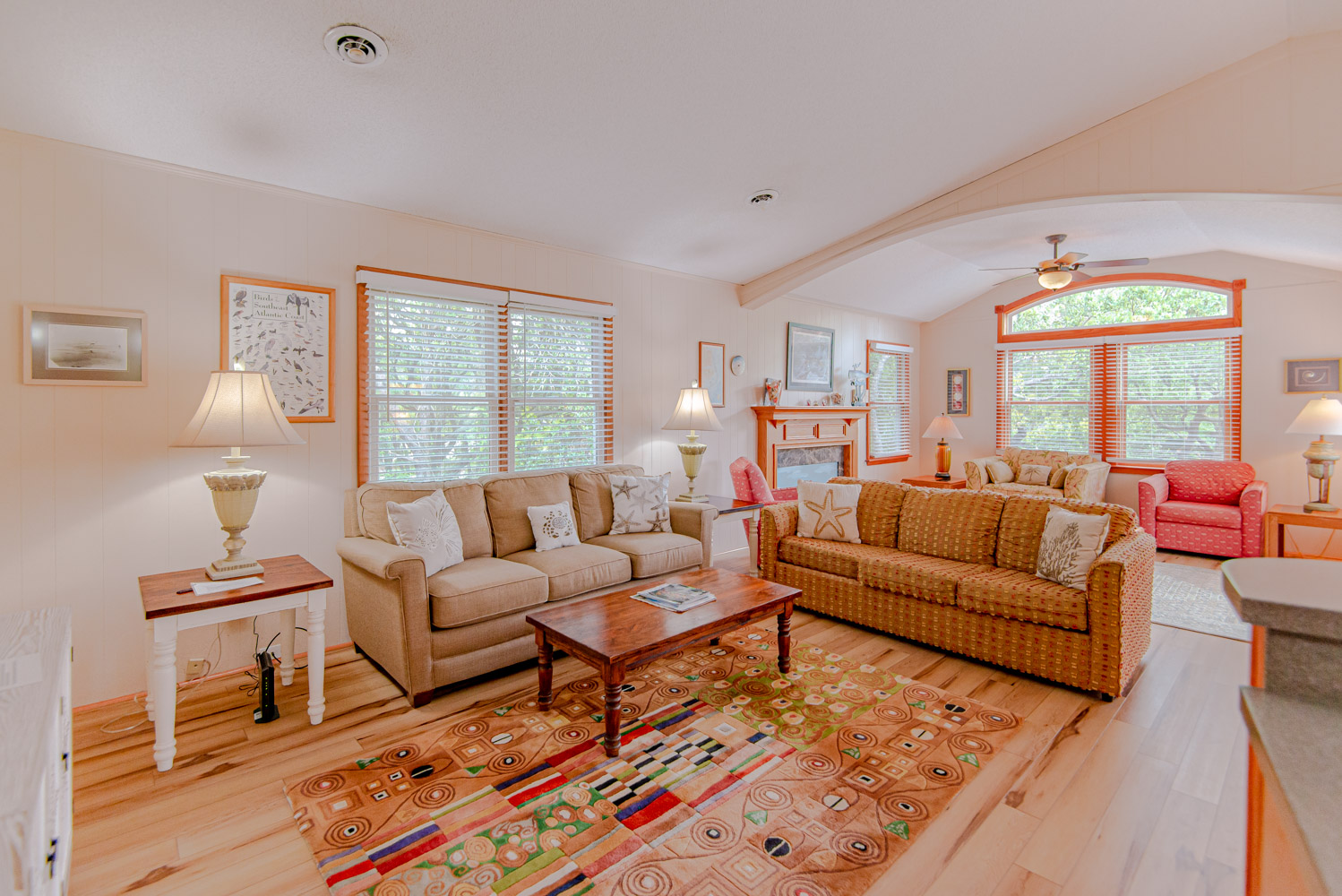 Main Level: Spacious Living Area, Flat Screen TV, Streaming Apps, Queen Sleep Sofa, Dining Area w/Seating for Six (6), Kitchen Area w/Island Bar Seating for Three (3), 3 Bedrooms (Private Suite w/King, TV, Full Bath w/Custom Walk-in Shower w/4 Inch Step, 1 w/Queen, 1 w/2 Singles), Full Hall Bath w/Tub/Shower, Screen Porch w/Picnic Table, Large Sun Deck w/Built-In Benches and Safety Gate for Children.