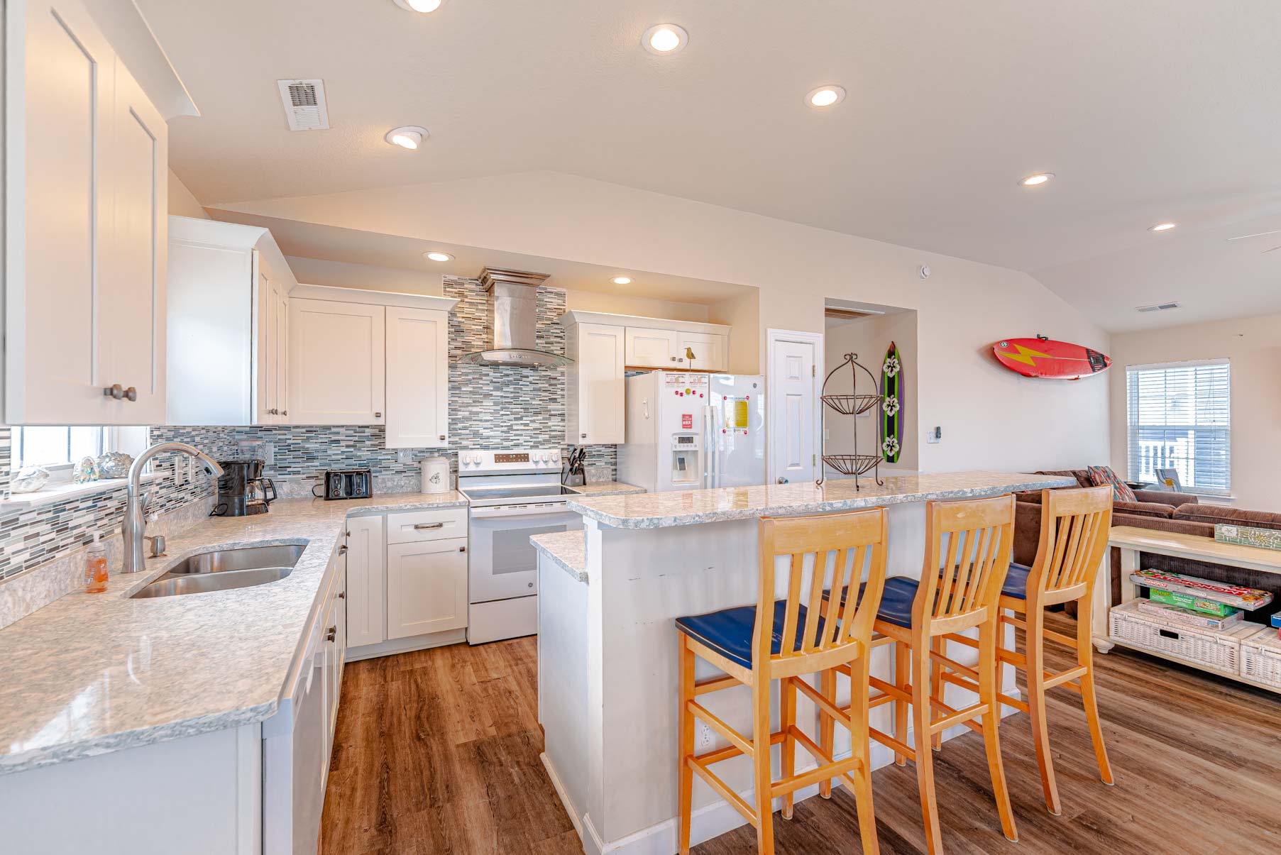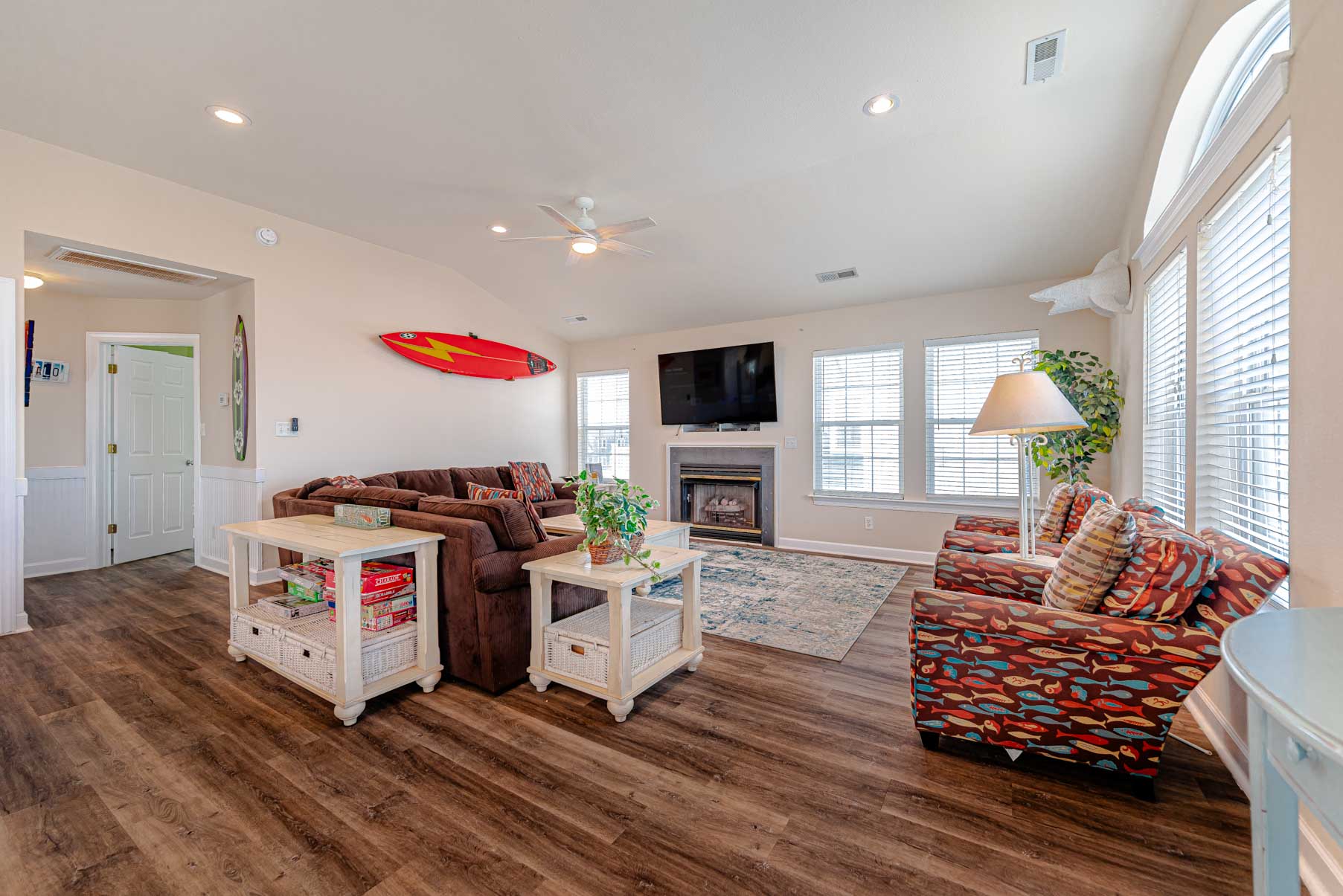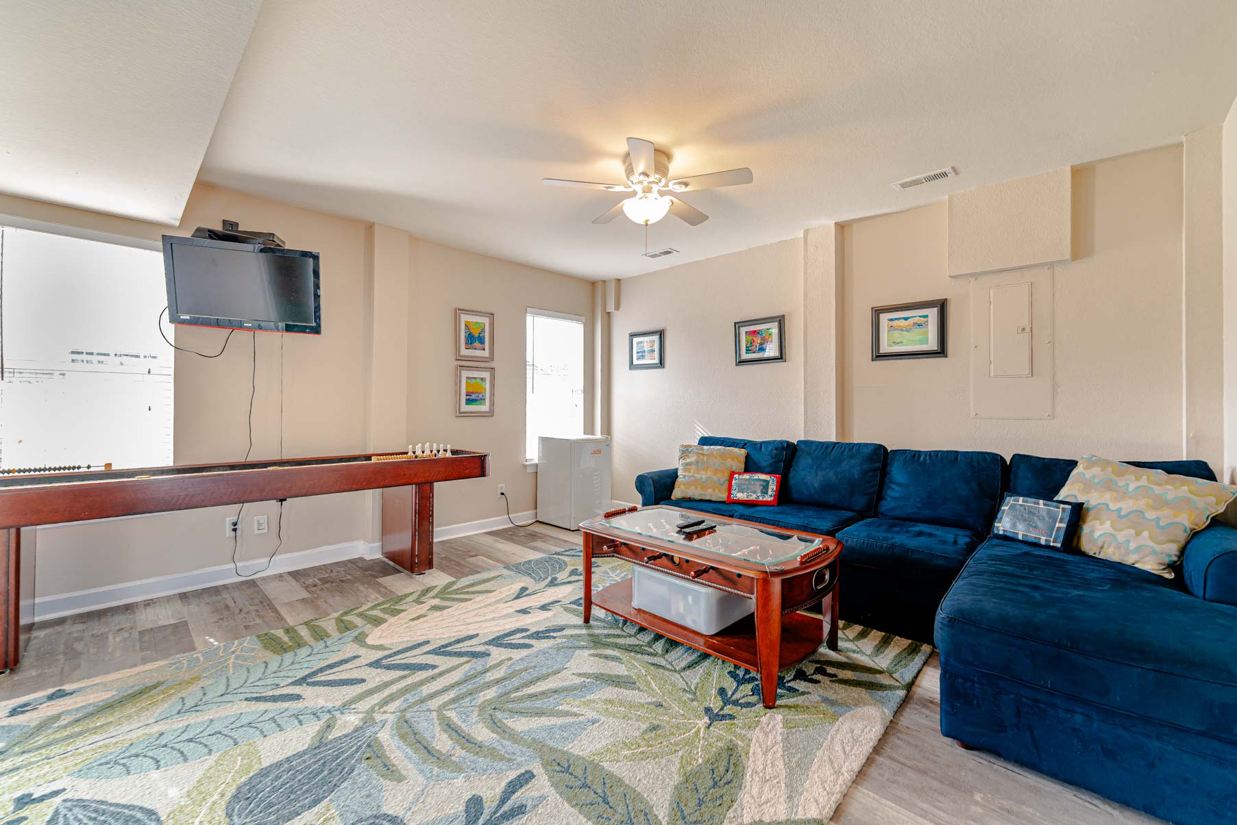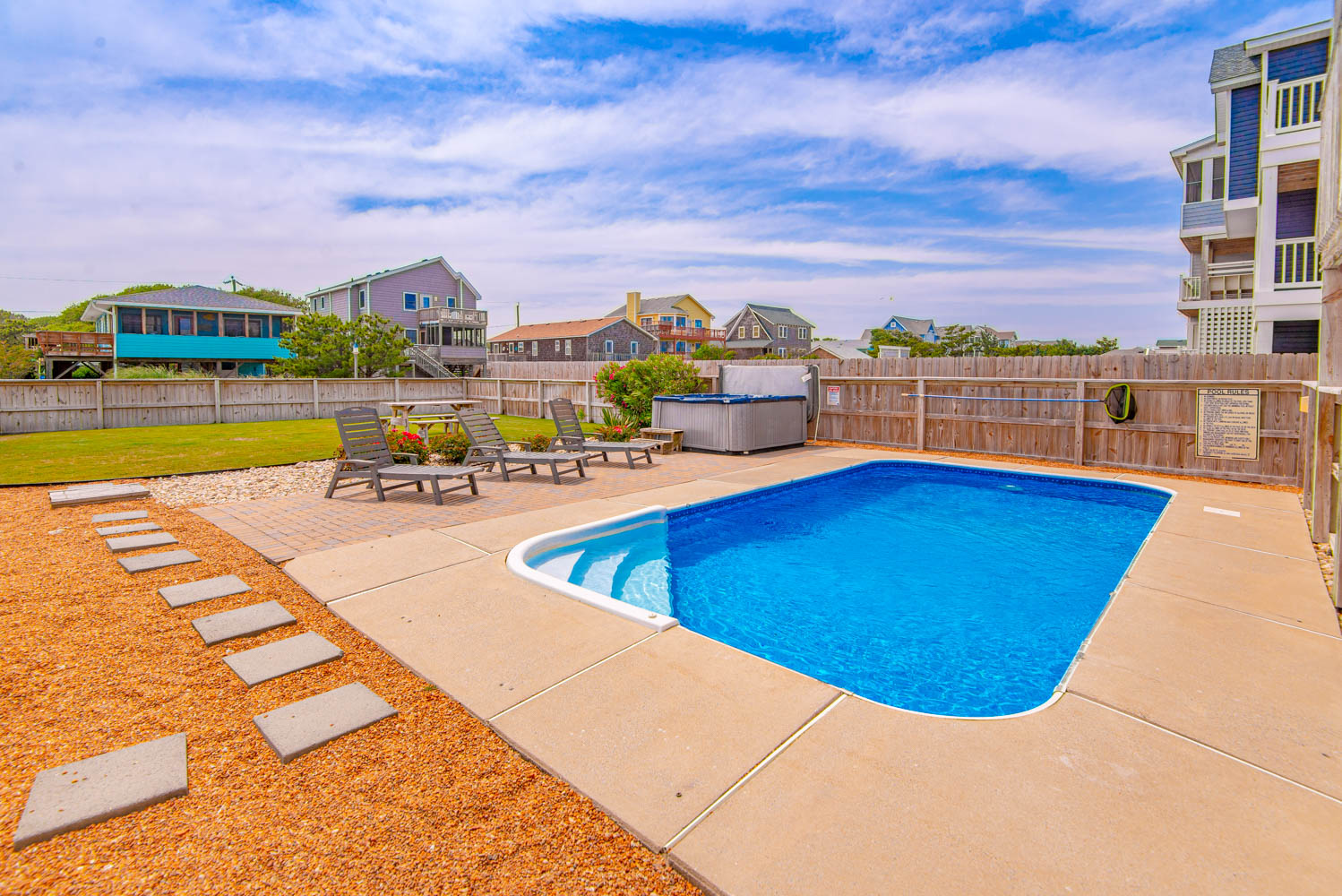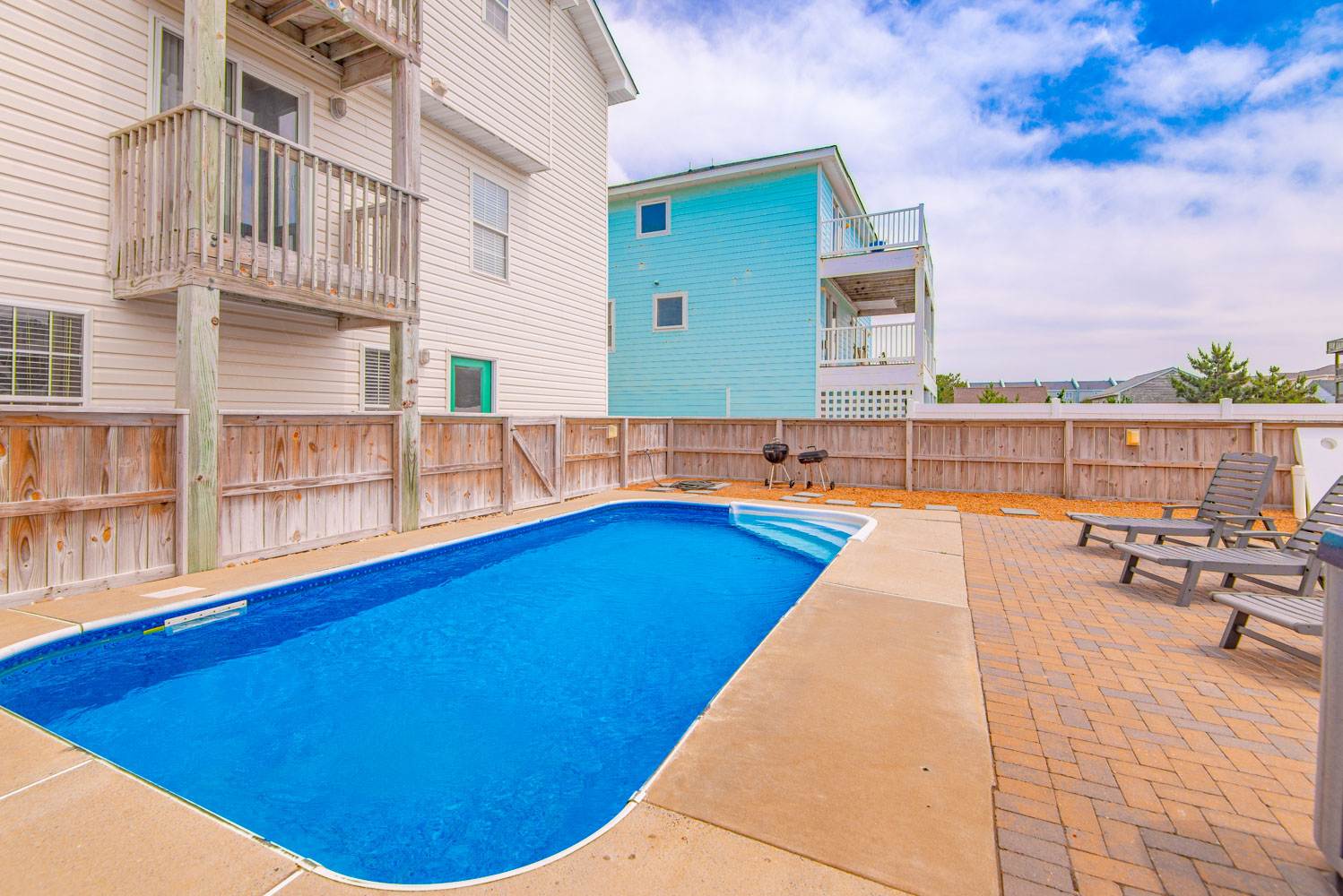 Ground Level: Parking for 4 Cars, Covered Entry, Rec. Room, Shuffle Board, Flat Screen TV, Full Bath w/Tiled Shower, Bedroom w/2 Bunk Sets, Access to Pool Patio Area, Hot Tub, Private Heated Swimming Pool - Open Seasonally (Heated at No Charge March 28 to October 17, 2026 - Please Bear in Mind That Pool Temperature is Subject to Outside Temperatures and Conditions) , and Weber Grill.