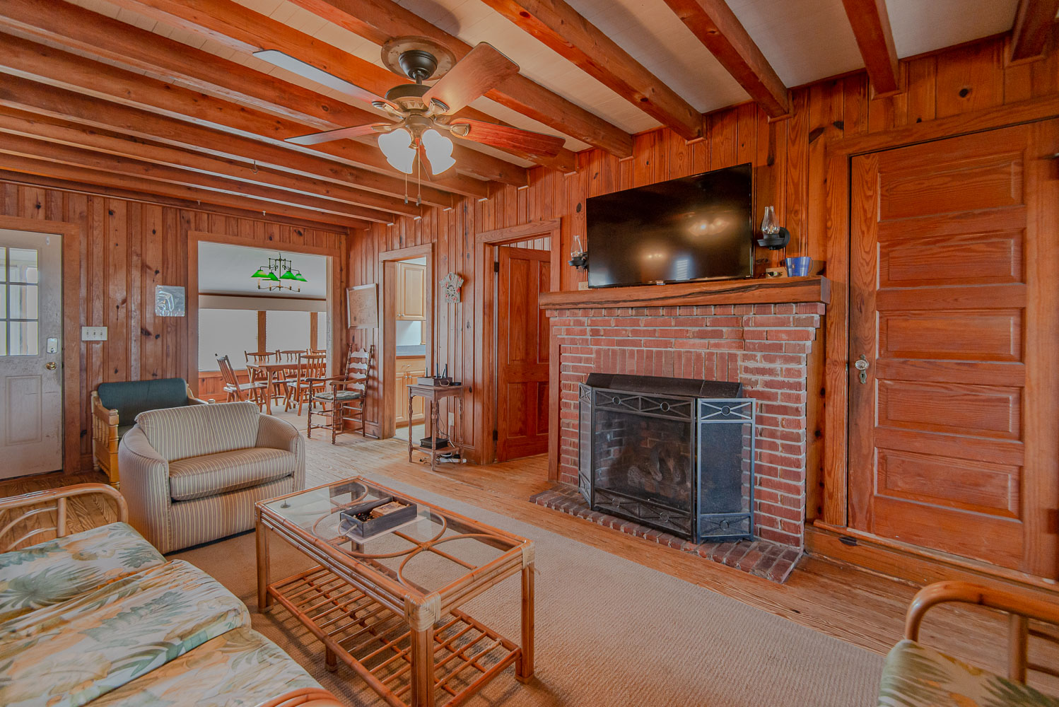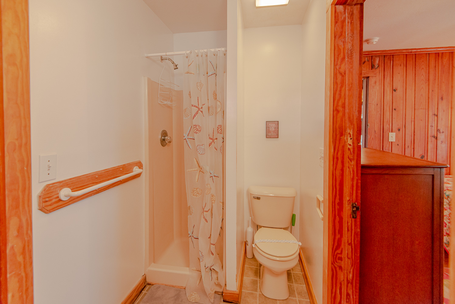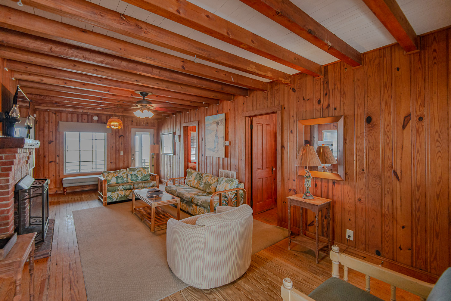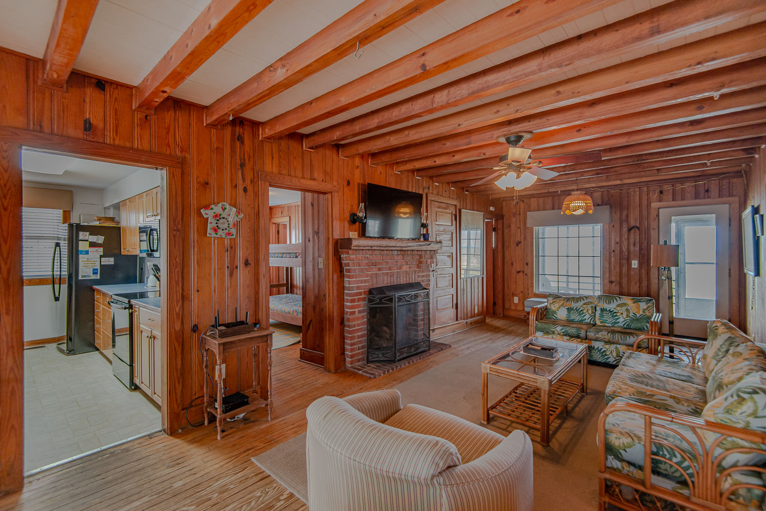 Mid Level: Warm & Inviting Living Area w/TV, Pine Walls & Floors, Gas Fireplace, & Great Ocean Views, Kitchen & Large Dining Room, 4 Bedrooms (1 w/Queen, 1 w/2 Singles, 1 w/Bunk Set, & 1 w/2 Singles) 2 Shared Full Baths, & Large Wrap-Around Screened Porch.