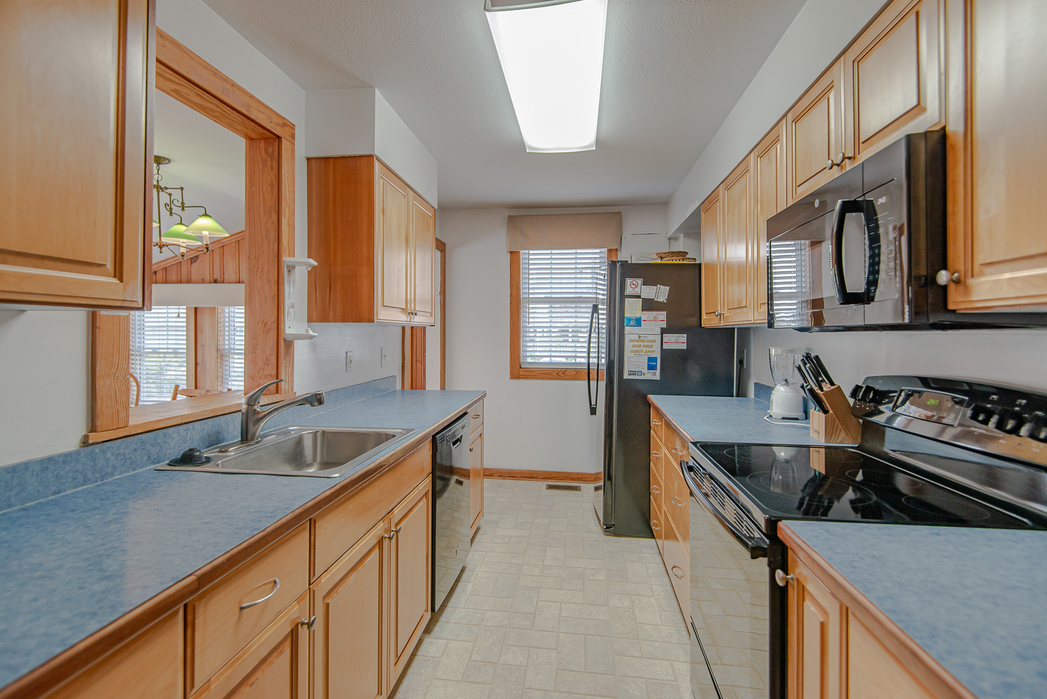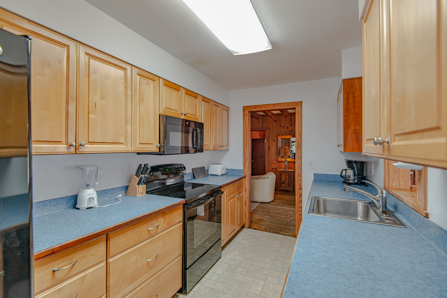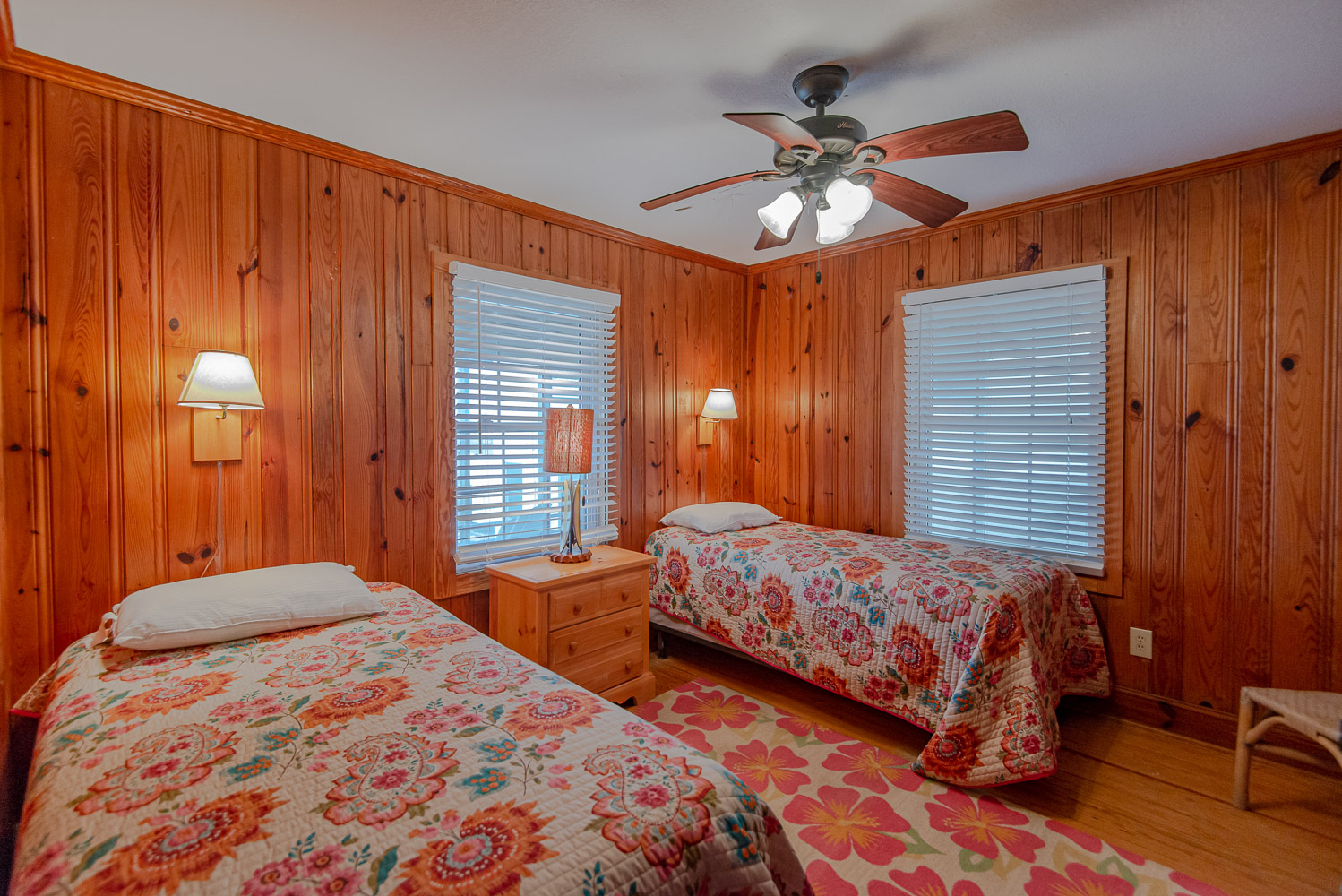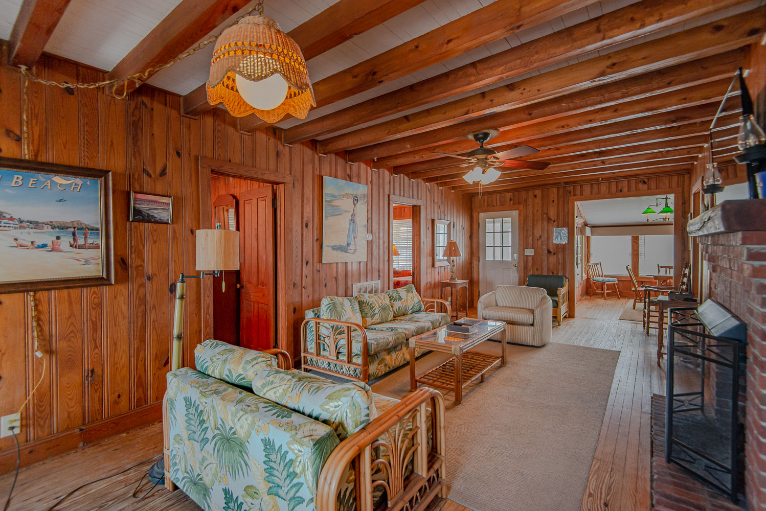Mid Level: Warm & Inviting Living Area w/TV, Pine Walls & Floors, Gas Fireplace, & Great Ocean Views, Kitchen & Large Dining Room, 4 Bedrooms (1 w/Queen, 1 w/2 Singles, 1 w/Bunk Set, & 1 w/2 Singles) 2 Shared Full Baths, & Large Wrap-Around Screened Porch.