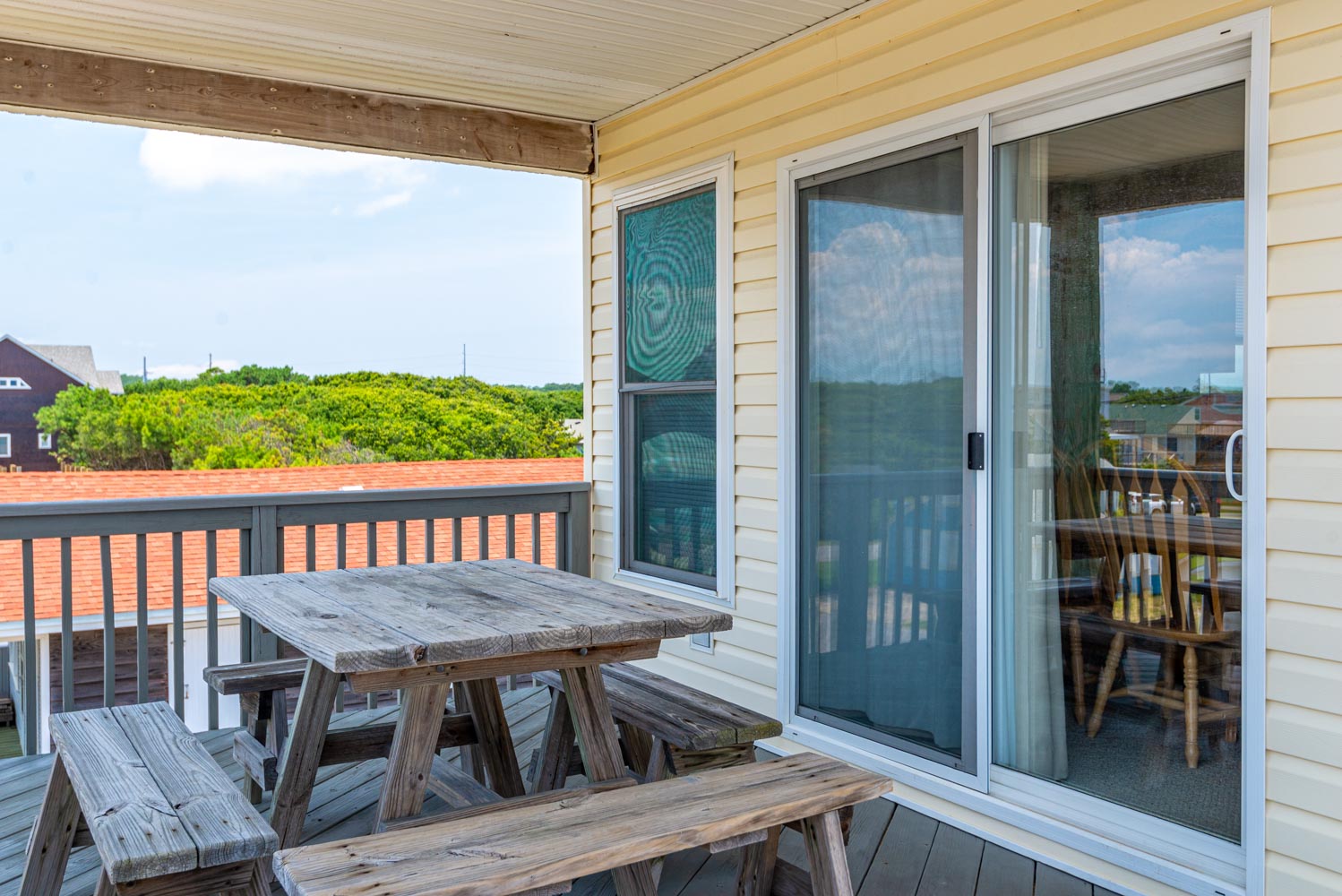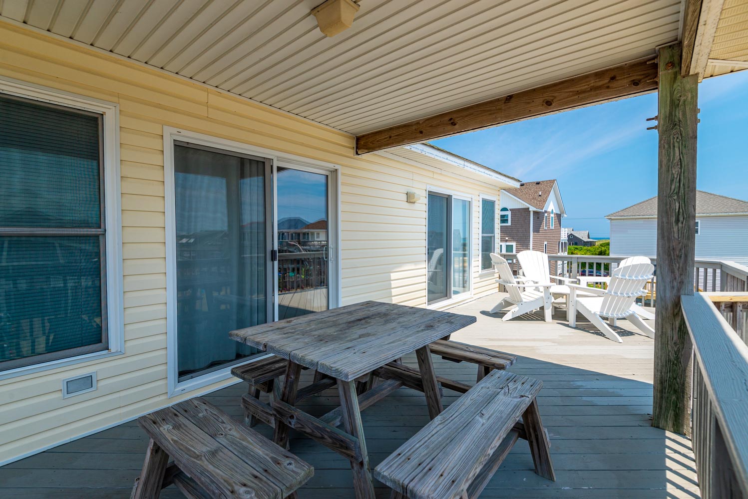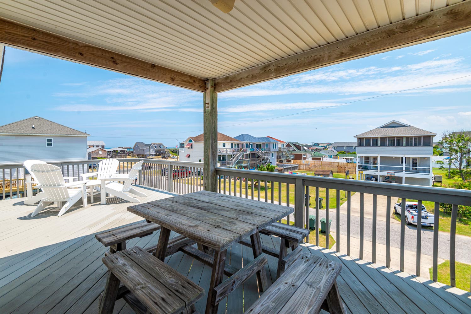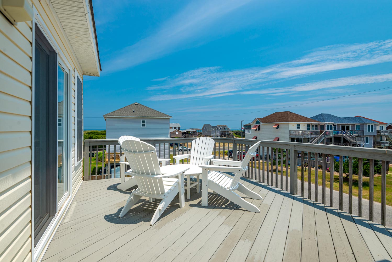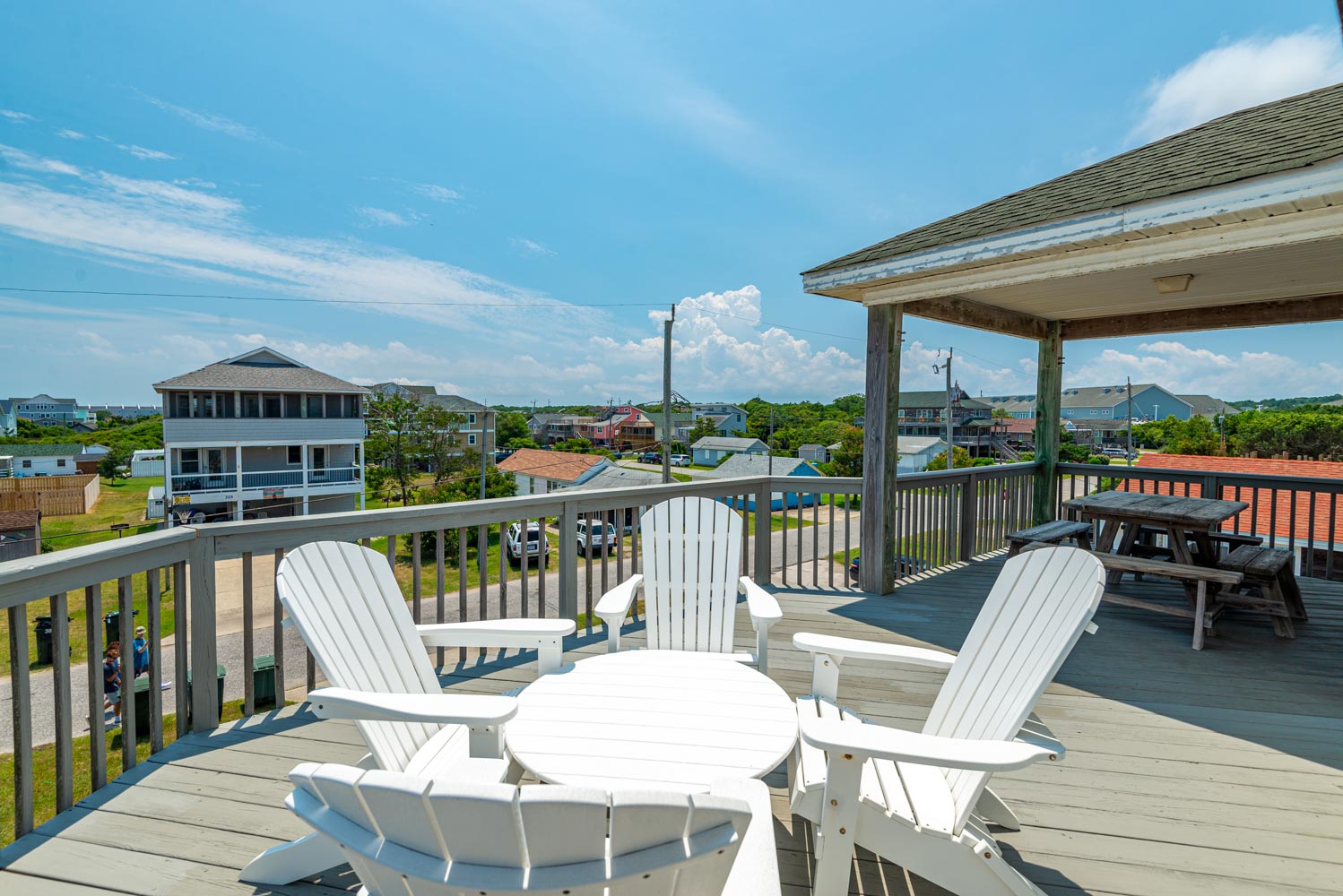 Top Level: Living/Dining/Kitchen Area, Flat Screen TV, DVD, & Half Bath, Private Suite w/King, Flat Screen TV, & Full Bath w/Jetted Tub, Covered Porch w/Picnic Table, Sun Deck w/Adirondack Chairs & Ocean Views.