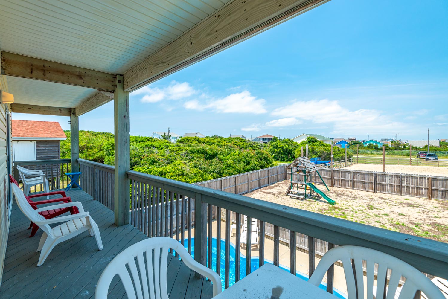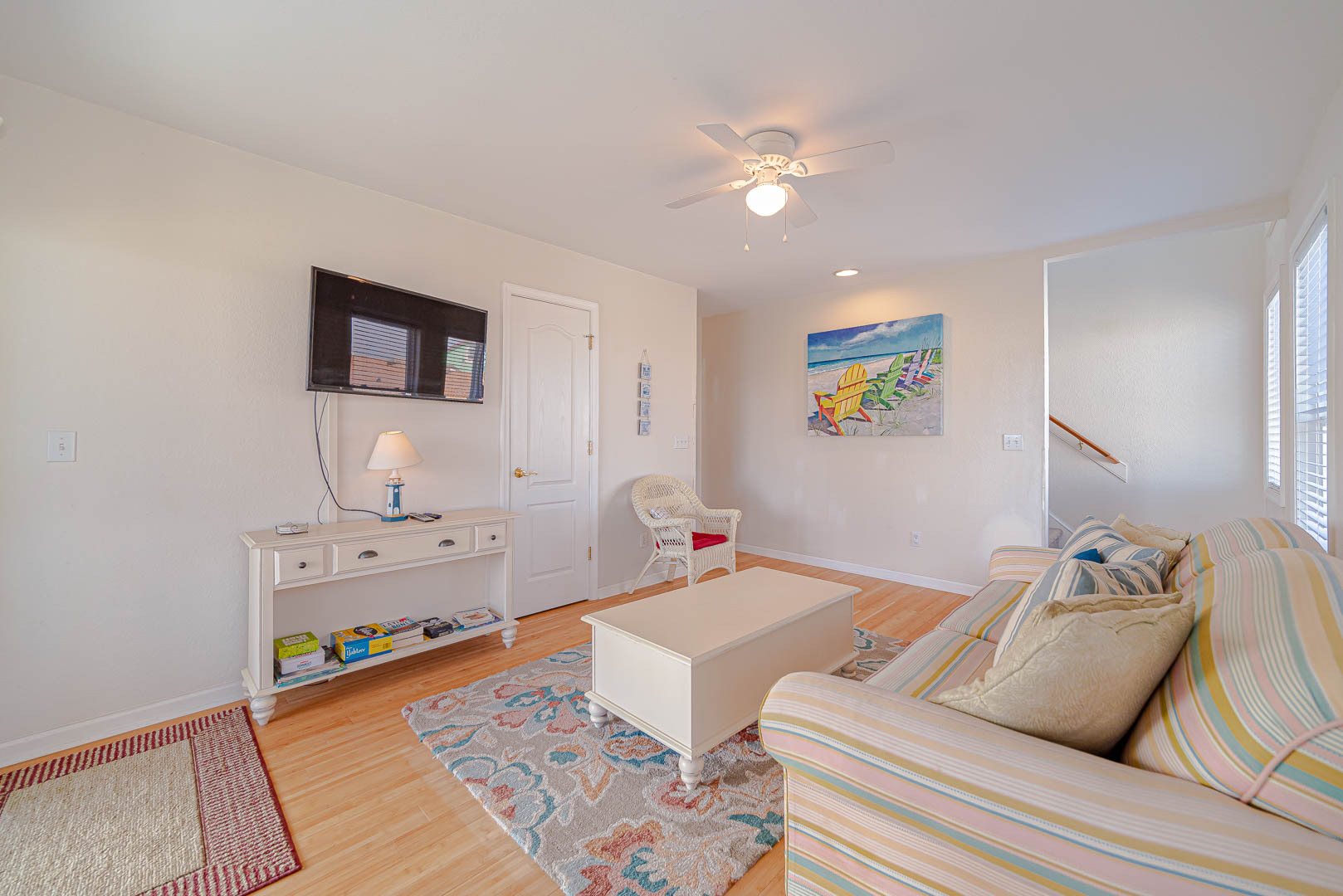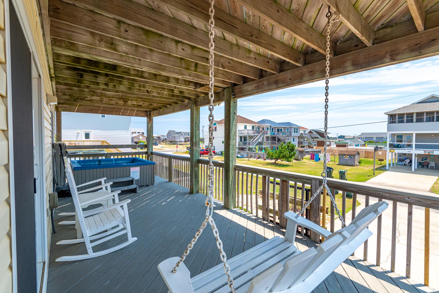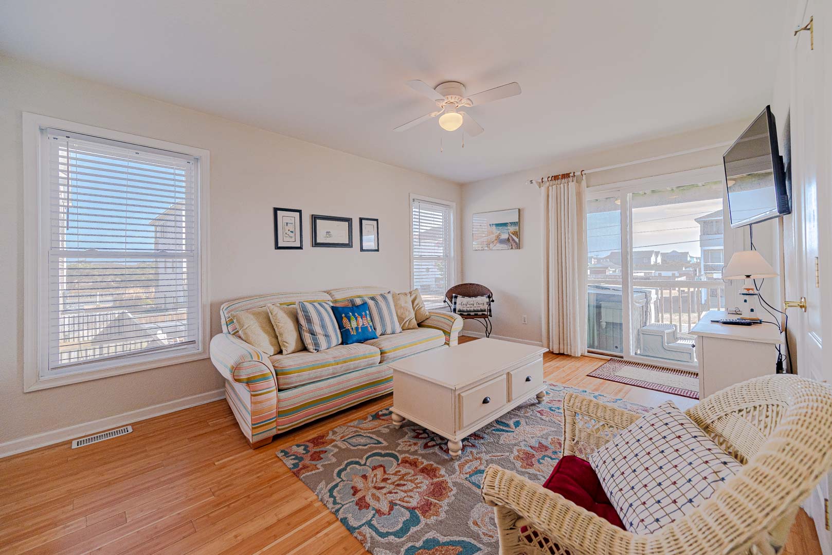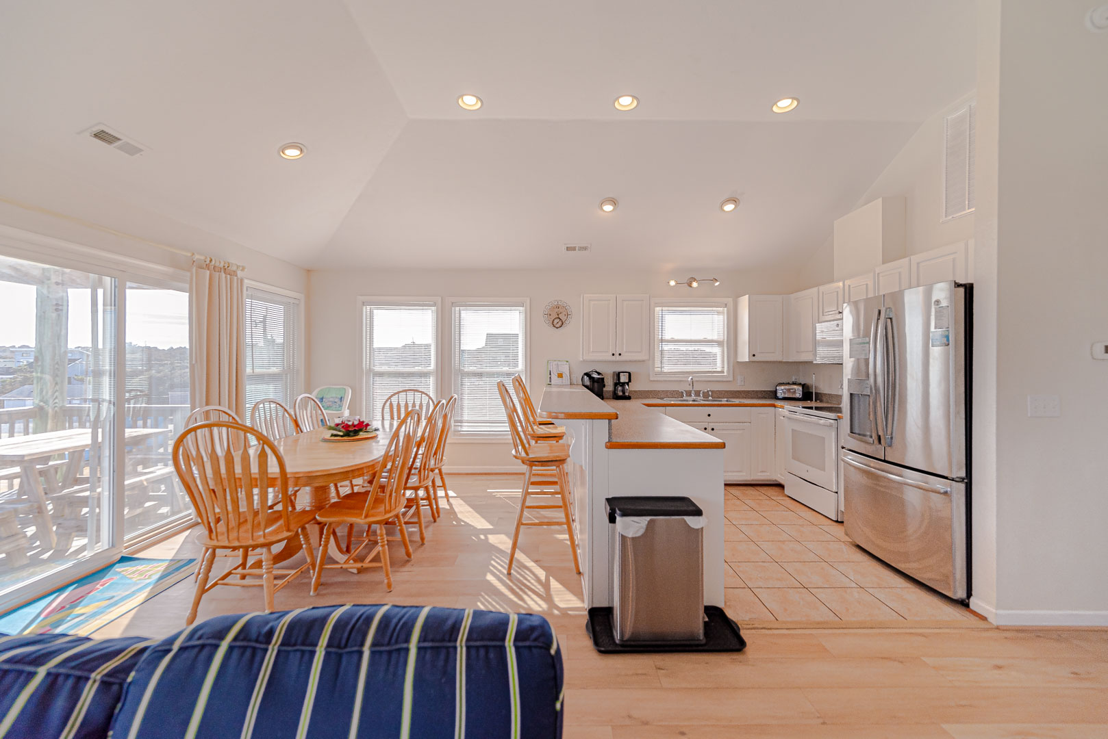Top Level: Living/Dining/Kitchen Area, Flat Screen TV, DVD, & Half Bath, Private Suite w/King, Flat Screen TV, & Full Bath w/Jetted Tub, Covered Porch w/Picnic Table, Sun Deck w/Adirondack Chairs & Ocean Views.