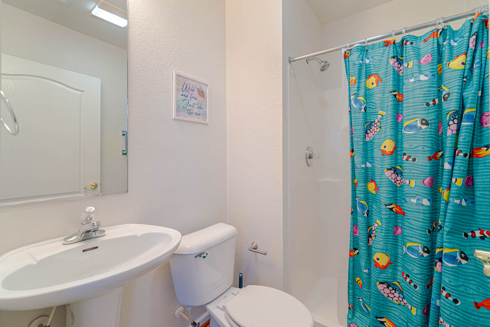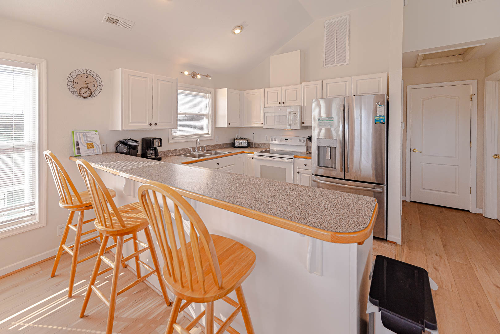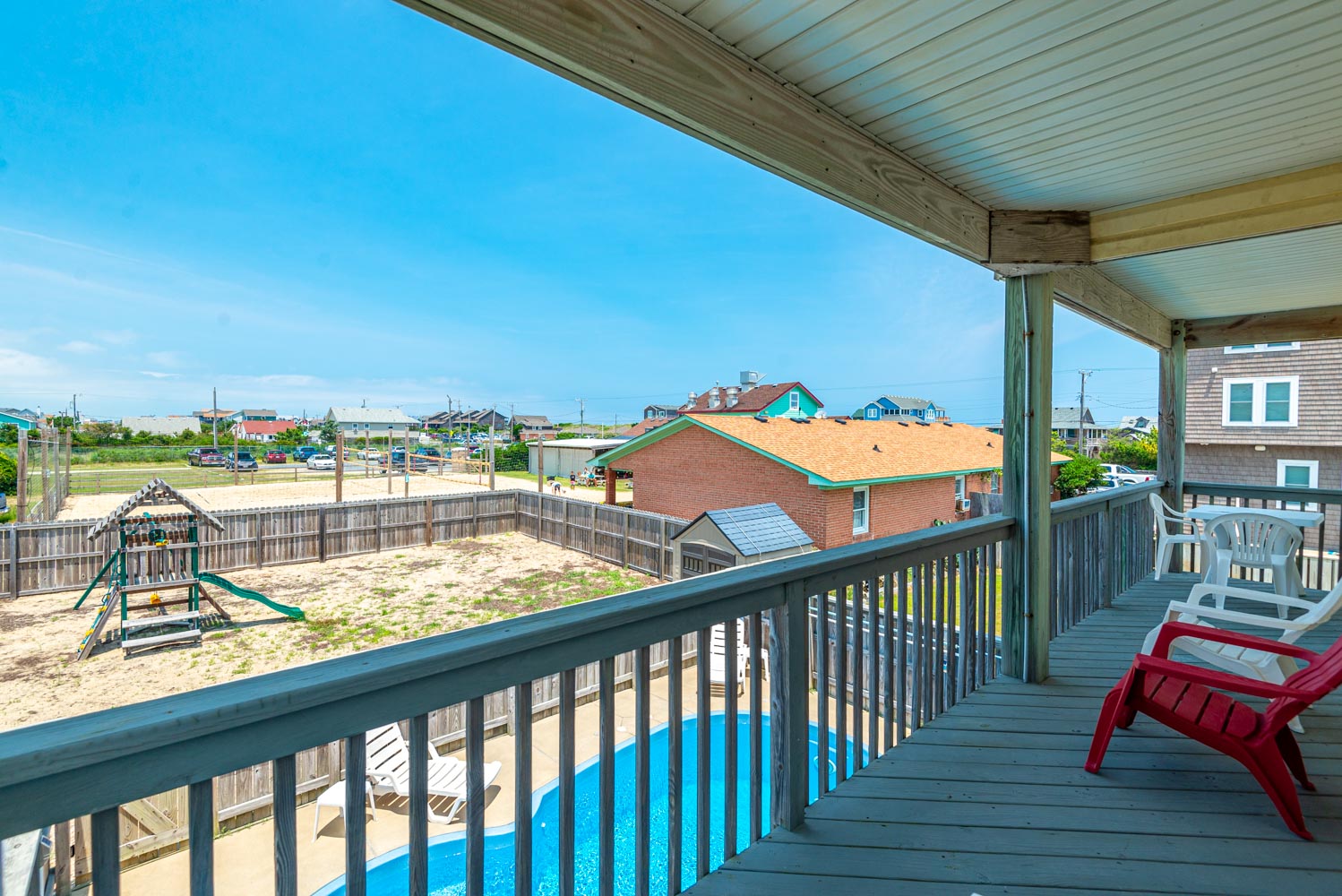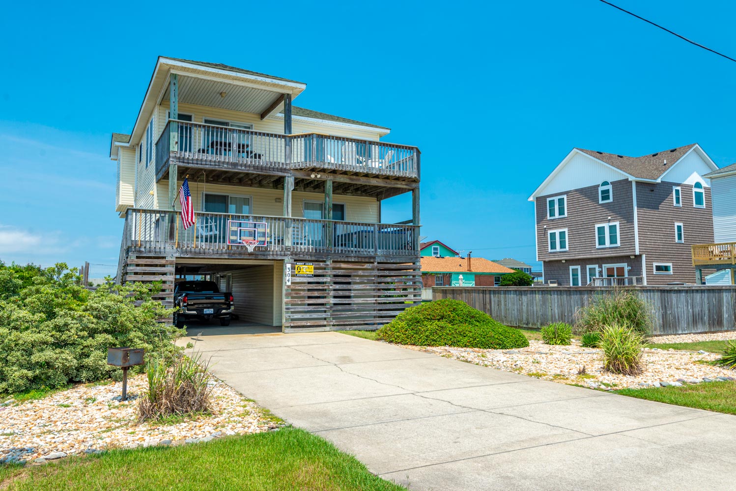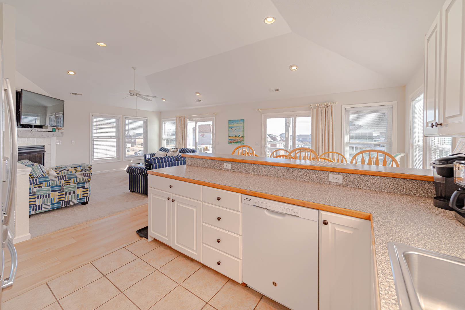 Top Level: Living/Dining/Kitchen Area, Flat Screen TV, DVD, & Half Bath, Private Suite w/King, Flat Screen TV, & Full Bath w/Jetted Tub, Covered Porch w/Picnic Table, Sun Deck w/Adirondack Chairs & Ocean Views.