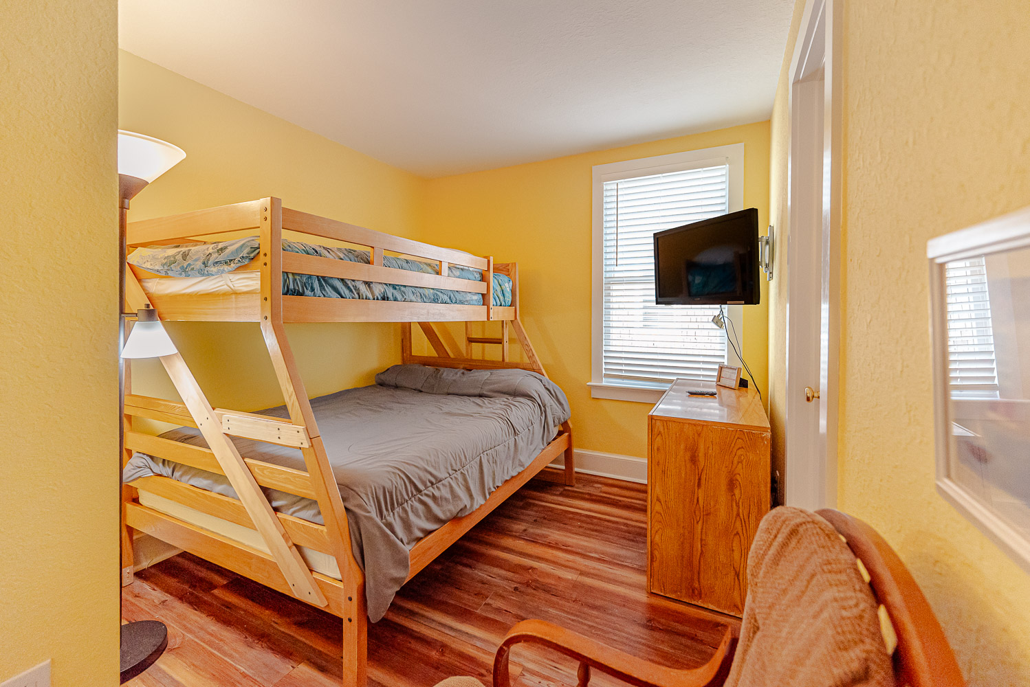 Mid Level: 5 Bedrooms (Private Suite w/King, TV, Full Bath w/Tub/Shower; Private Suite w/Queen, TV, Full Bath w/Tub/Shower; Private Suite w/2 Singles, Full Bath w/Tub/Shower; 1 w/Queen; 1 w/Duo Bunk), Full Bath w/Tub/Shower, and 2 Covered Decks.