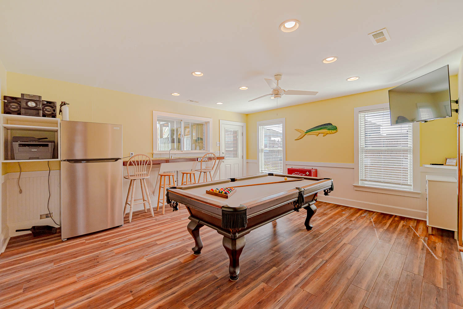 Features include: C/AC - Heat, Washer/Dryer, Dishwasher, Microwave, 5 TVs (Streaming Roku and YouTube TV), Wireless Internet, Ceiling Fans, High Chair, Picnic Table, and Deck and Pool Furniture. Two Mature Dogs Allowed w/Fees. No Smoking Allowed.