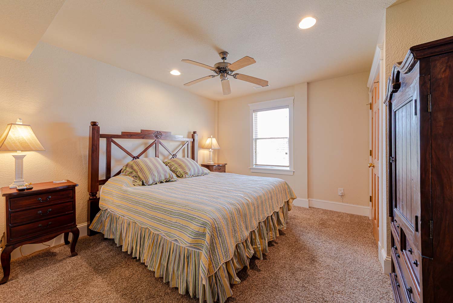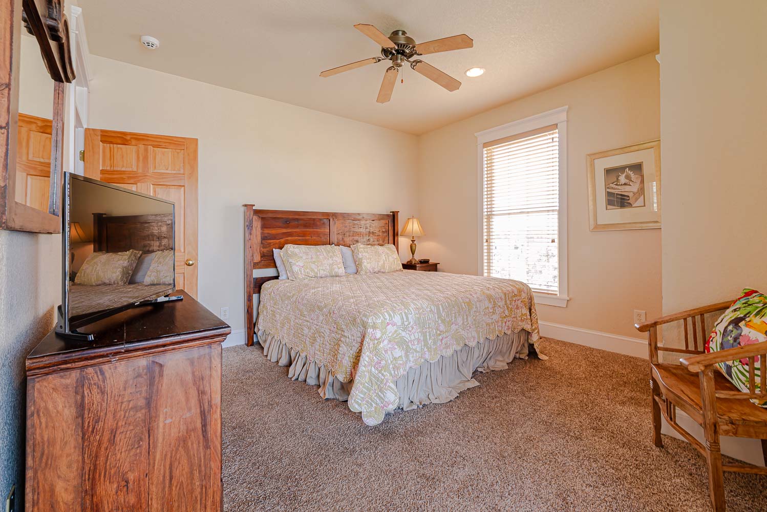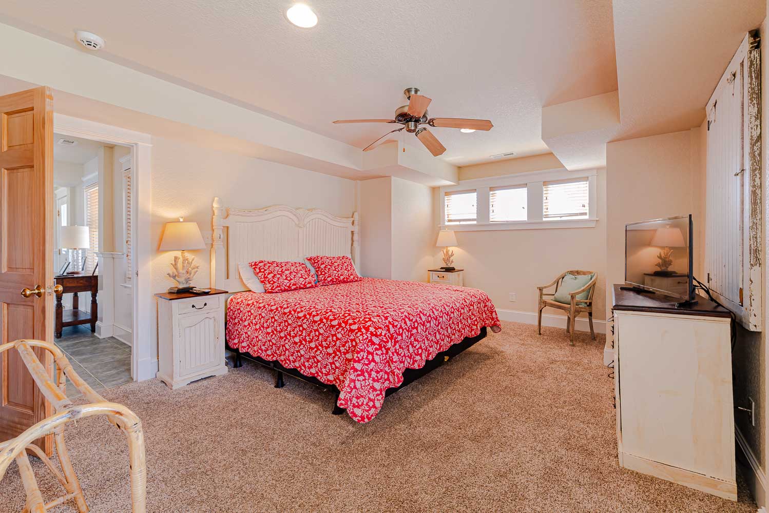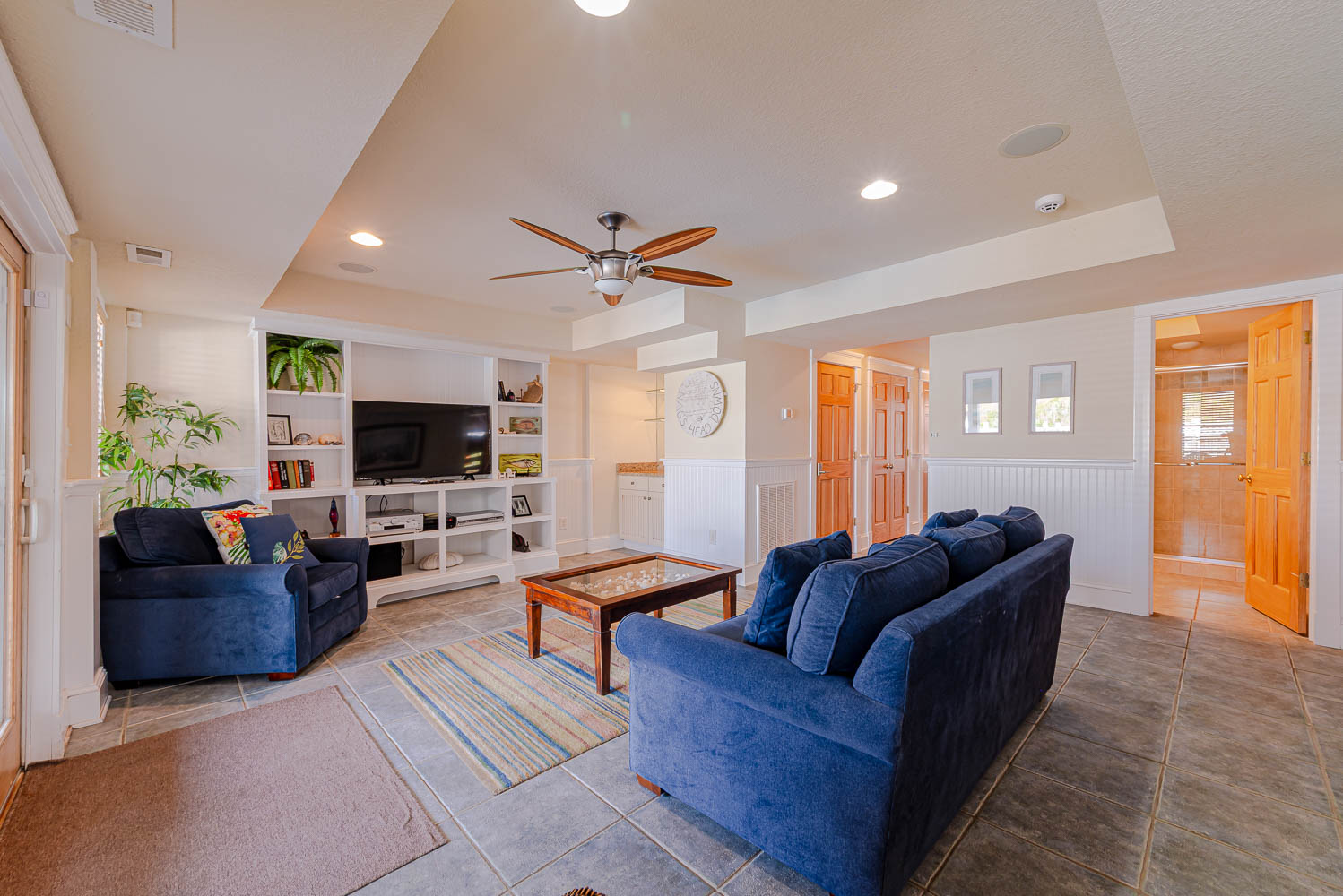 Mid Level: 4 Bedrooms (1 w/King, TV; Private Suite w/King, TV, Deck Access, Full Bath w/Shower; 1 w/King, TV, Shared Full Hall Bath w/Shower, Private Suite w/King, TV, Full Bath w/Shower; Laundry Area, and Access to Covered Deck Overlooking Pool Area w/Deck Furniture and Horizon Ocean Views.