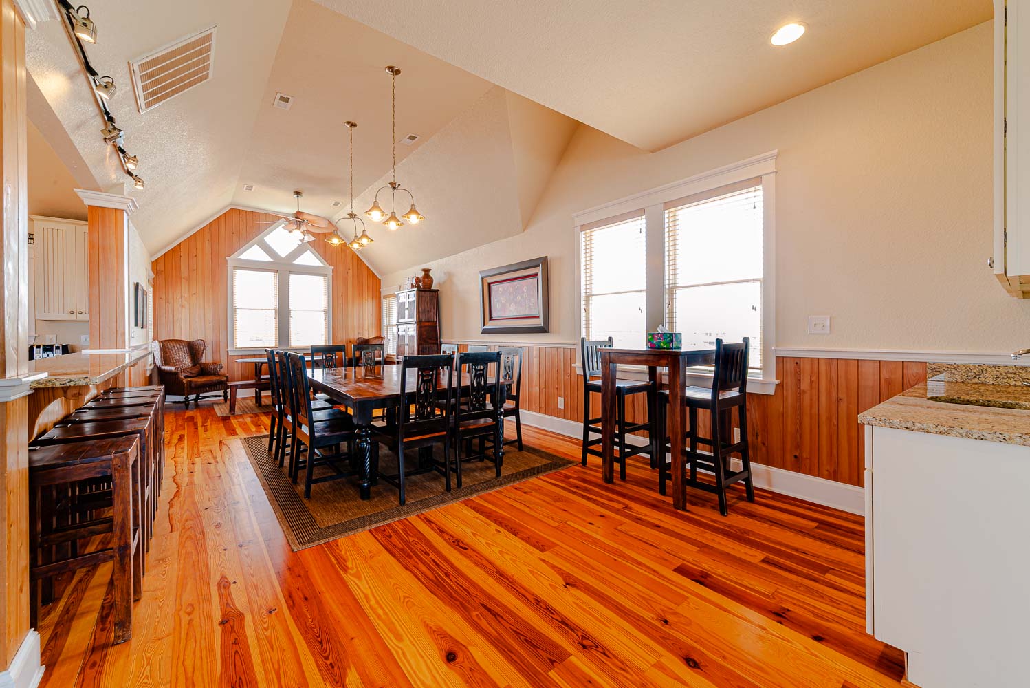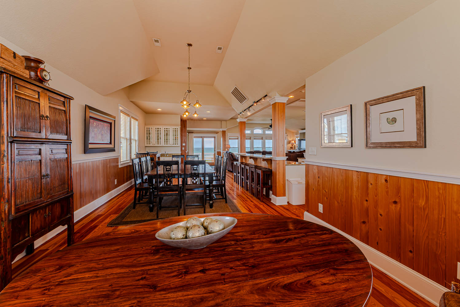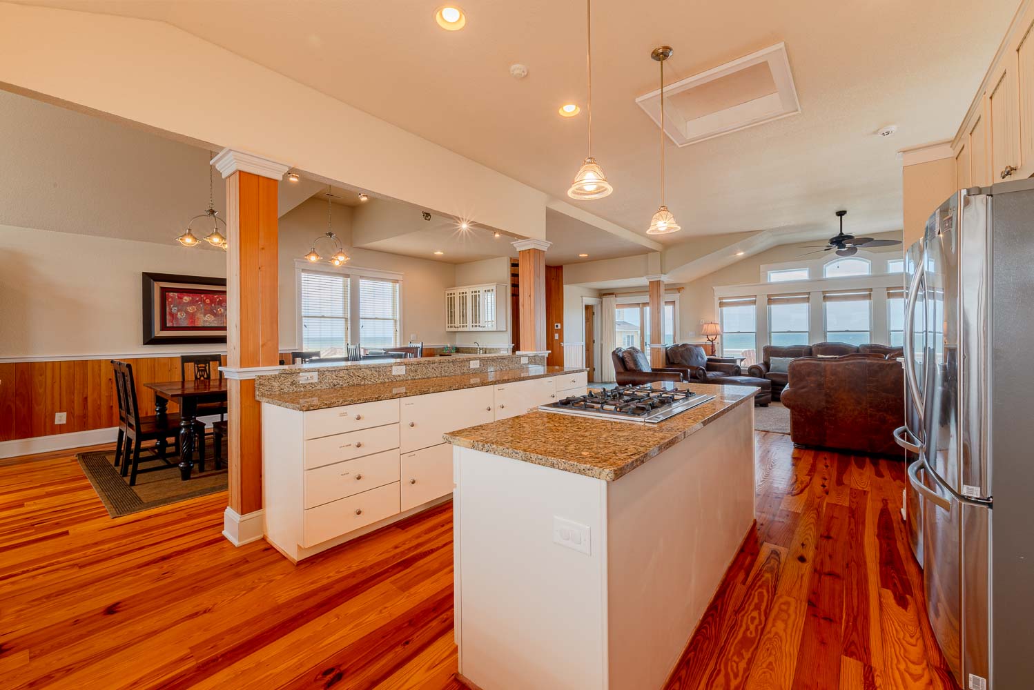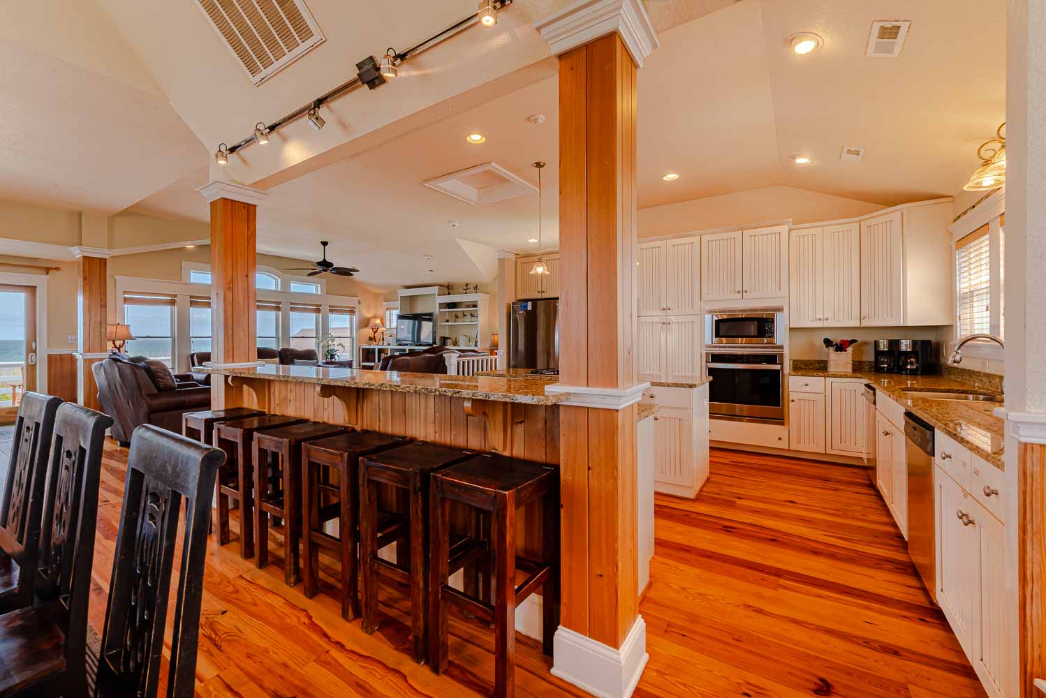 Top Level: Beautifully Spacious Living Area, TV, Ocean Views, Sitting Area, Fully Equipped Kitchen Area w/2 Stainless Steel Refrigerators, 2 Dishwashers, Island Bar w/Gas Range, Kitchen Bar Seating for Four (4), Dining Area w/Seating for Ten (10), Bar Table w/Seating for Two (2), Wet Bar, Spiral Stair Case to Loft, and Access to Sun Deck w/Deck Furniture w/Fantastic Ocean Views.