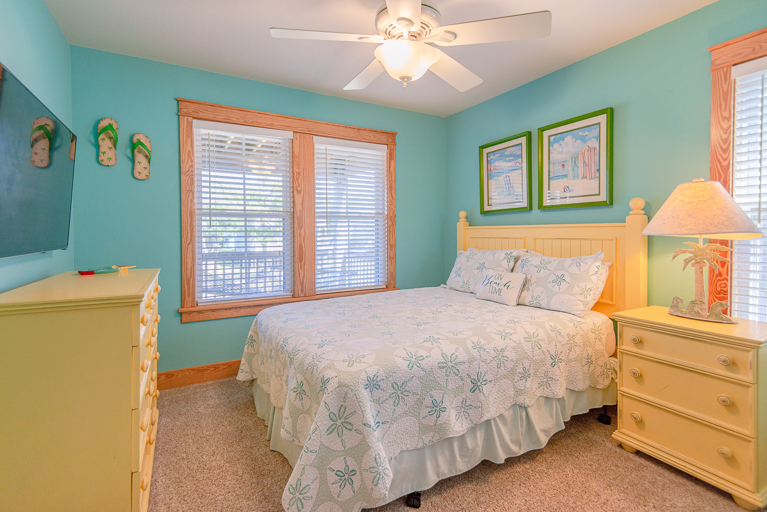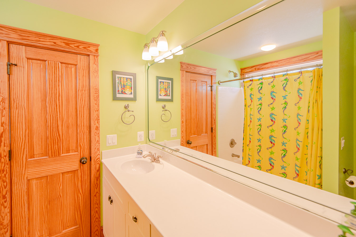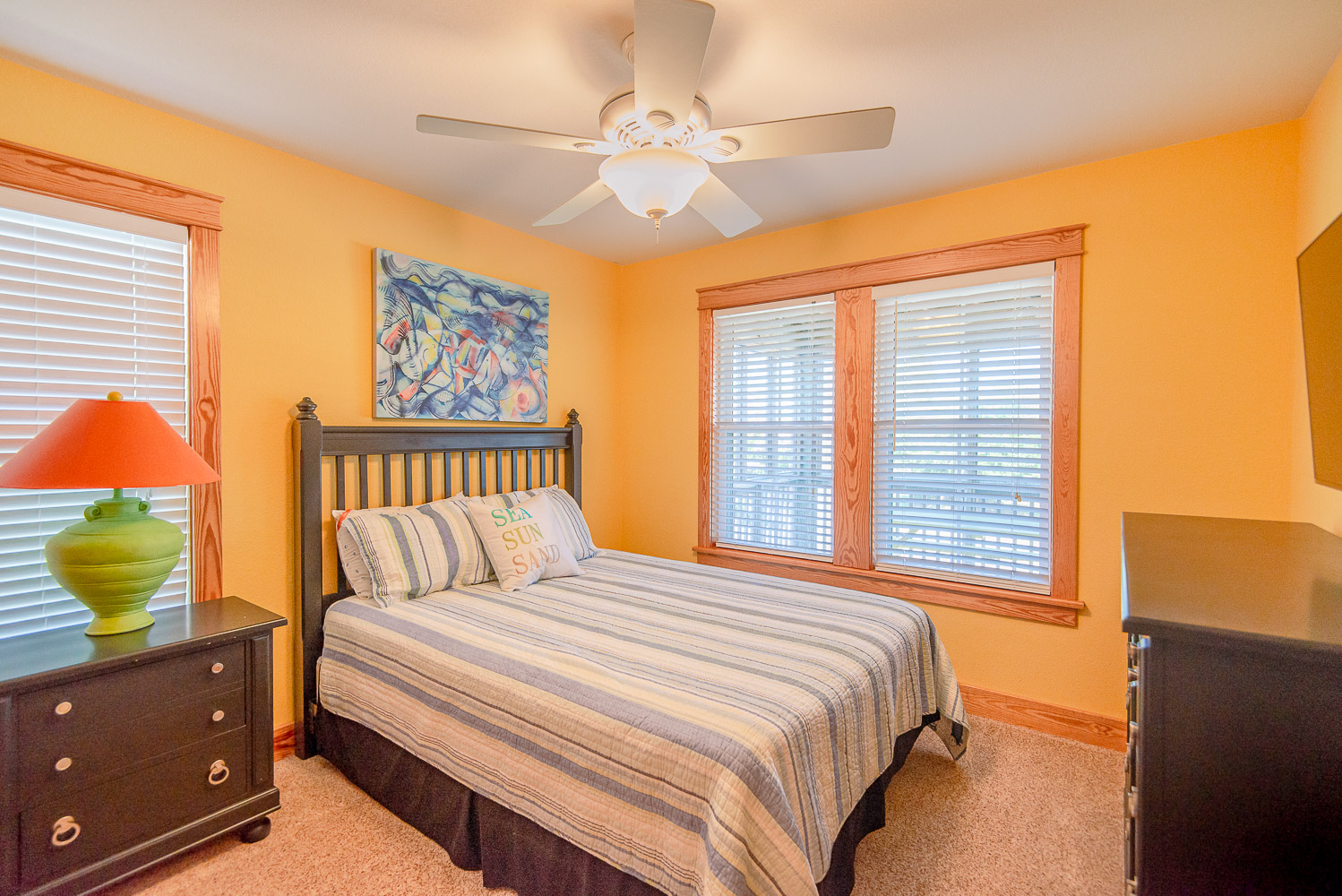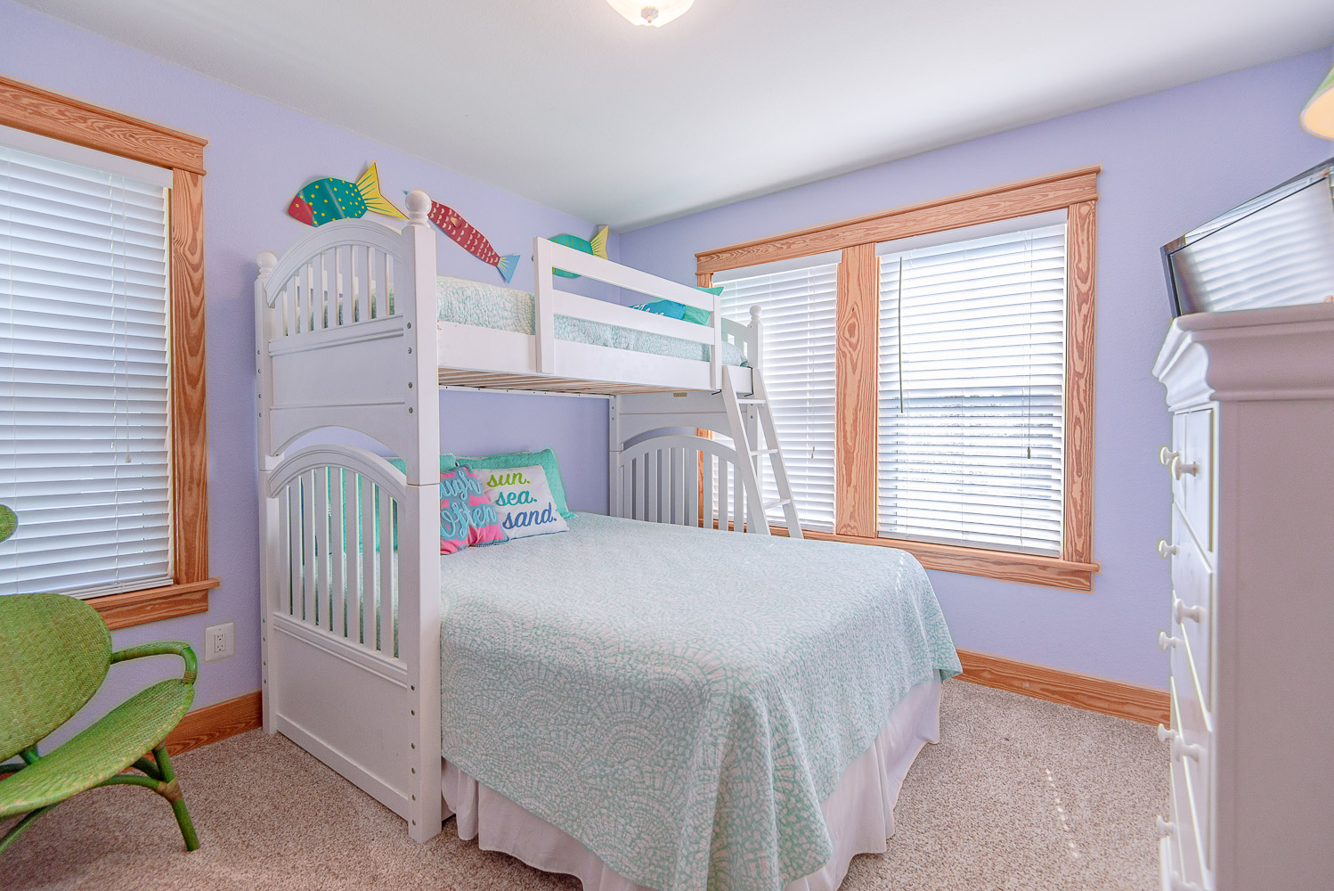 Mid Level: 3 Bedrooms (1 Private Suite w/Queen, TV, Full Bath; 1 w/Queen, TV; 1 w/Duo Bunk, TV), Shared Full Bath, and Covered Deck.