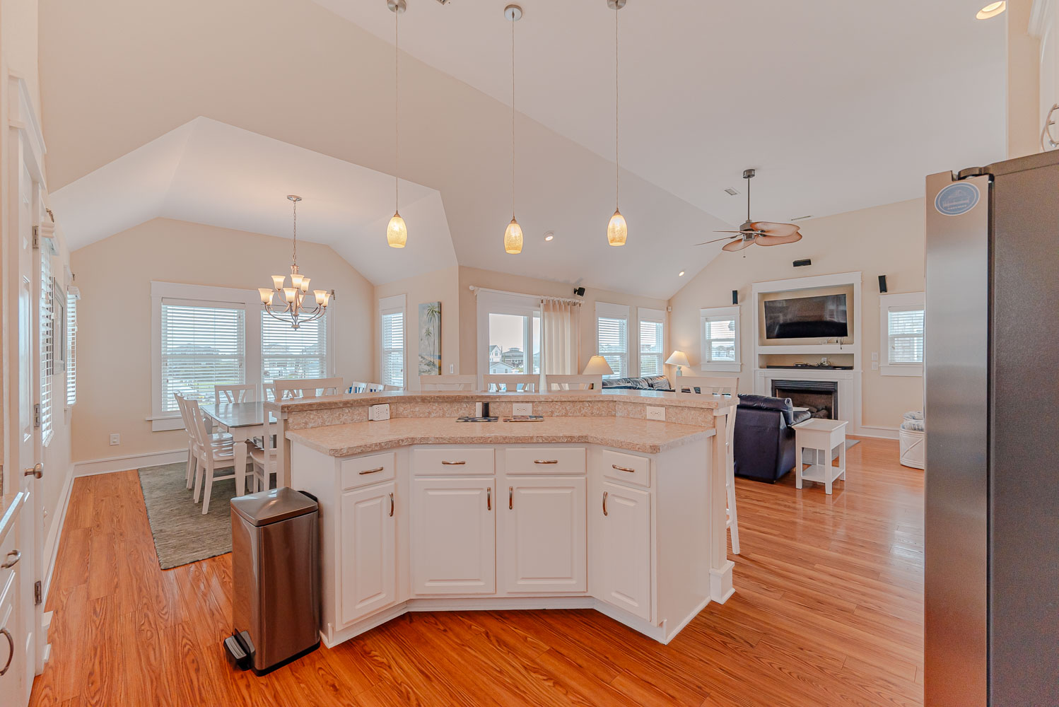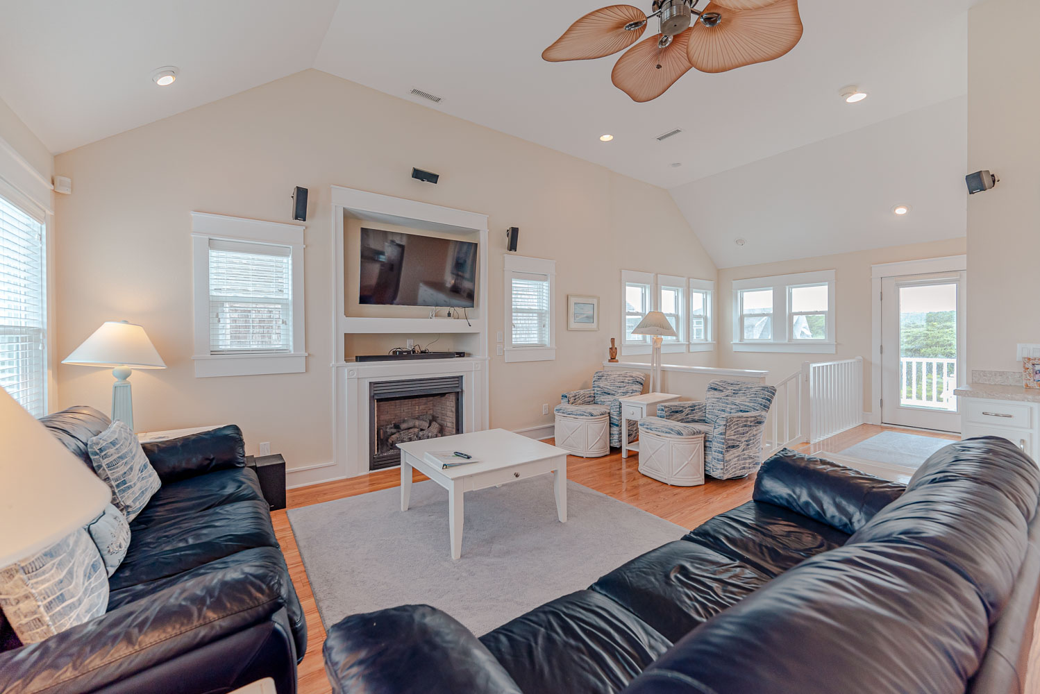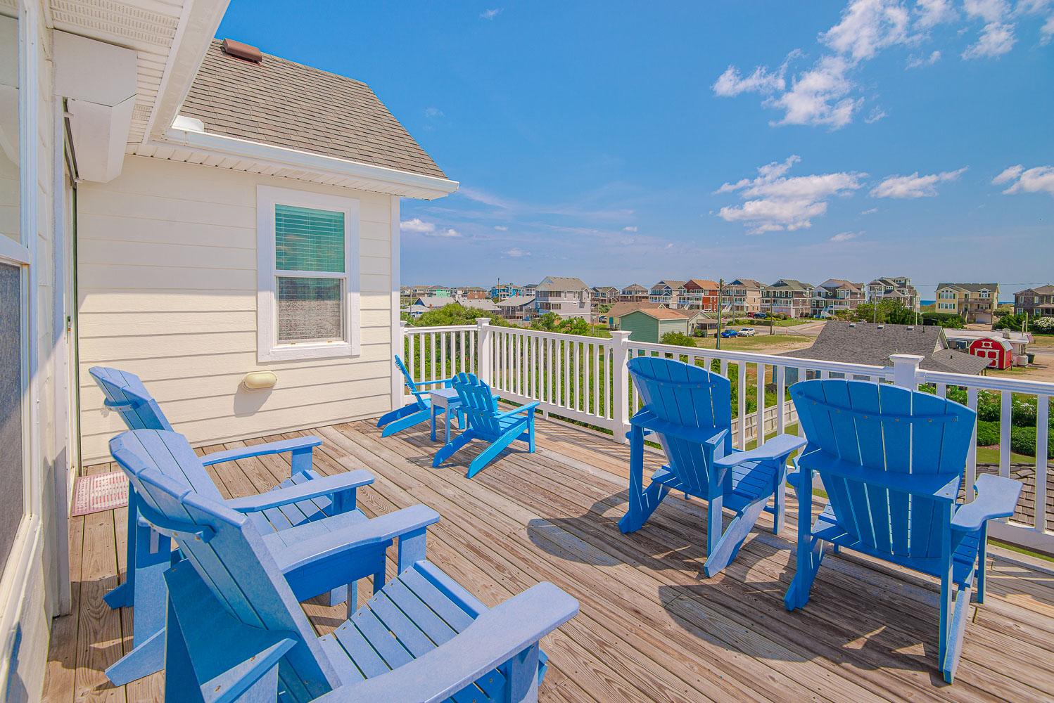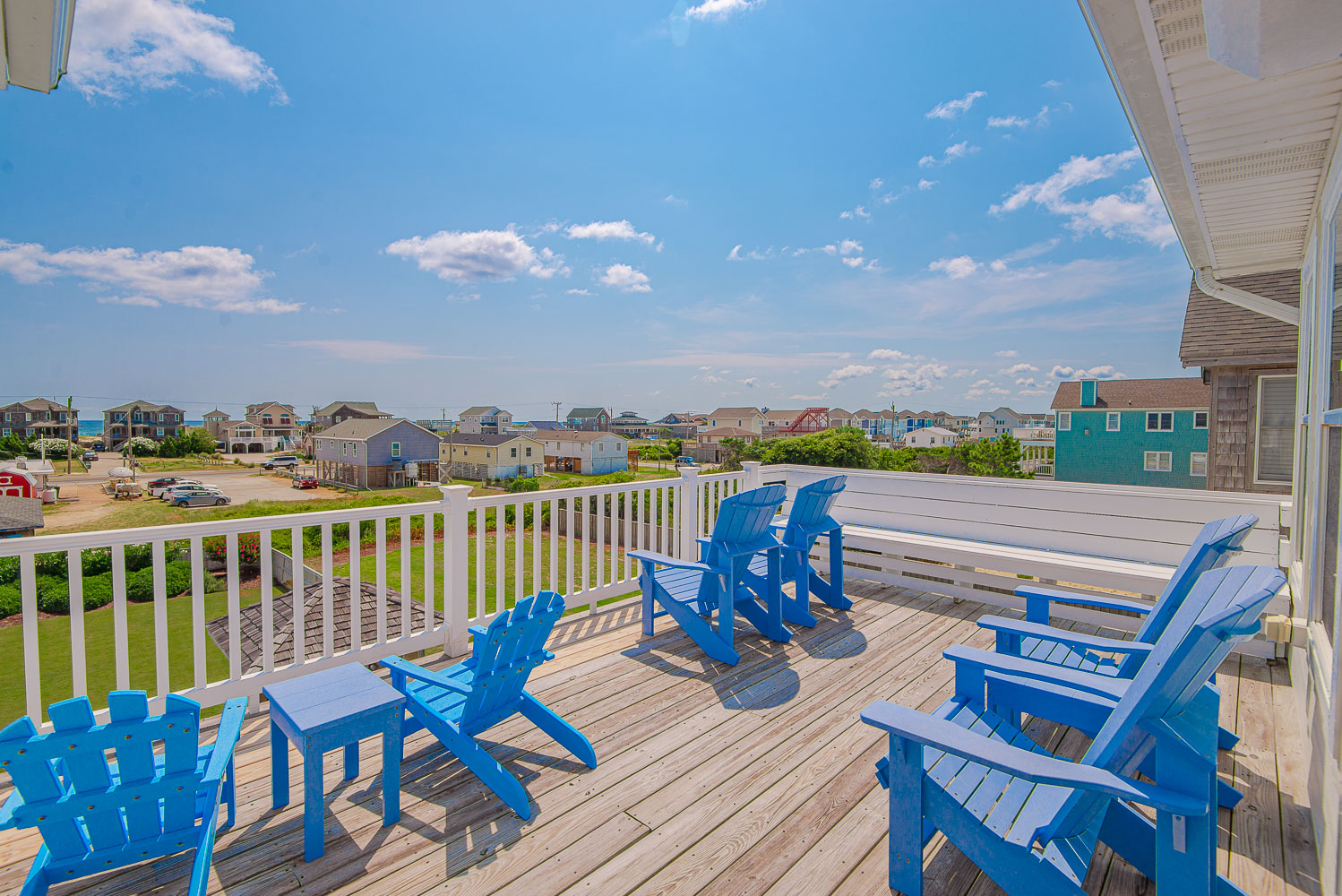 Top Level: Spacious and Very Well Appointed Living/Dining/Kitchen Area, Ocean Views, 50 Inch HDTV/DVD, Half Bath, Private Suite w/King, Large Walk-In Closet, LCD TV w/DVD, Full Bath w/Whirlpool Tub, and 2 Sun Decks w/Built-in Benches and Deck Furniture.