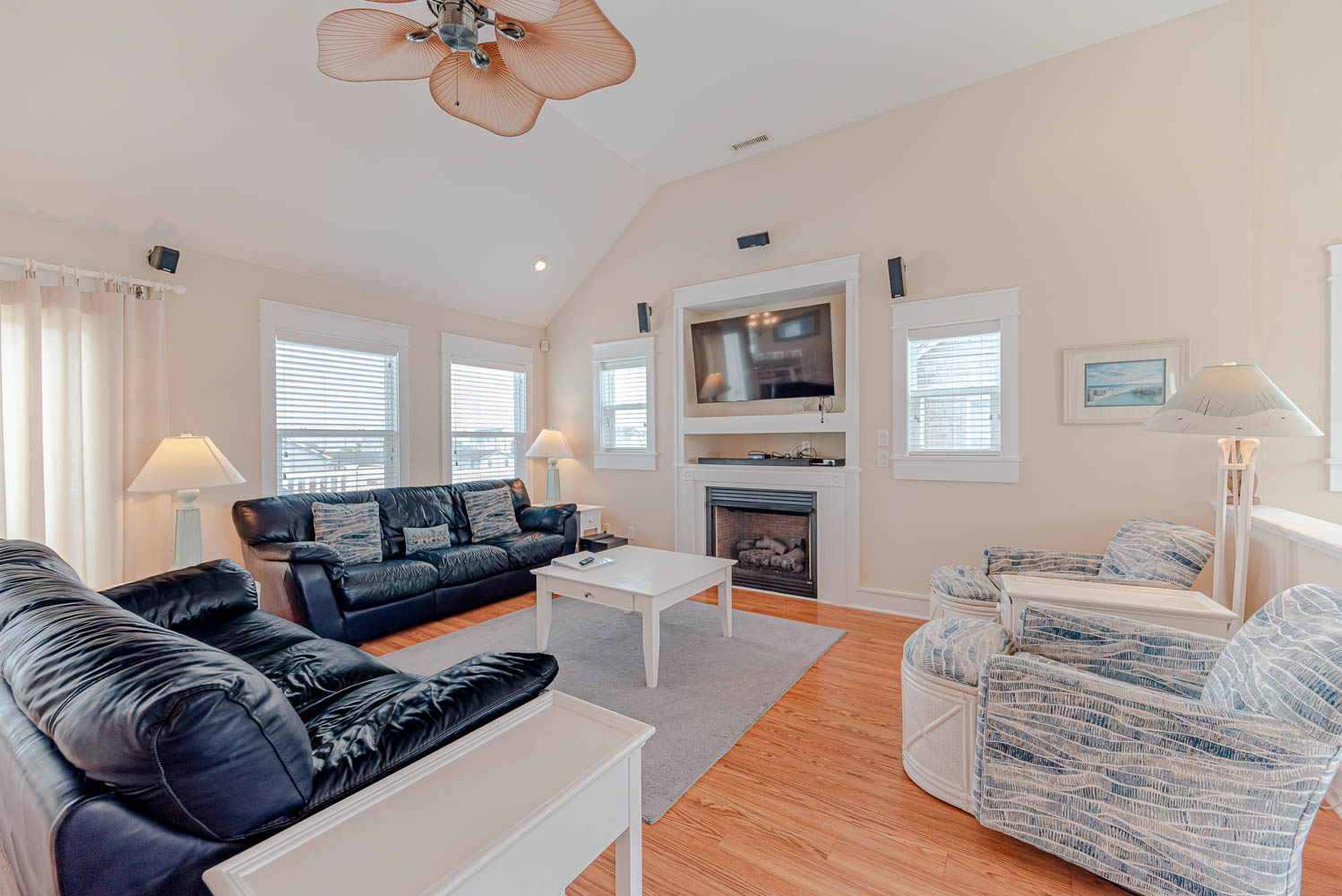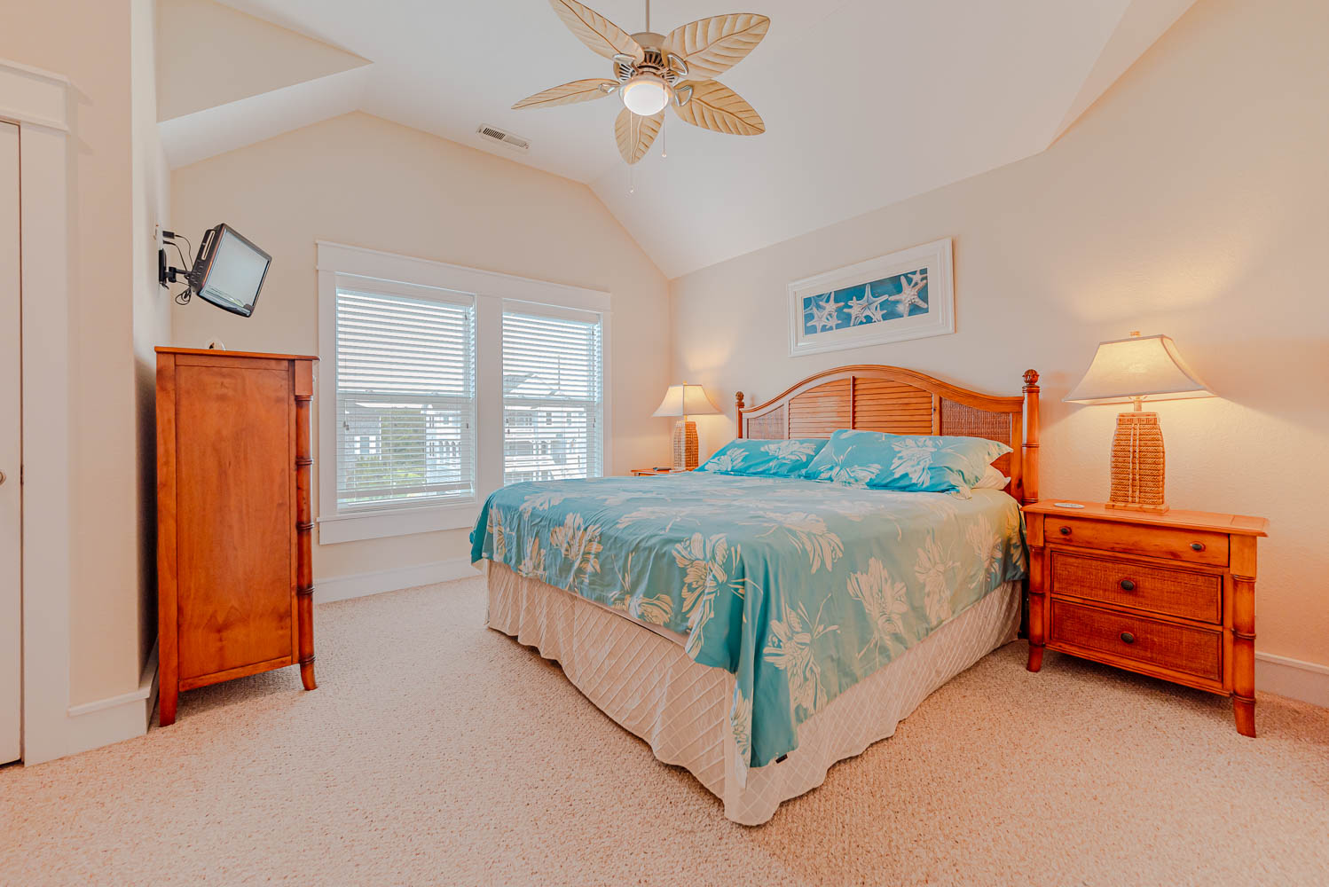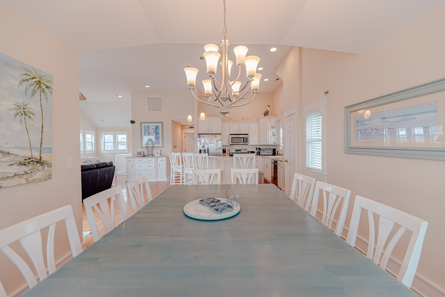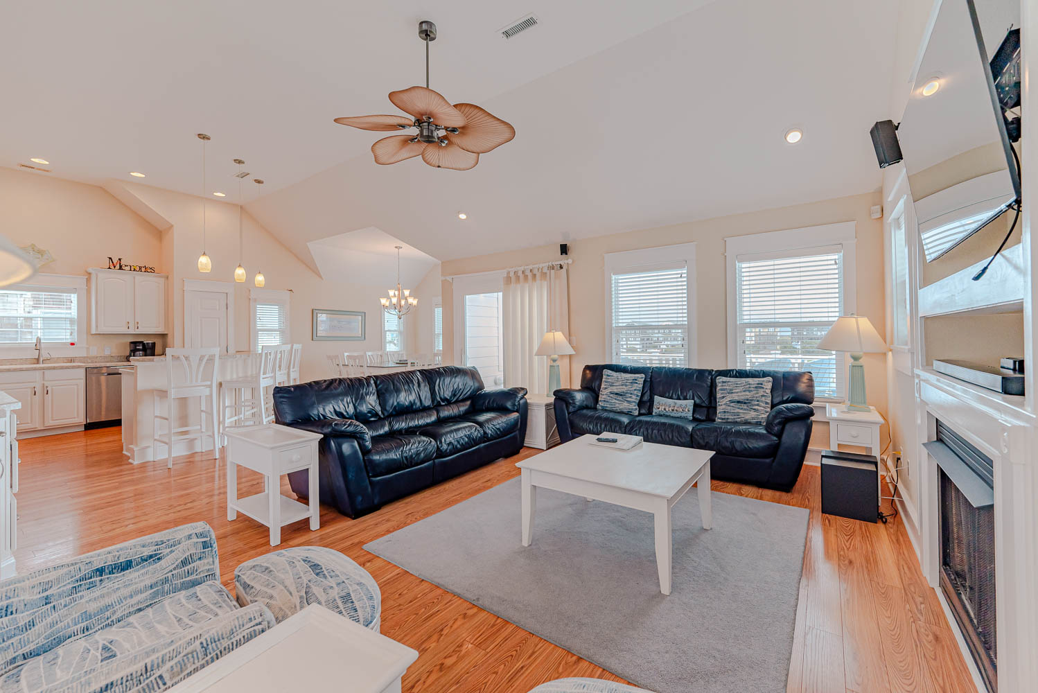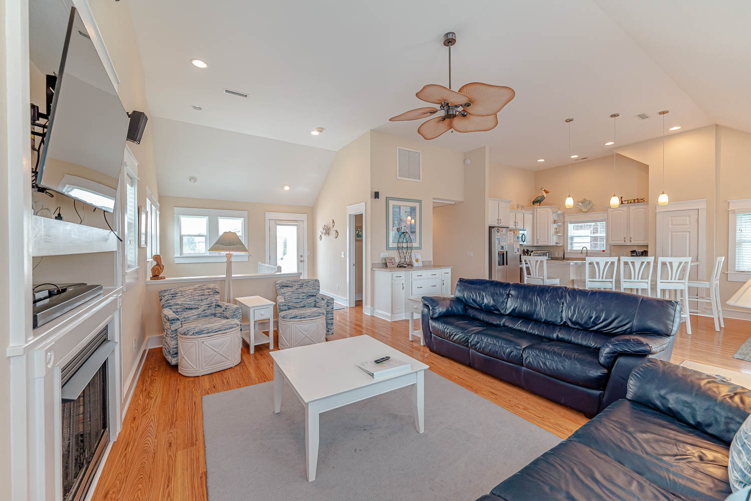Top Level: Spacious and Very Well Appointed Living/Dining/Kitchen Area, Ocean Views, 50 Inch HDTV/DVD, Half Bath, Private Suite w/King, Large Walk-In Closet, LCD TV w/DVD, Full Bath w/Whirlpool Tub, and 2 Sun Decks w/Built-in Benches and Deck Furniture.