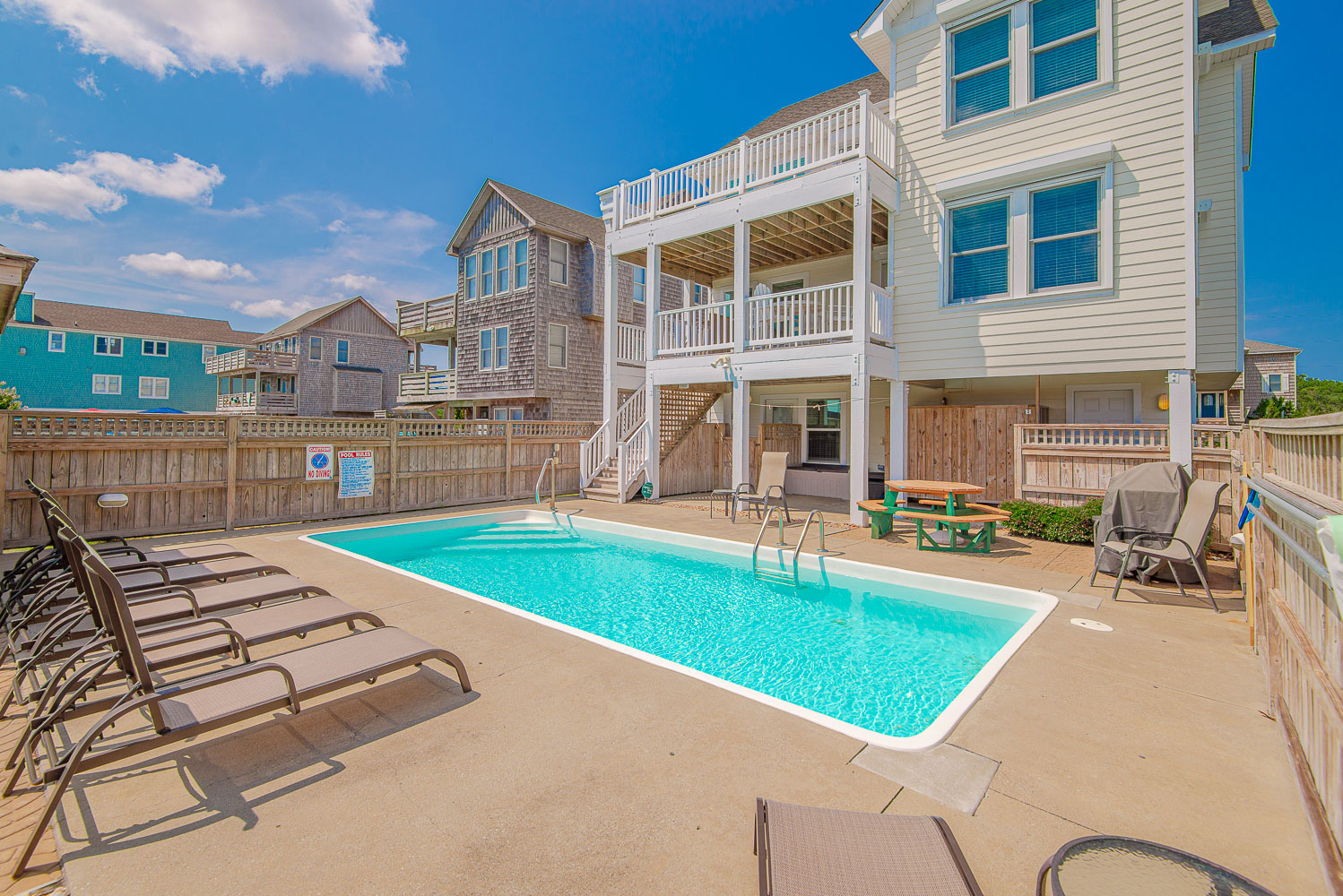 Features include: C/AC and Heat, Washer/Dryer, Dishwasher, Microwave, LCD TVs, DVDs, Wireless Internet, Baby Equipment (High Chair and Pac-n-Play), Deck/Pool Furniture, Gas Grill, and Easy Walk to Beach. No Pets Allowed. No Smoking Allowed.