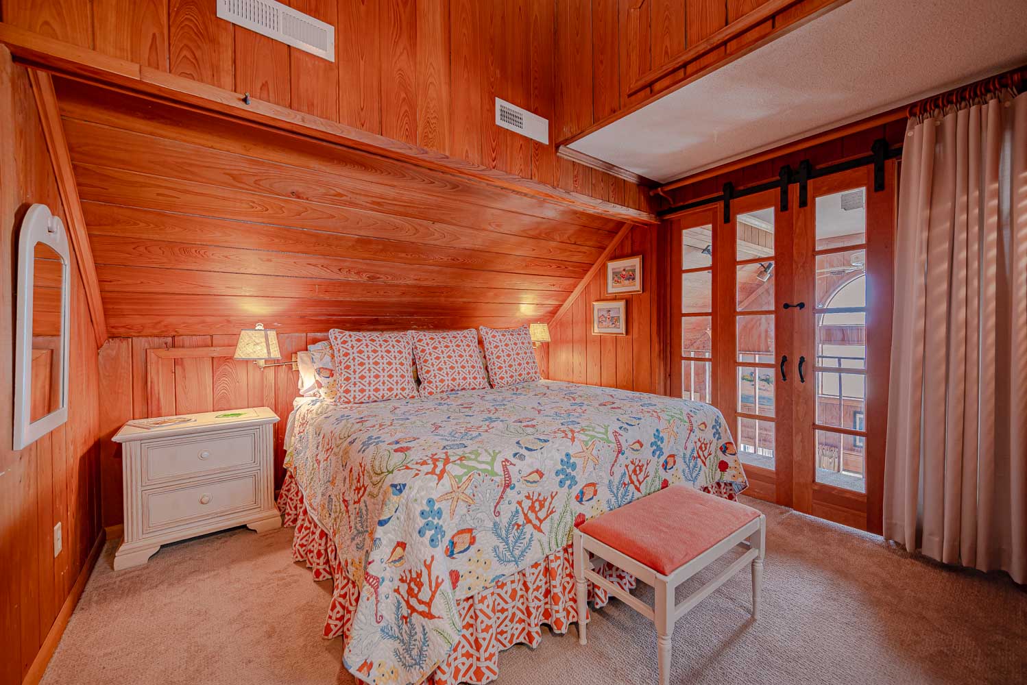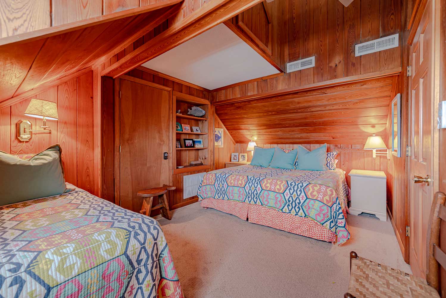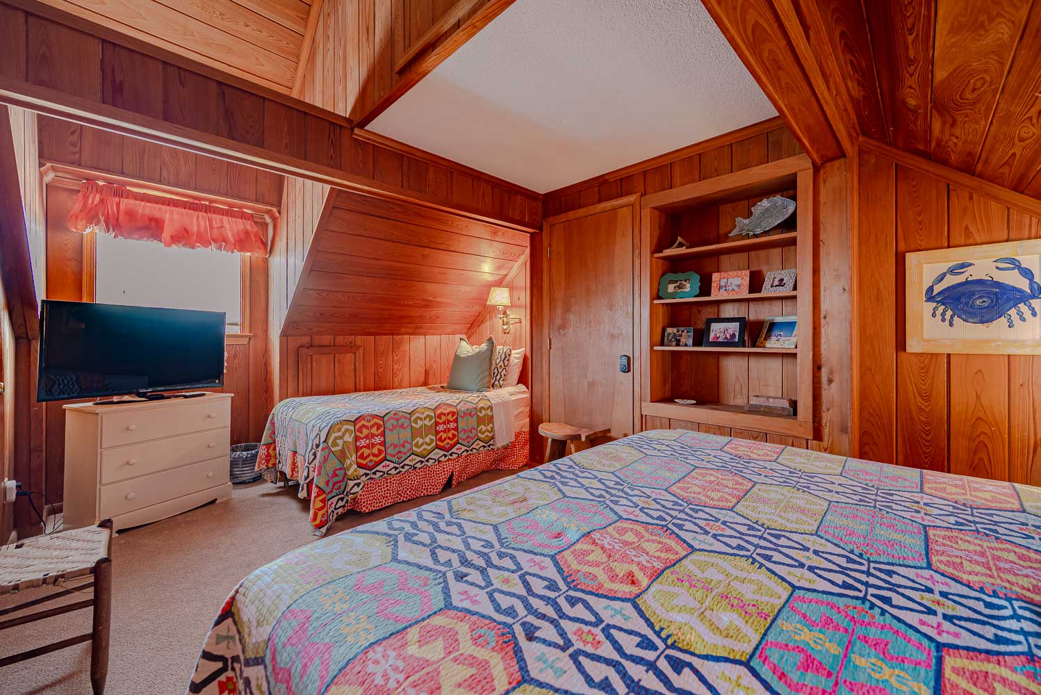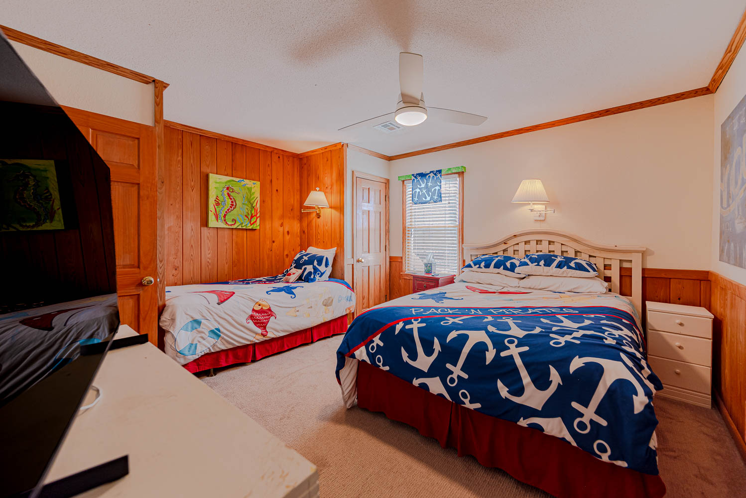 Top Level: 2 Bedrooms (1 w/King, Single, Smart TV; 1 w/King, TV) and Full Bath.