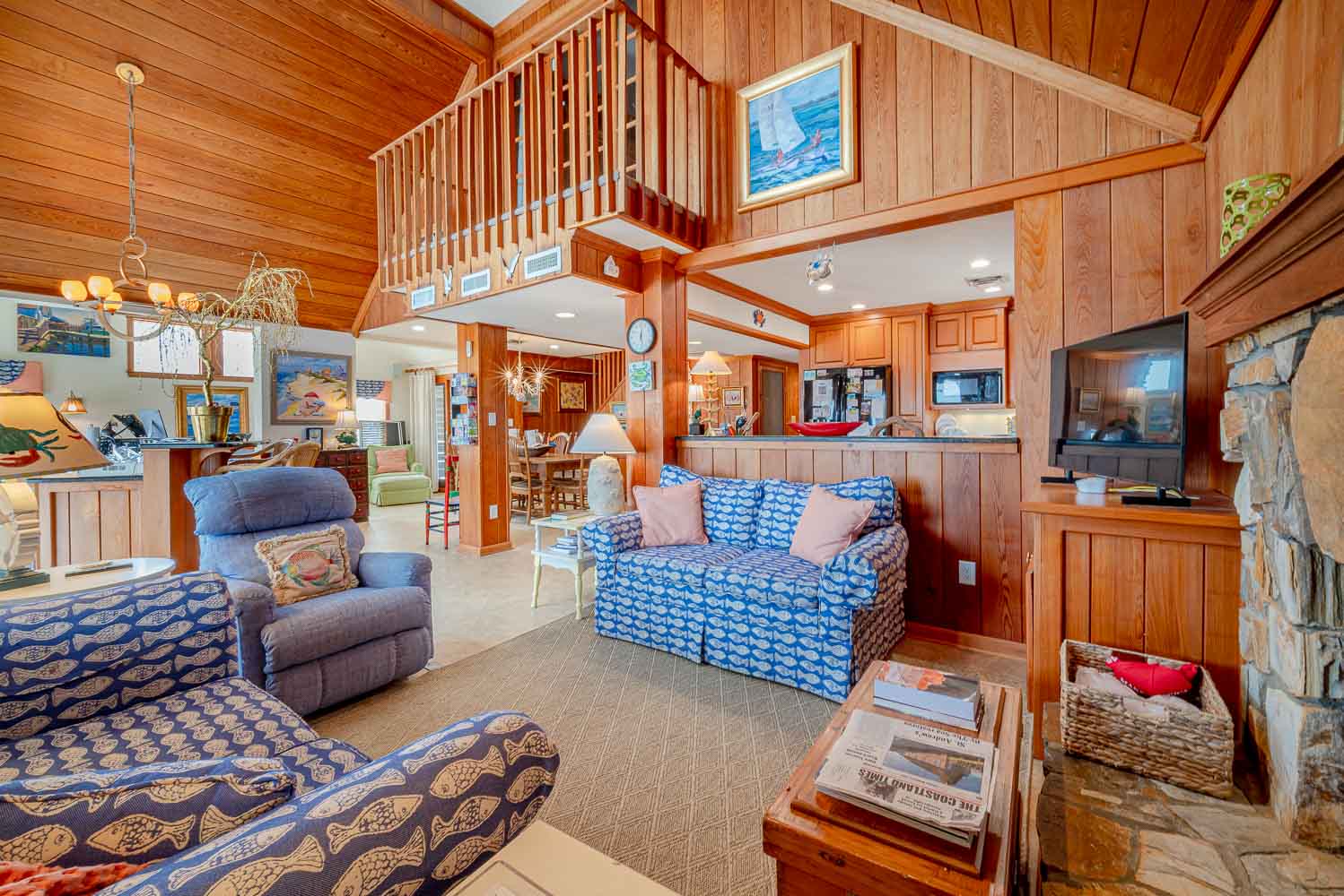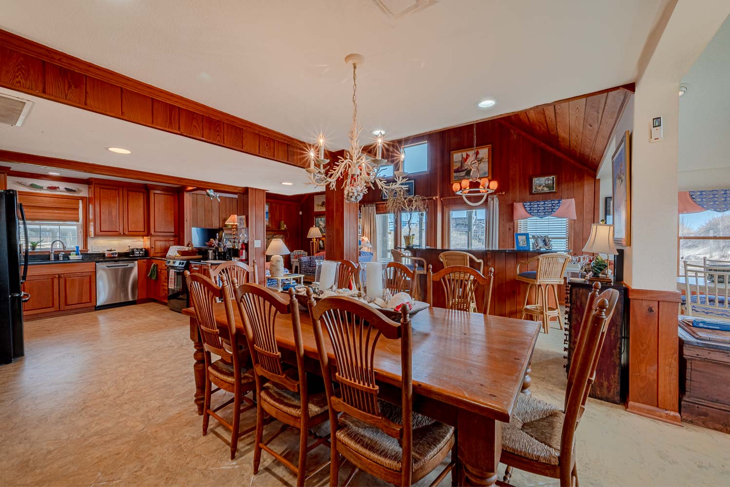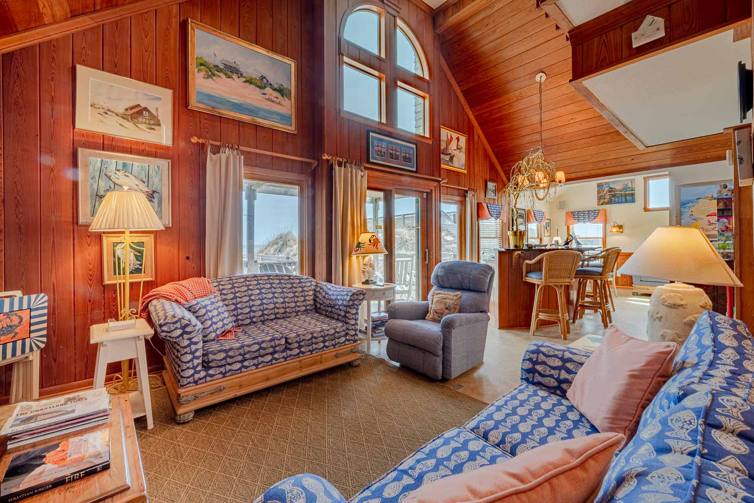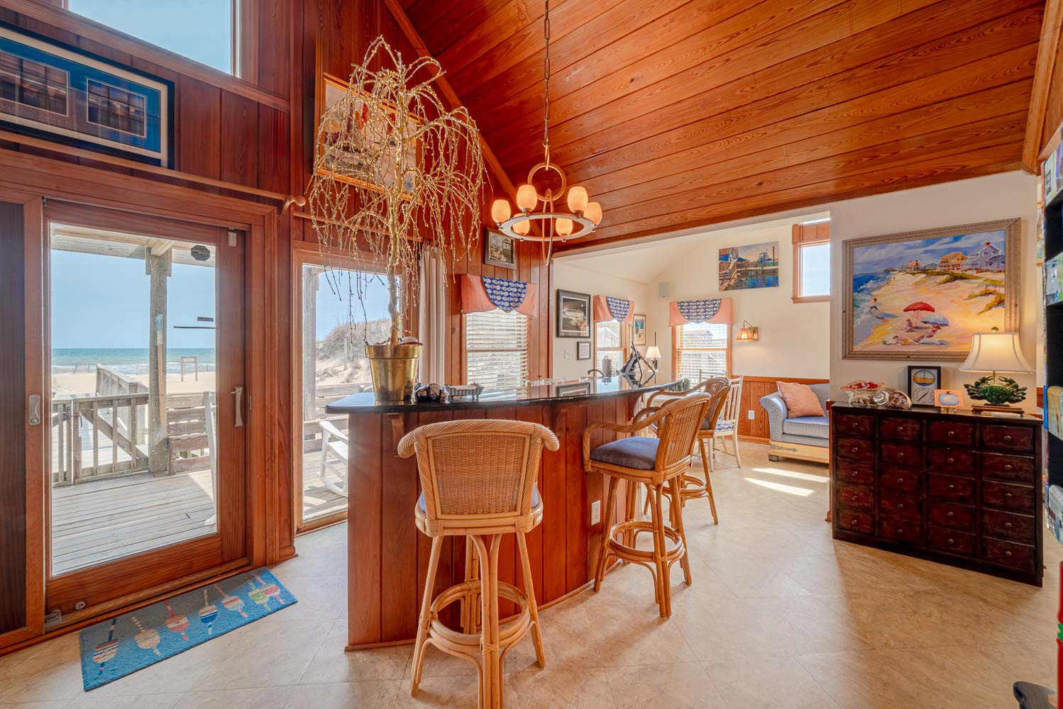 Mid Level: Comfortable, Cozy Living/Dining/Kitchen Area, Wet Bar, Free Standing 20 lb. Ice Maker, Ocean Views, 3 Bedrooms (Grand Private Suite w/King, Sitting Area, Smart TV, Full Bath w/Shower; Private Suite w/Queen, TV, Full Bath w/Tiled, Walk-In Shower; 1 w/Queen, Single, TV), Full Hall Bath, 2 Sun Decks w/Furniture, Covered Deck w/Furniture, Oceanfront Covered Deck w/Furniture, Enclosed Outside Shower, and Private Walkway to Beach w/Oceanfront Gazebo.