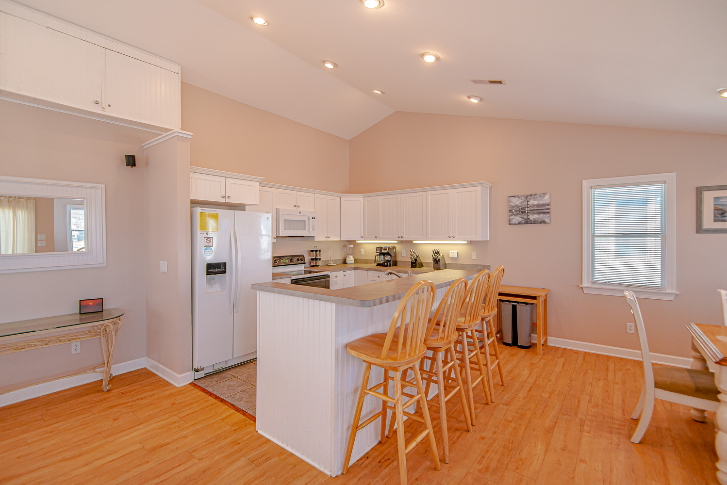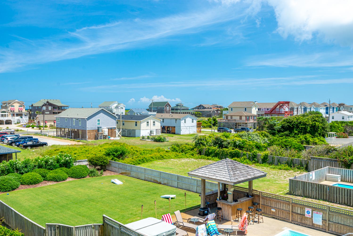 Ground Level: Parking for 5 Cars, Covered Entry, Rec. Room w/Pool Table, Smart TV & Retro Game System, Wet Bar, Full Size Refrigerator, TV, Half Bath, Access to Private 14 x 35 Swimming Pool - Open Seasonally, Hot Tub, Large Fenced Yard, & Enclosed Outside Shower.