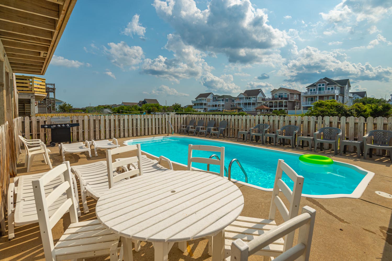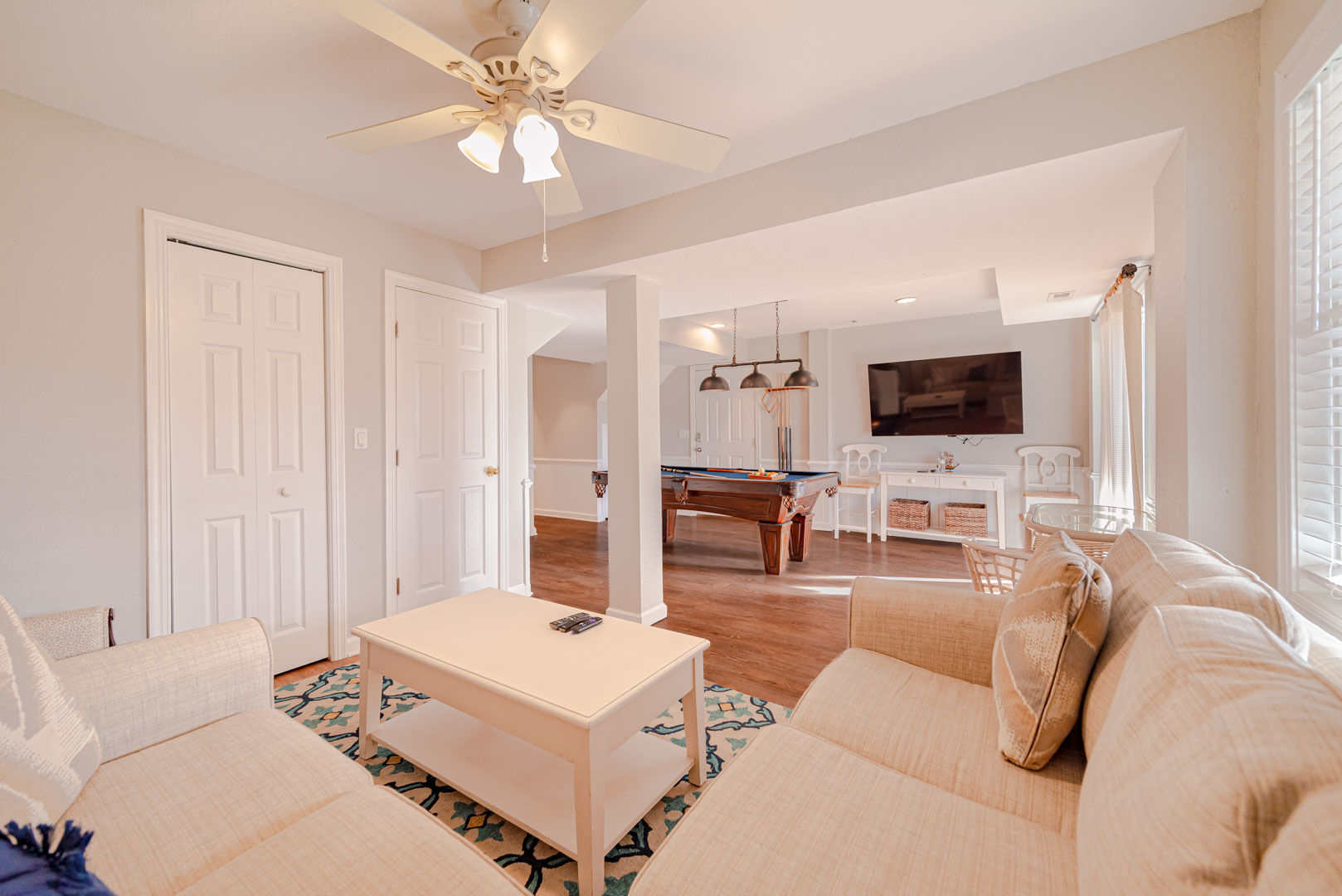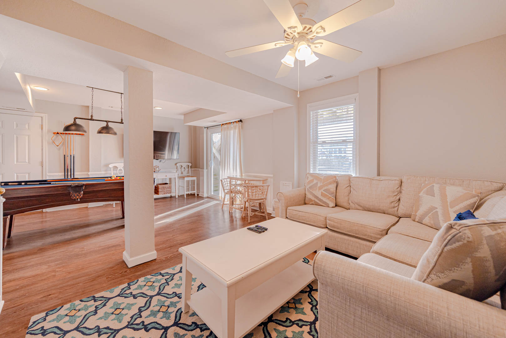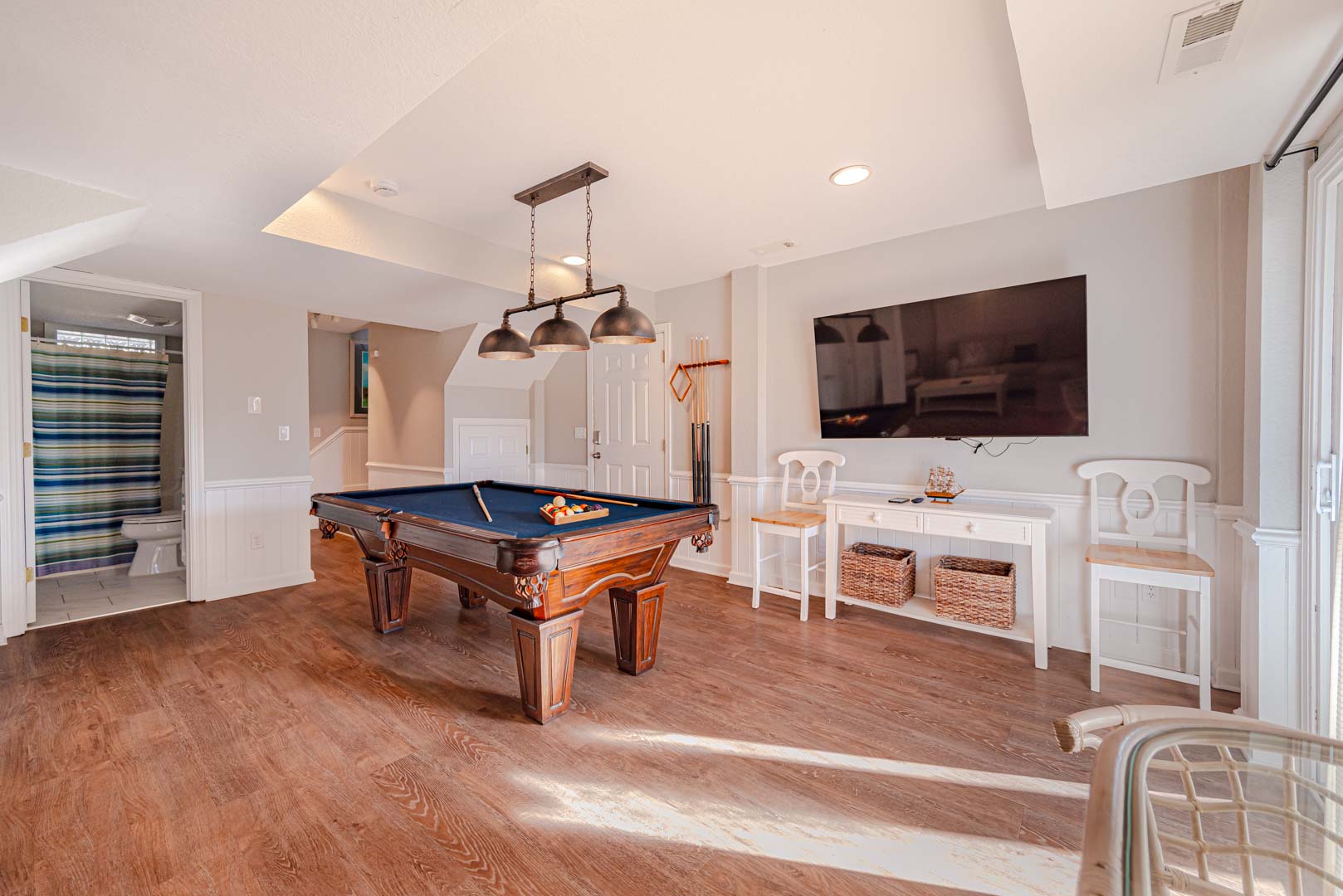 Ground Level: Parking for 4 Cars, Covered Entry, Rec. Room, Pool Table, 65 Inch Smart TV, Sectional Sofa, Chair, LVP Flooring, Bedroom w/Queen, TV, Full Bath, Covered Deck Area, Access to Patio Area, Private 12x28 Swimming Pool - Open Seasonally, Gas Grill, and Enclosed Outside Shower.