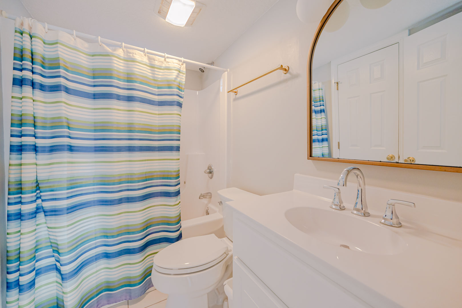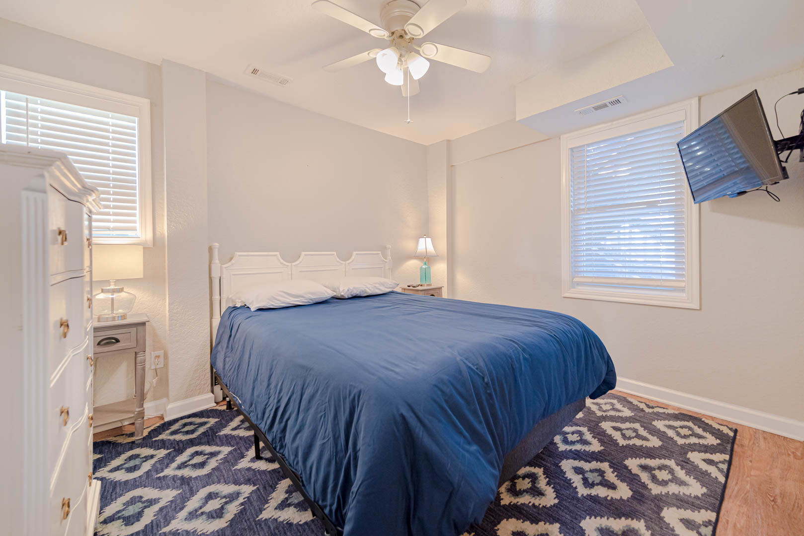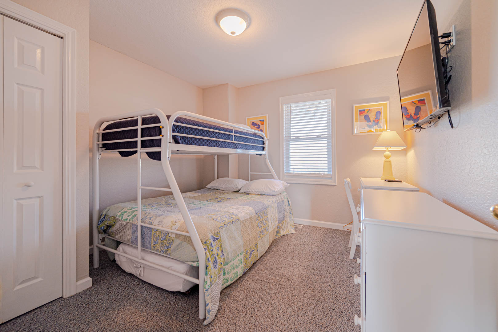 Mid Level: 3 Bedrooms (Private Suite w/King, Smart TV, Full Bath; 1 w/Queen, Smart TV, 1 w/Duo Bunk, Smart TV), Shared Full Bath, Den w/Smart TV, Wet Bar, Granite Ice Maker, Mini-Refrigerator, Laundry Area, Covered Deck, and Access to Large Sun Deck w/Hot Tub that Overlooks the Pool.