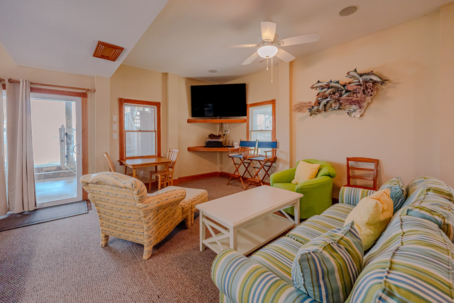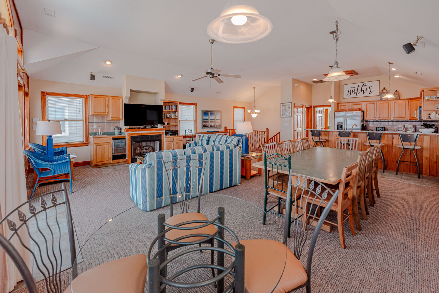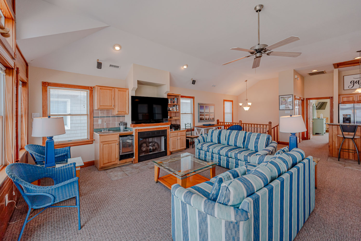 Top Level: Living/Dining/Kitchen Area, 56 Inch Roku TV, Surround Sound, Stereo, Gas Fireplace, Wet Bar, Ice Maker, Half Bath; Private Suite w/King, 43 inch Roku TV, Full Bath w/Jacuzzi, Small Sun Deck, and Fabulous Ocean Views from Oceanside Deck.