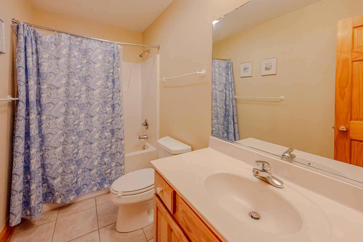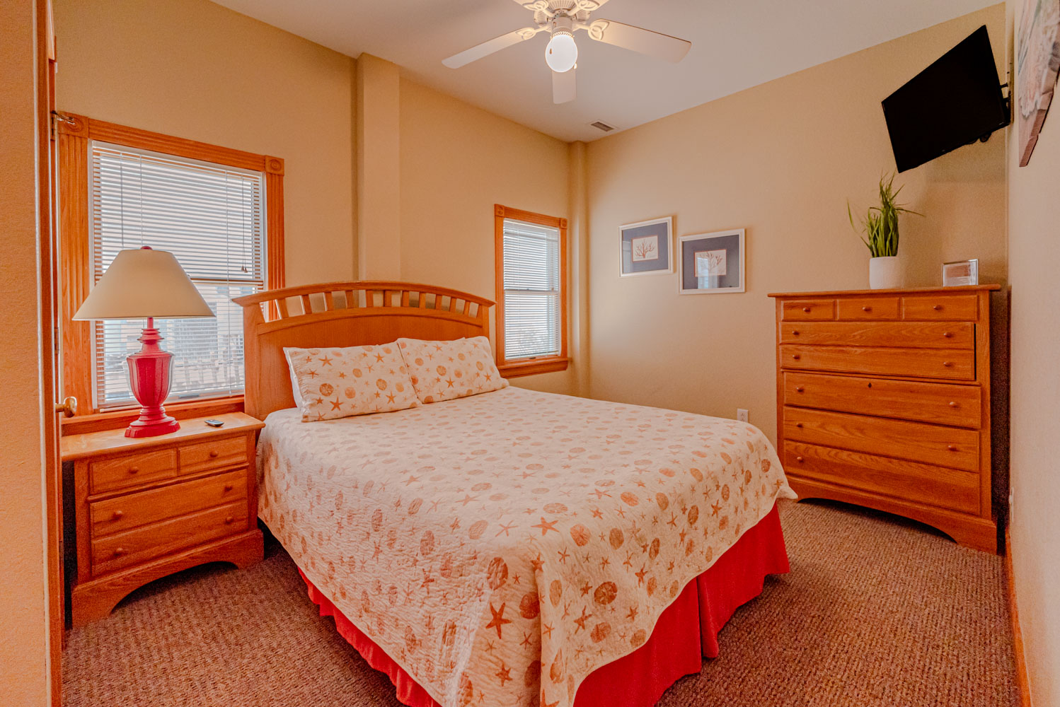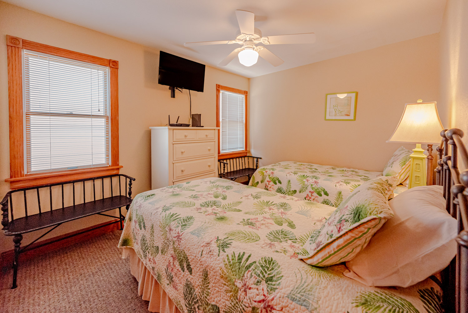 Mid Level: 4 Bedrooms (2 Private Suites w/Kings, 32 Inch Roku TVs, Full Baths, Access to Covered Deck w/Hot Tub, Ocean Views; Private Suite w/Queen, 32 inch Roku TV, Full Bath, Covered Deck; 1 w/2 Singles, Roku TV), Full Hall Bath, and Laundry Room.